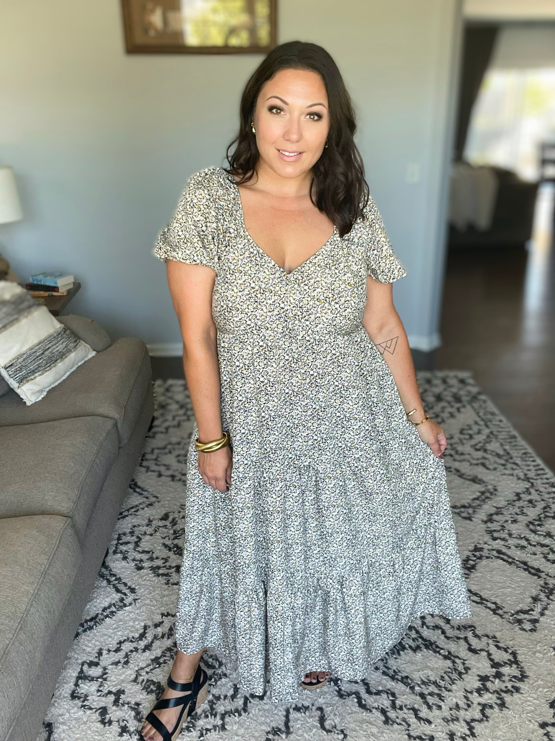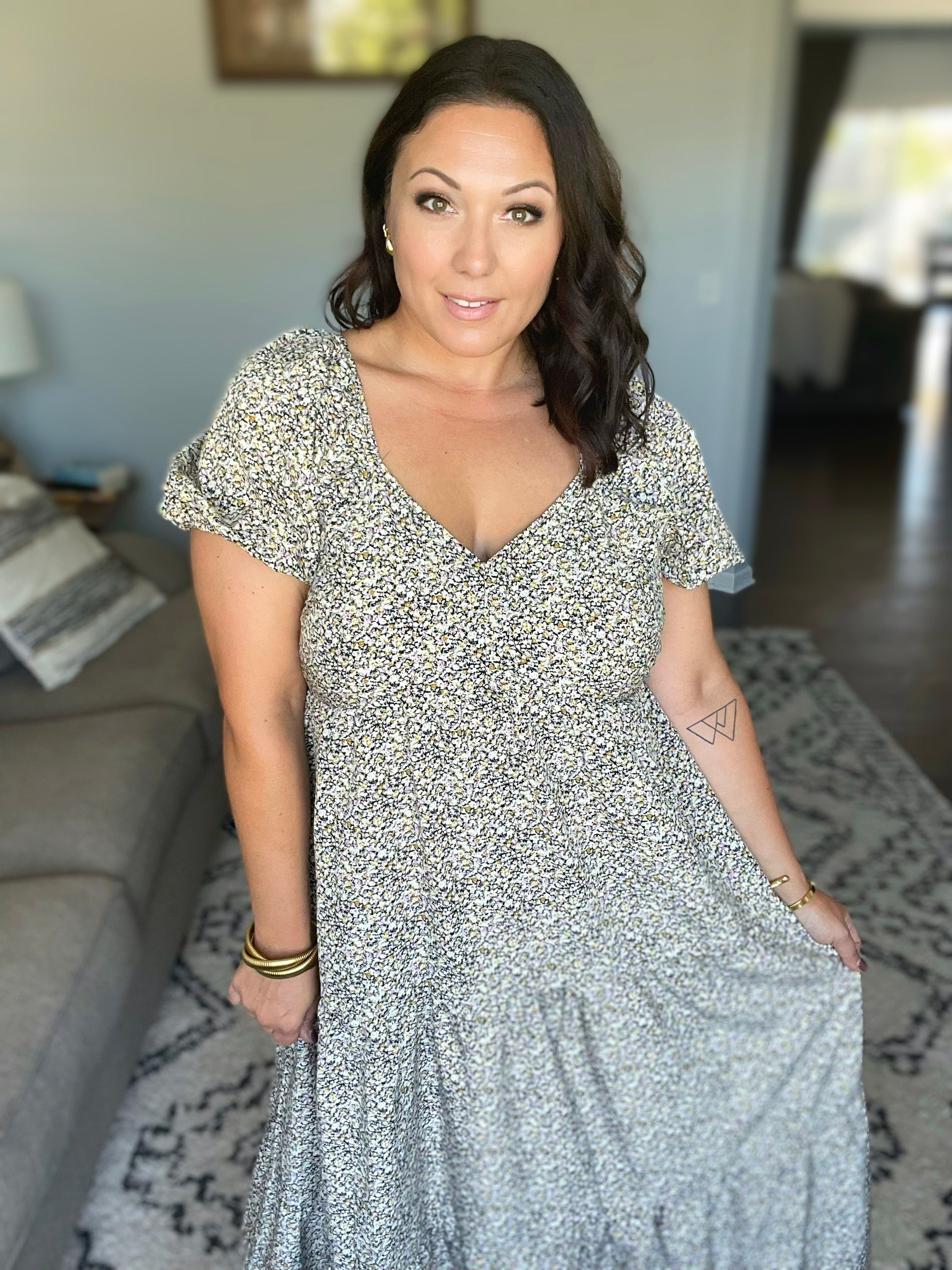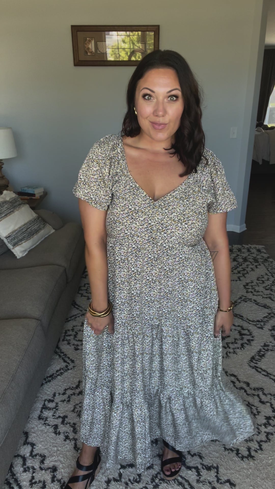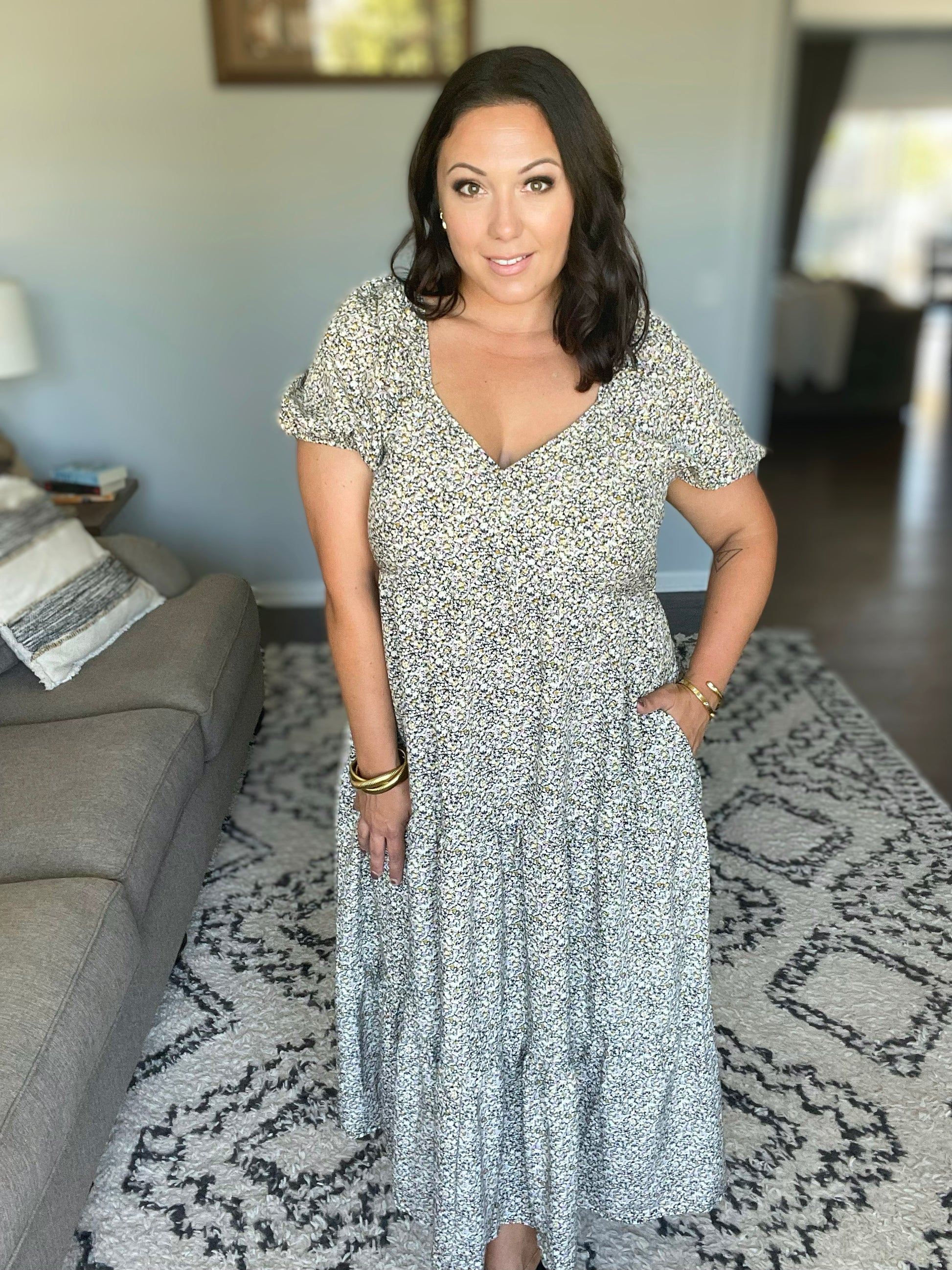 Indulge in a Moment of Love with this stylish V-Neck Balloon Sleeve Dress. Made from soft and durable woven poplin, it features an alluring sweetheart neckline, airy balloon sleeves, and functional side pockets. You'll be comfortable thanks to the cased elastic shoulders, cuffs, and back, while the tiered maxi skirt ensures you look fabulous.