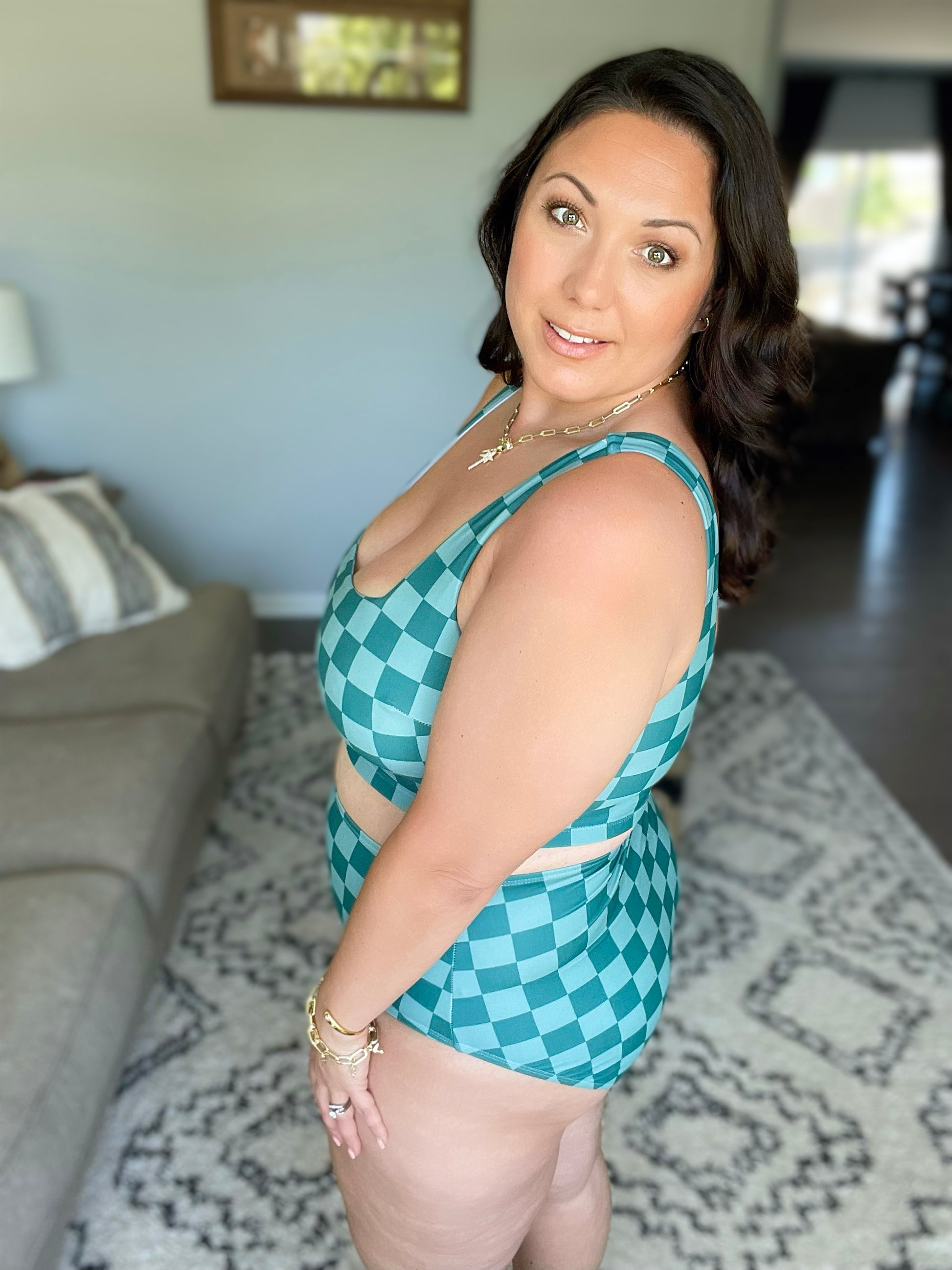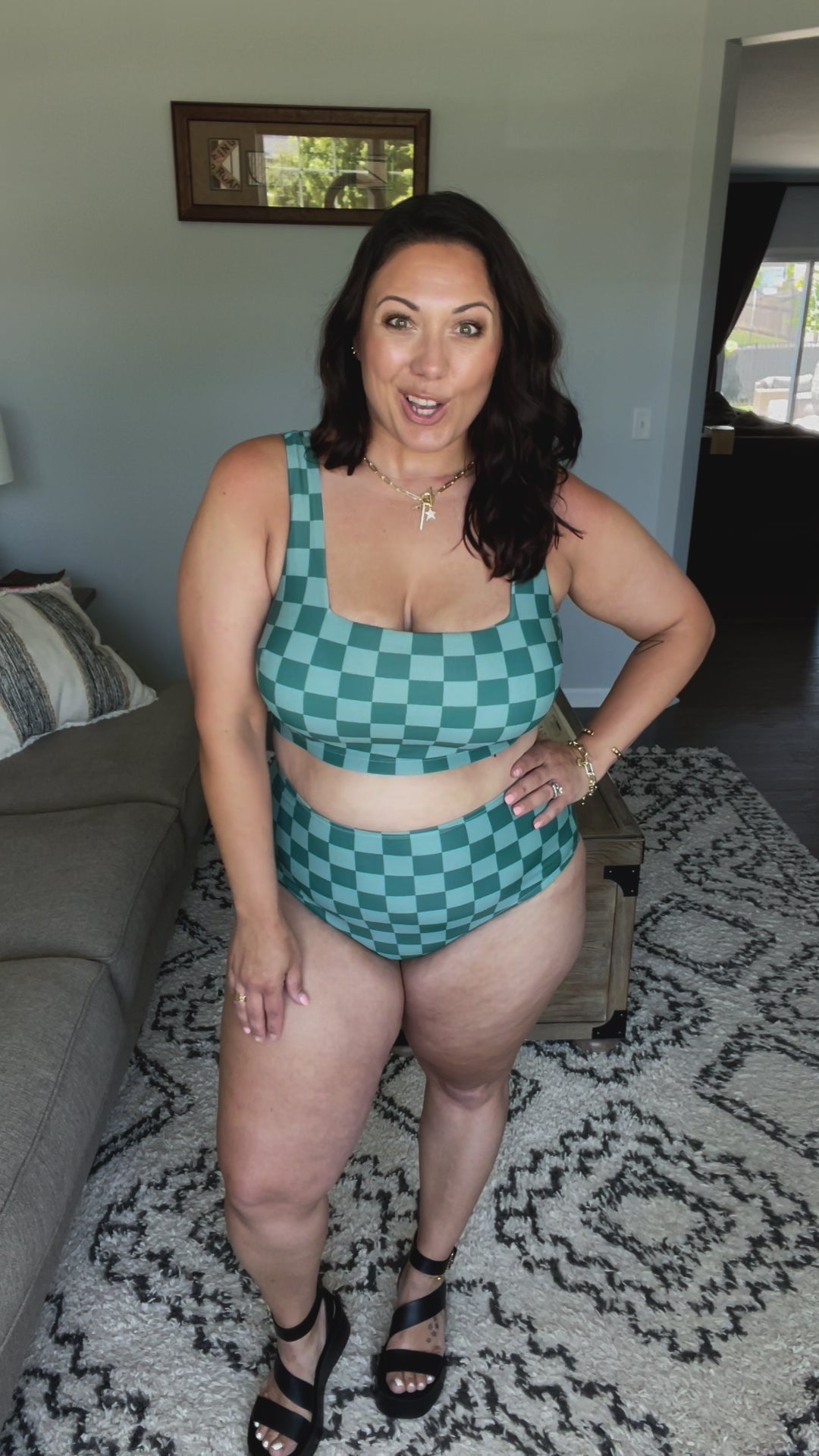 Get ready to make a splash in our Bali Checkered High Waisted Swim Bottoms! With a fully lined design and cased elastic waistband and hem, these bottoms offer both comfort and style. Perfect for any pool or beach day, they're the ultimate combination of fashion and function.