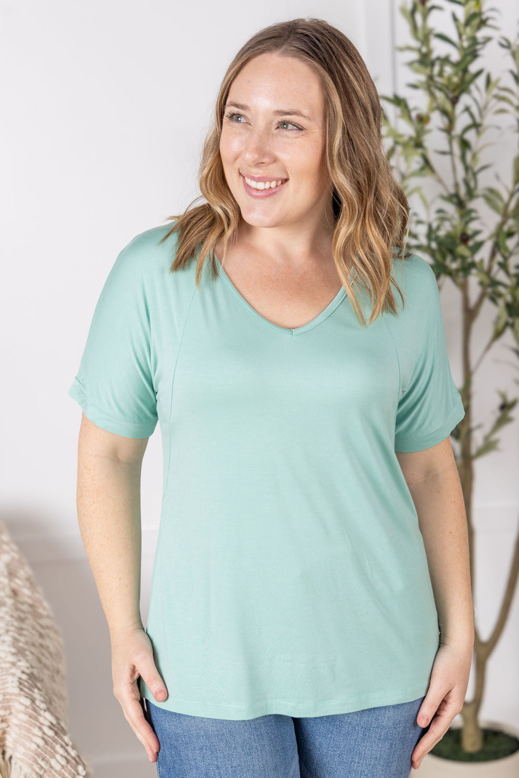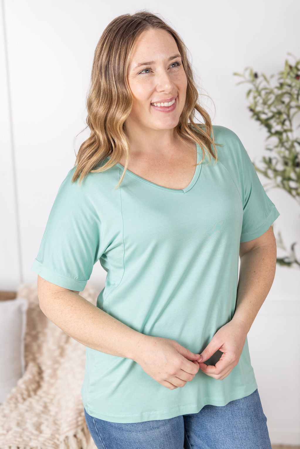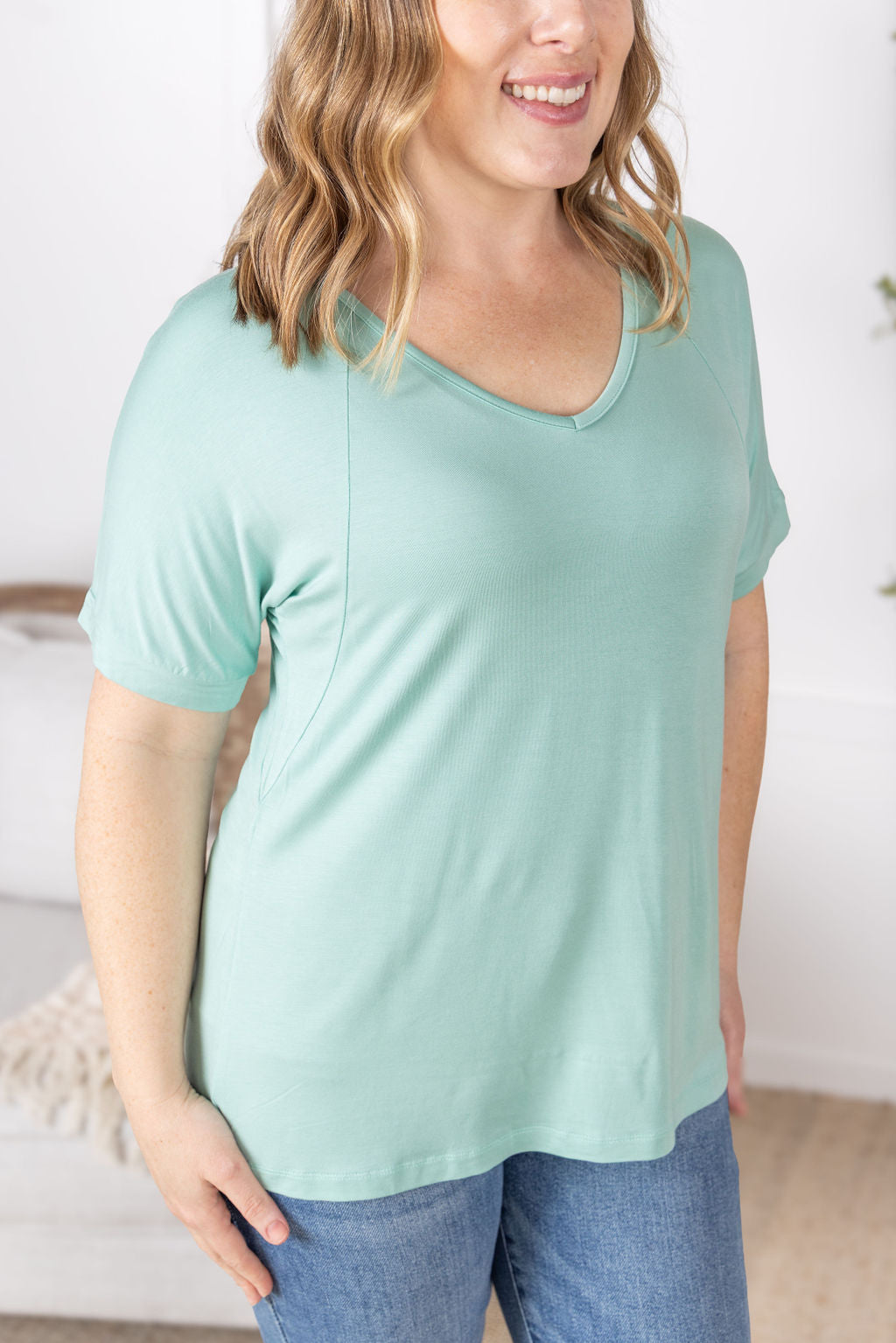 Michelle Mae Bamboo V Neck Tee - Mint