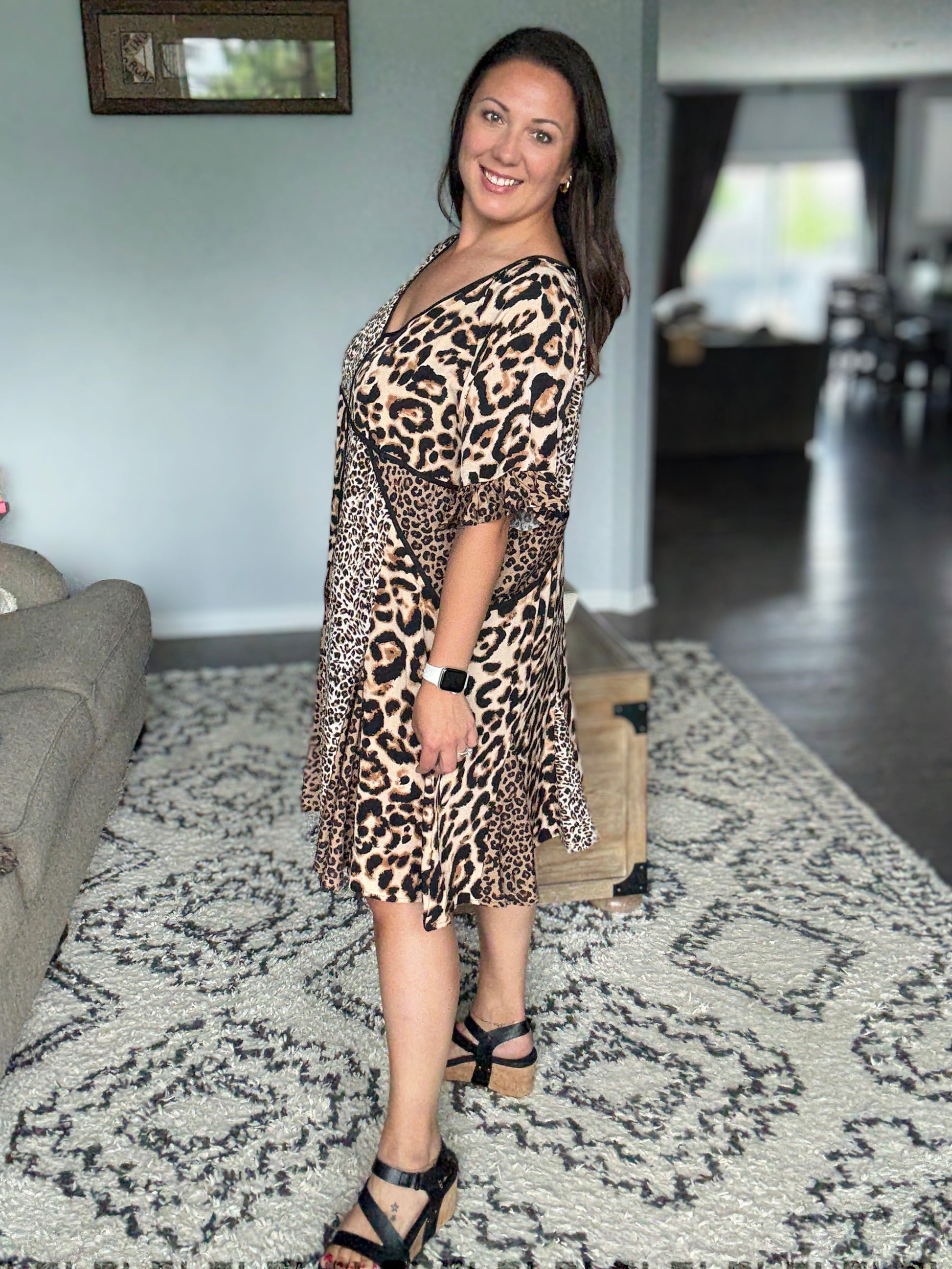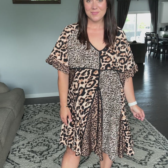 BiBi Mixed Leopard Ruffle Sleeve Dress