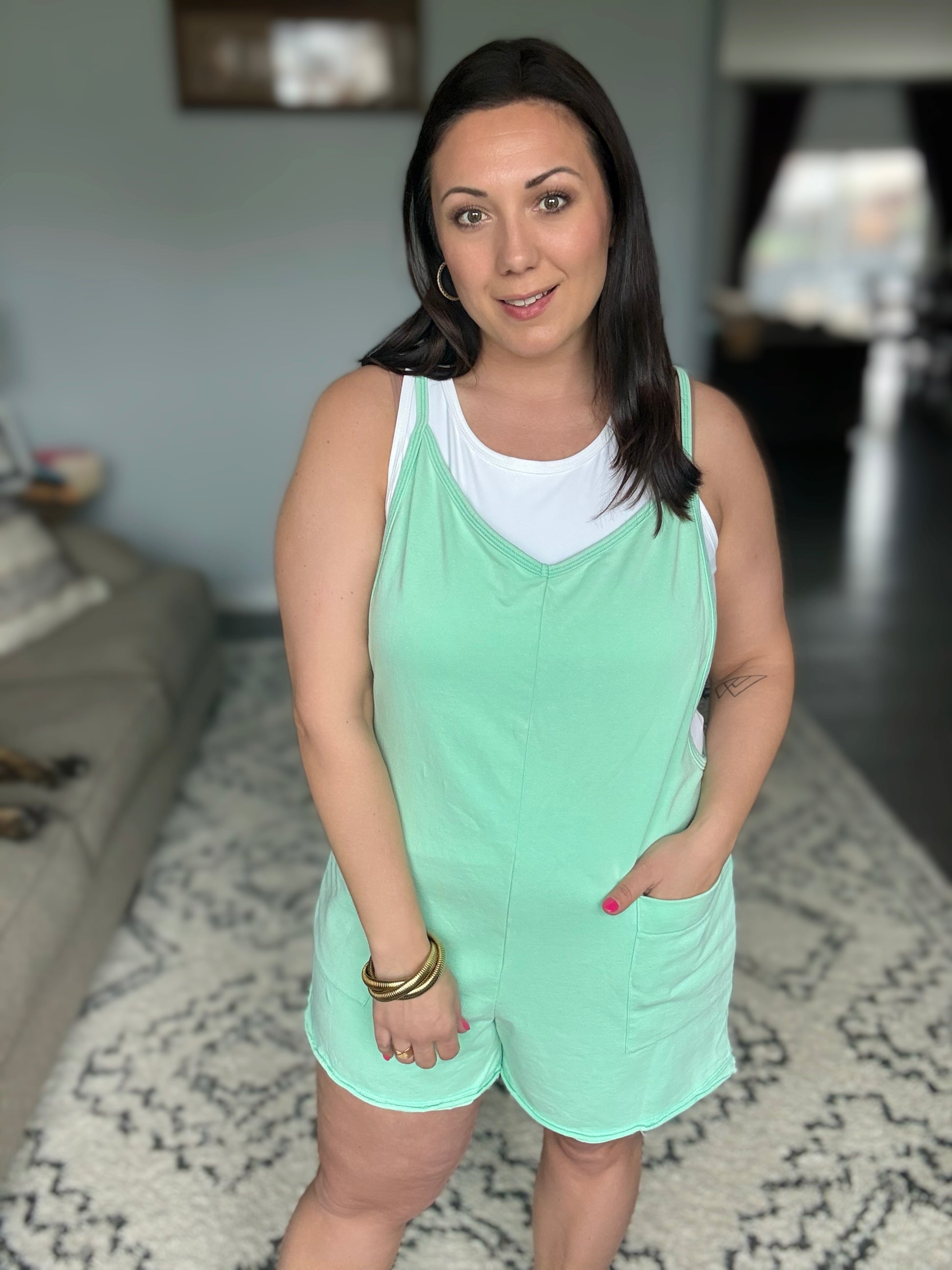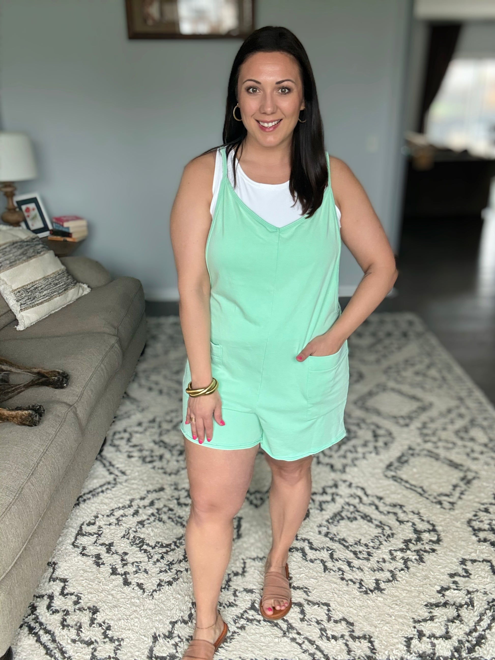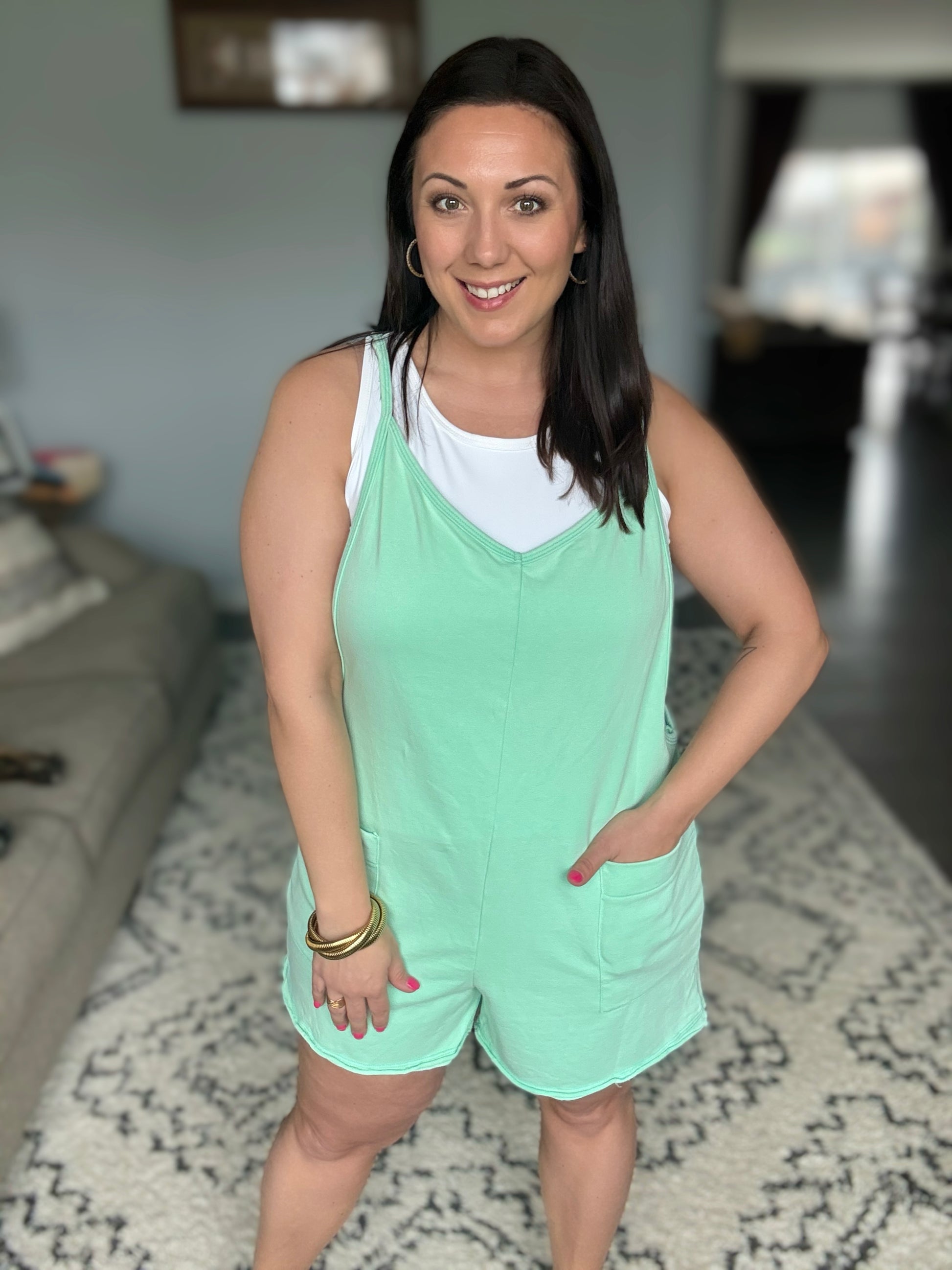 BiBi Vintage Washed V-Neck Romper with Pockets
