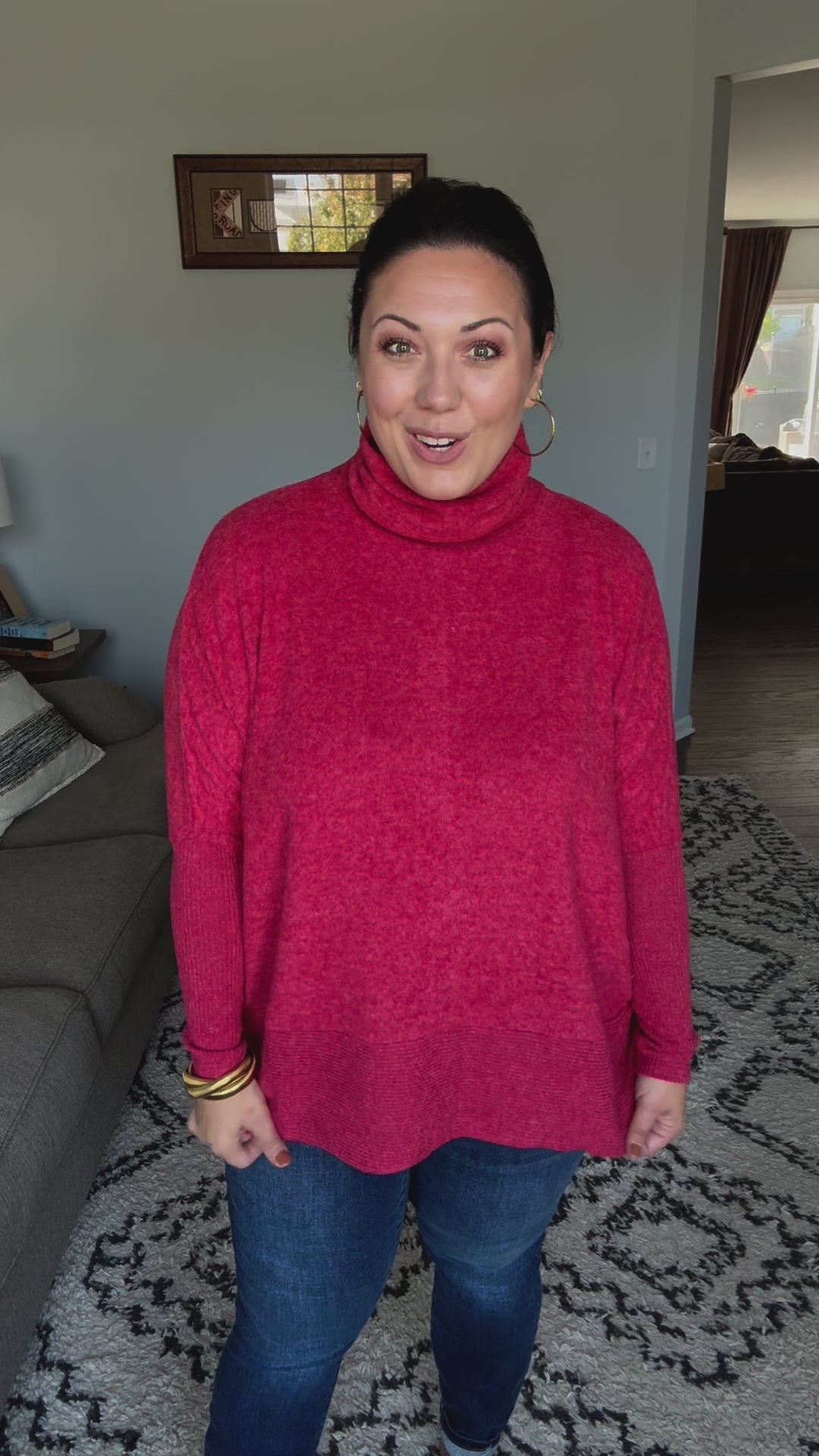 Cabin Holiday Brushed Melange Turtleneck Sweater in Dark Red