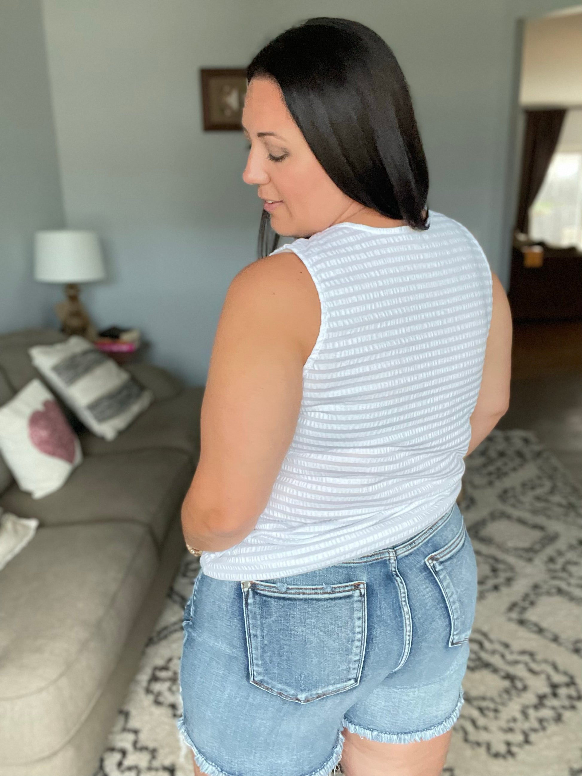 Get ready to rock in these Callie High Rise Cutoff Shorts from Judy Blue! Featuring a flattering high rise fit and distressed detailing, these shorts are perfect for any summer adventure. Plus, with an adjustable waistband and double button closure, you'll never have to worry about a perfect fit.