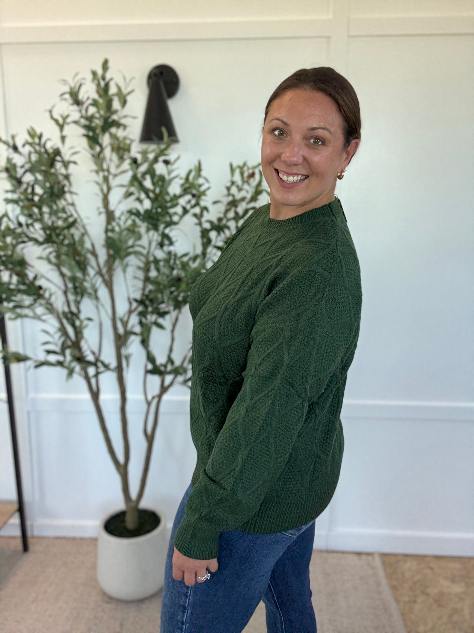 Stay stylish and cozy this Fall with our Carson in Green. Embrace the season with its diamond design, perfect for pairing with dark jeans and fall booties. Don't forget to add a touch of quirk to your wardrobe this season. It offers a more lightweight knit fabric perfect for layering!