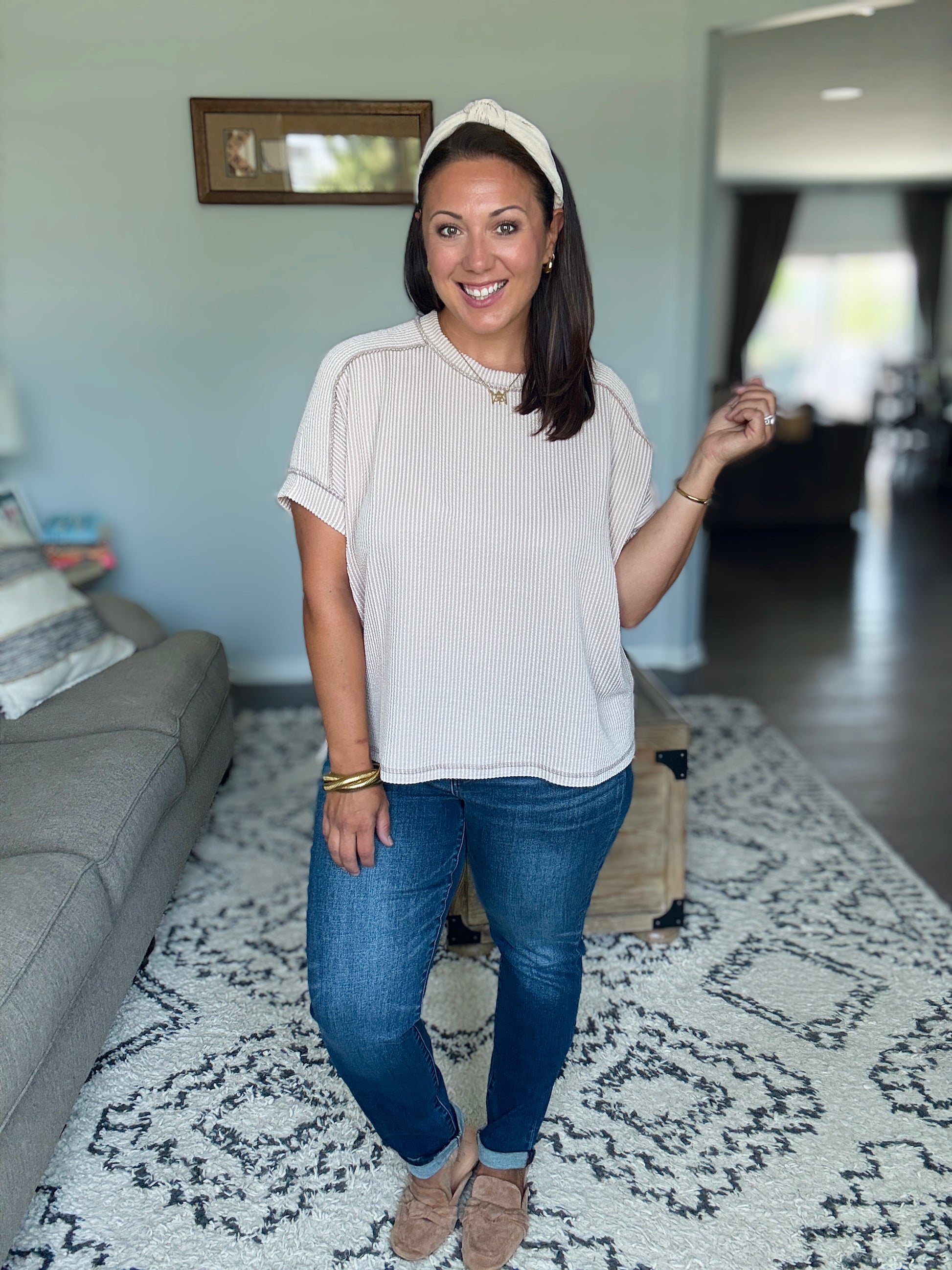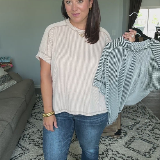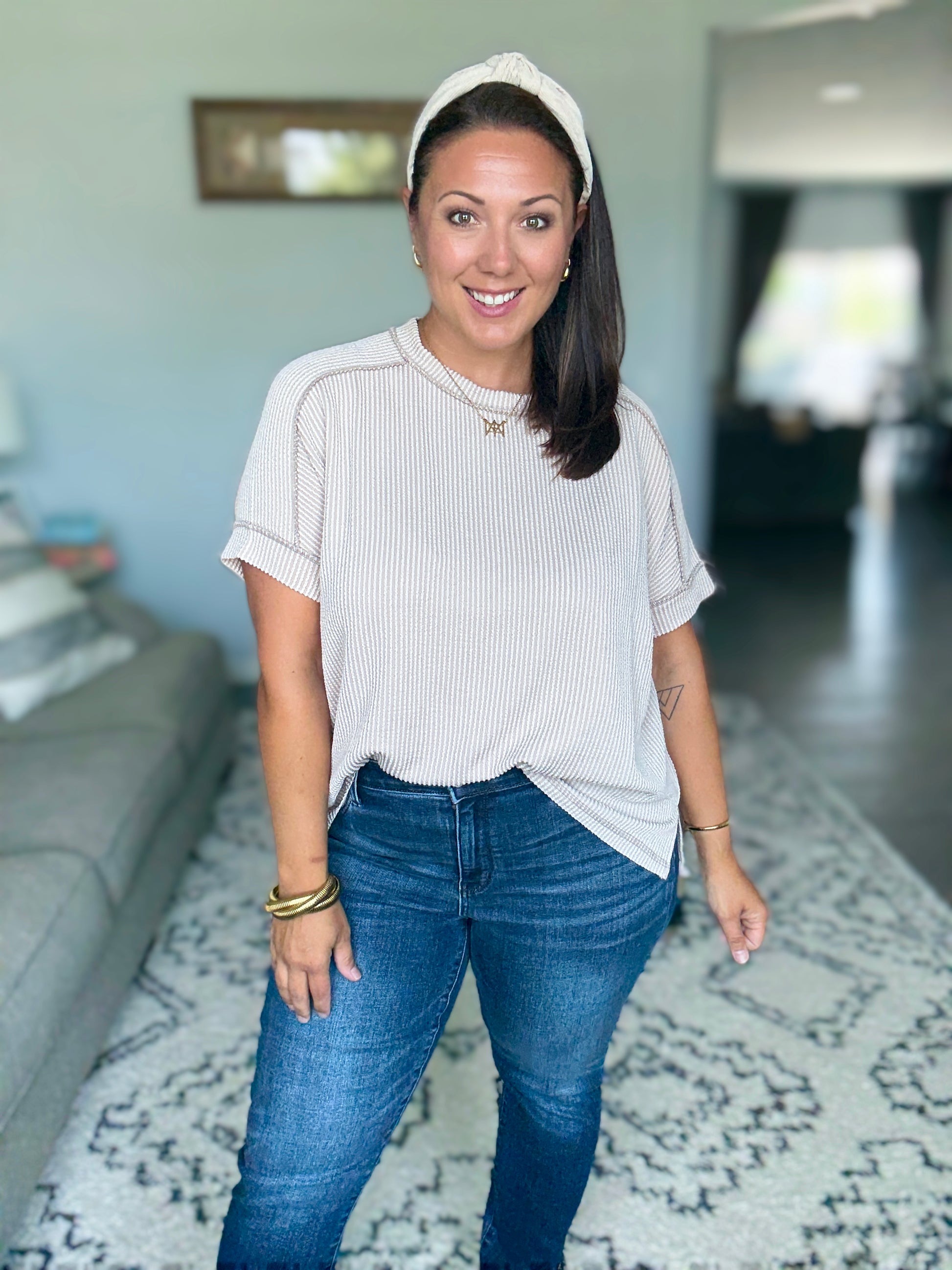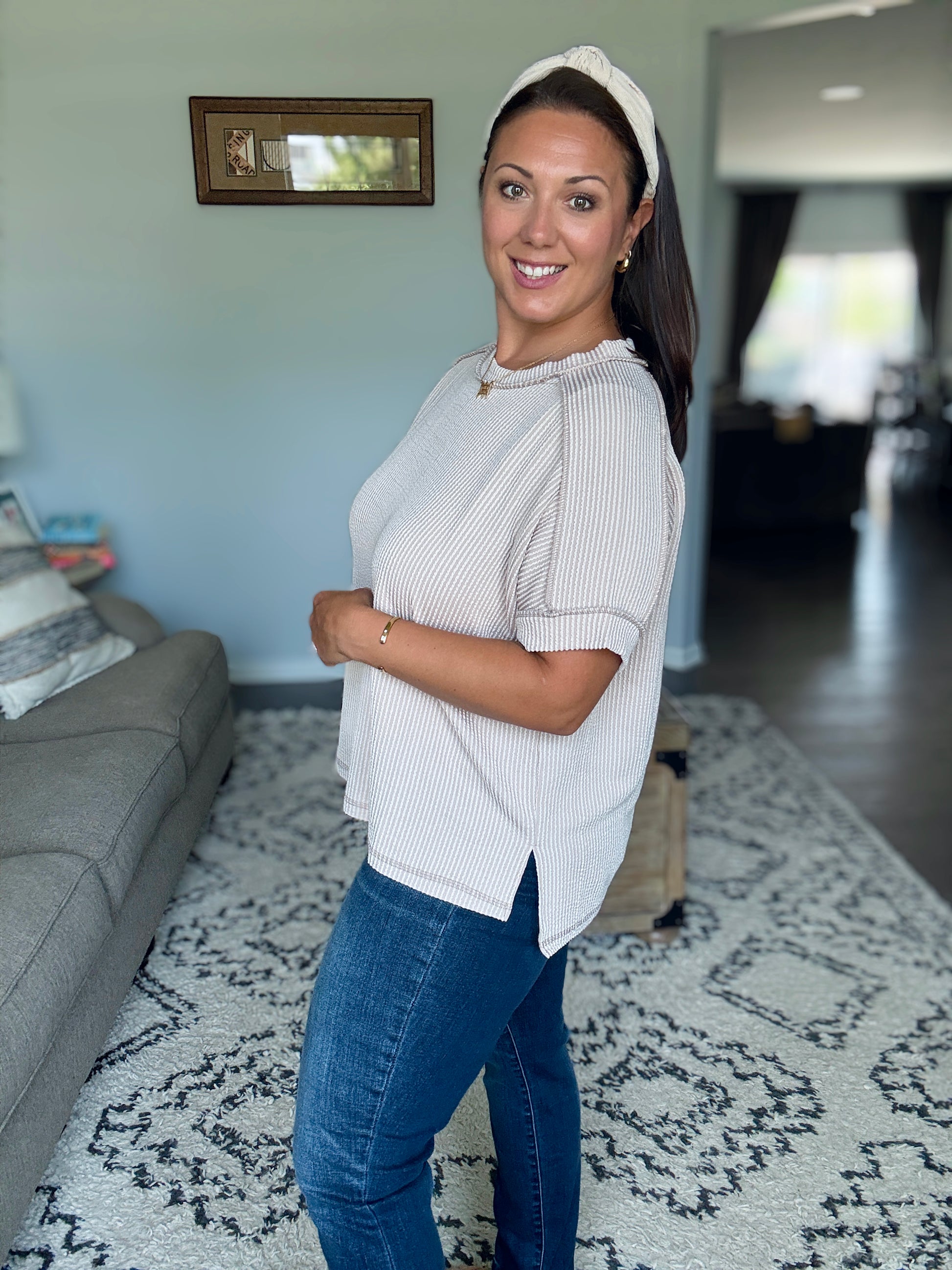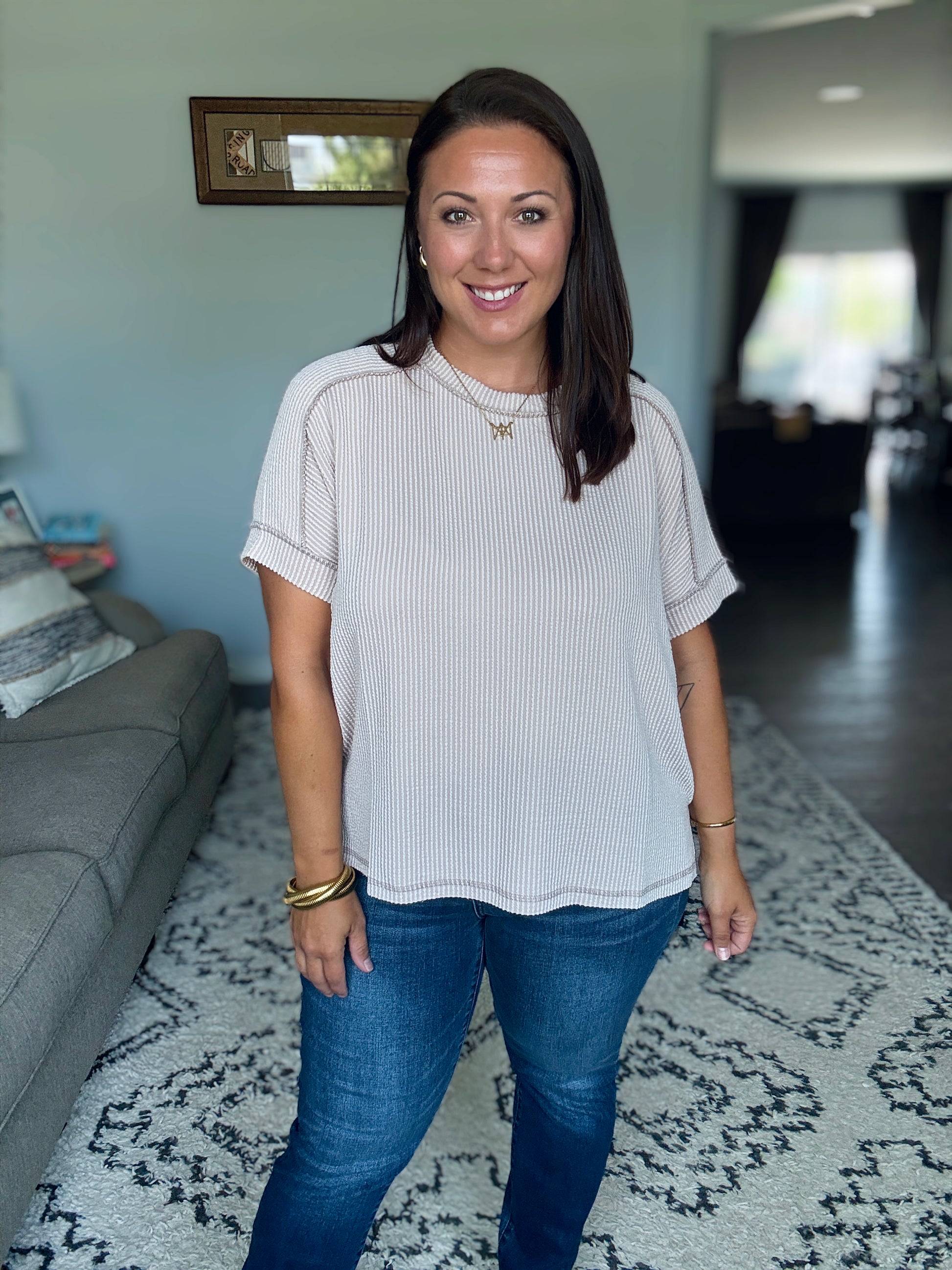 Catch Me Loungin’ Cable Ribbed Knit Top in Ash Mocha