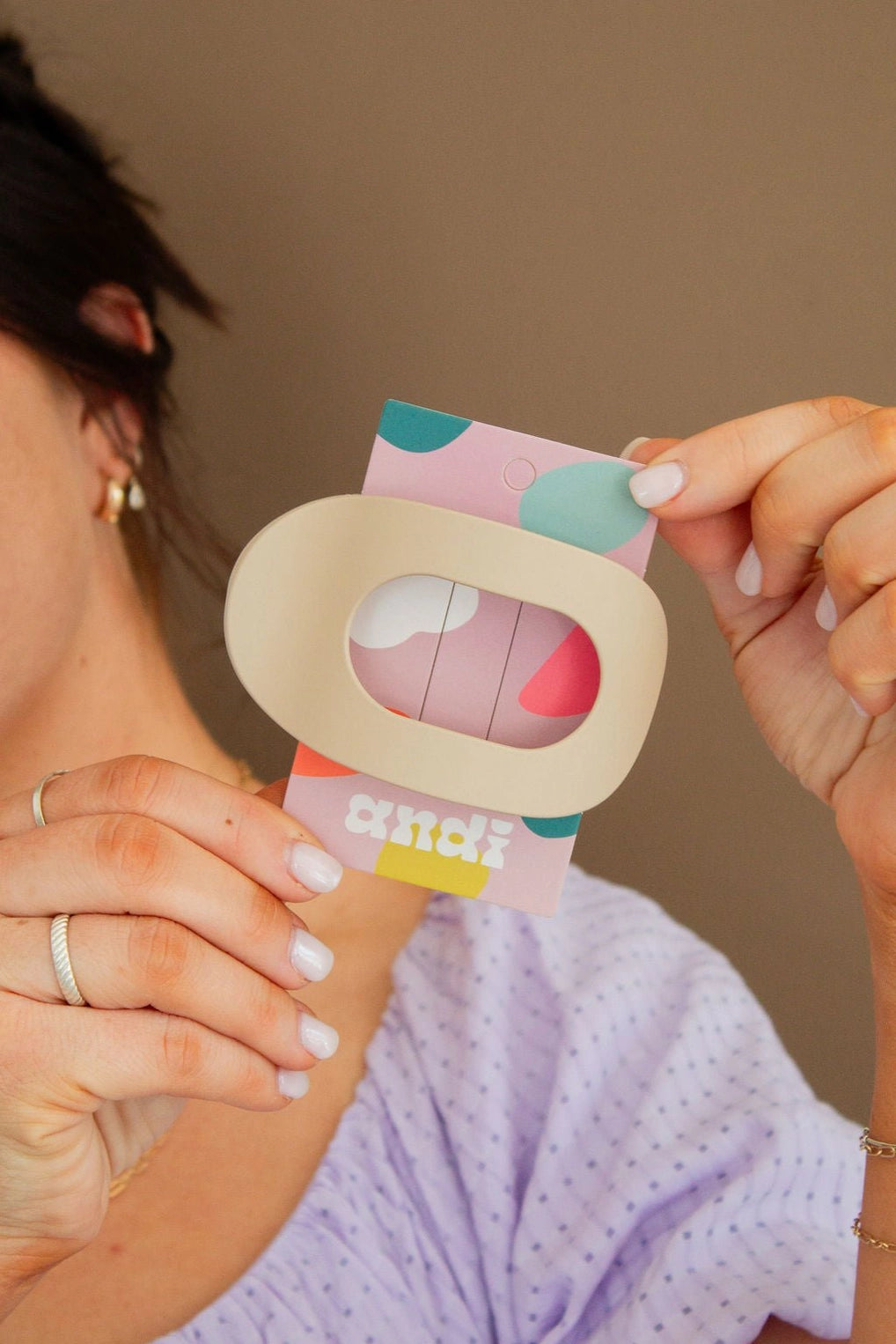 These round cutout, flat claw clips are so cute and functional! Their shape makes them so comfortable during any activity. How often can you find an accessory that is unique and cute but also, so incredibly practical? Wear it every day around the house, during your workouts, to work, or for your next girls night, it'll always match the vibe.
