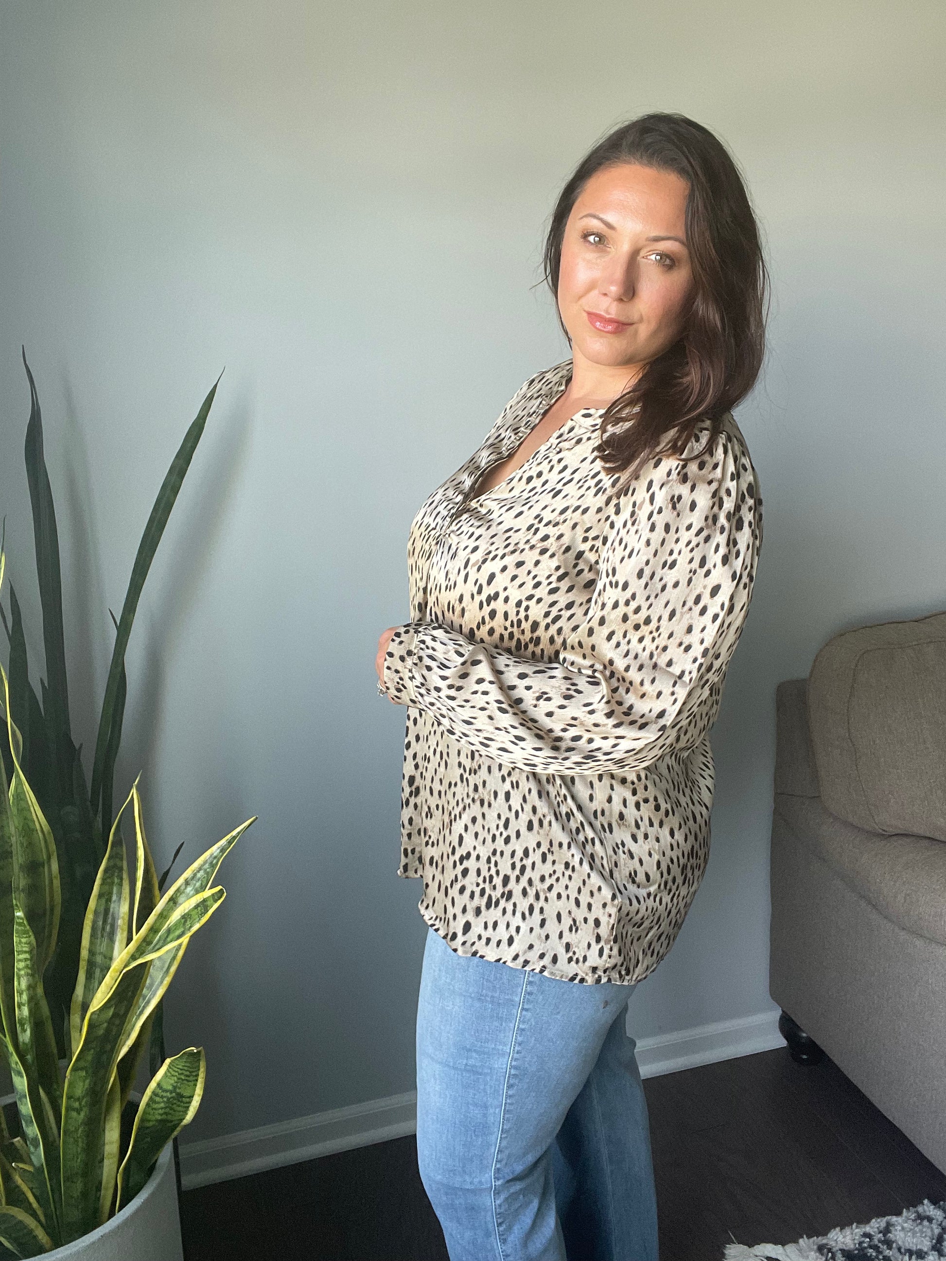 Countless Memories Split Neckline Dot Print Top