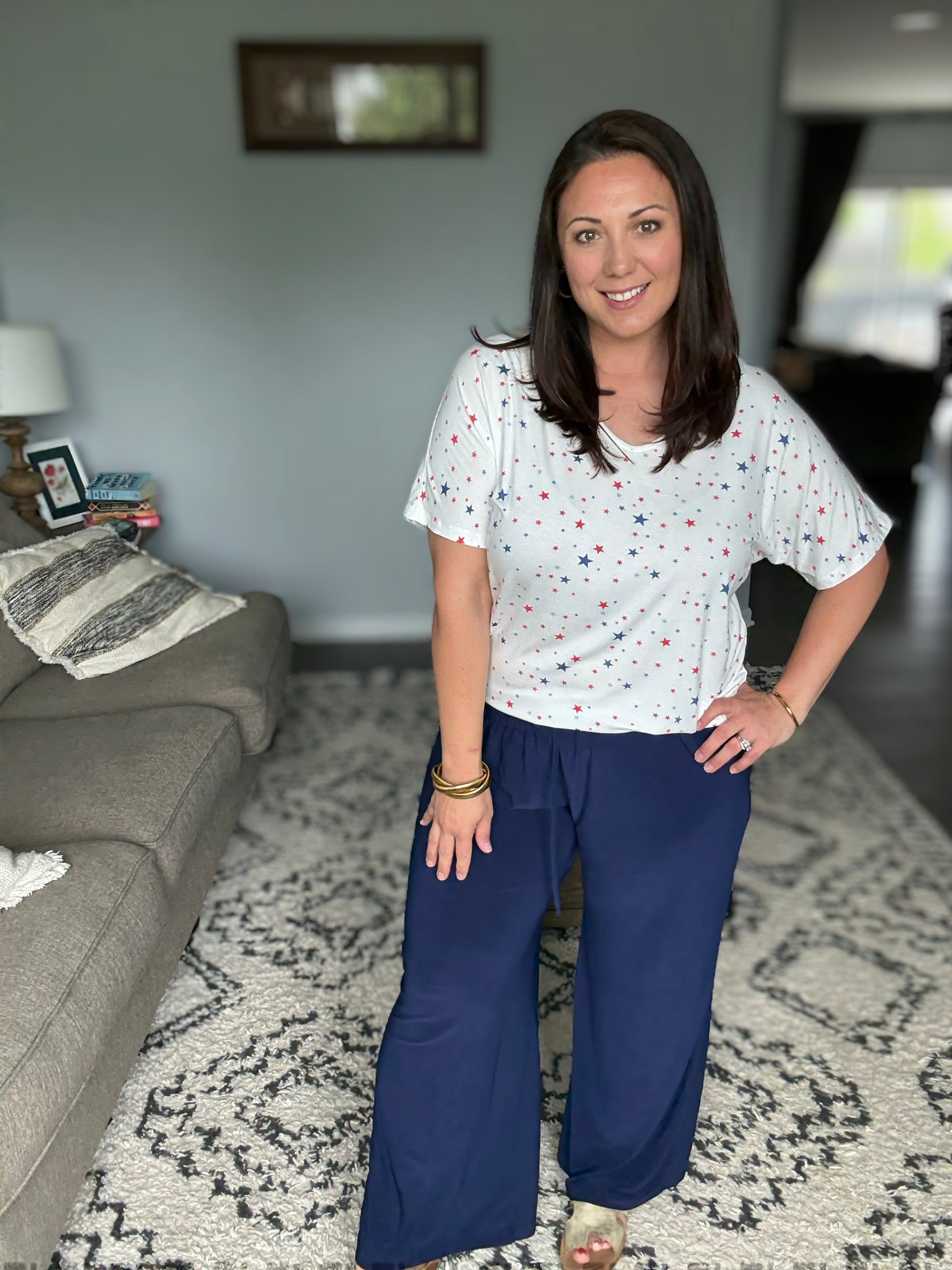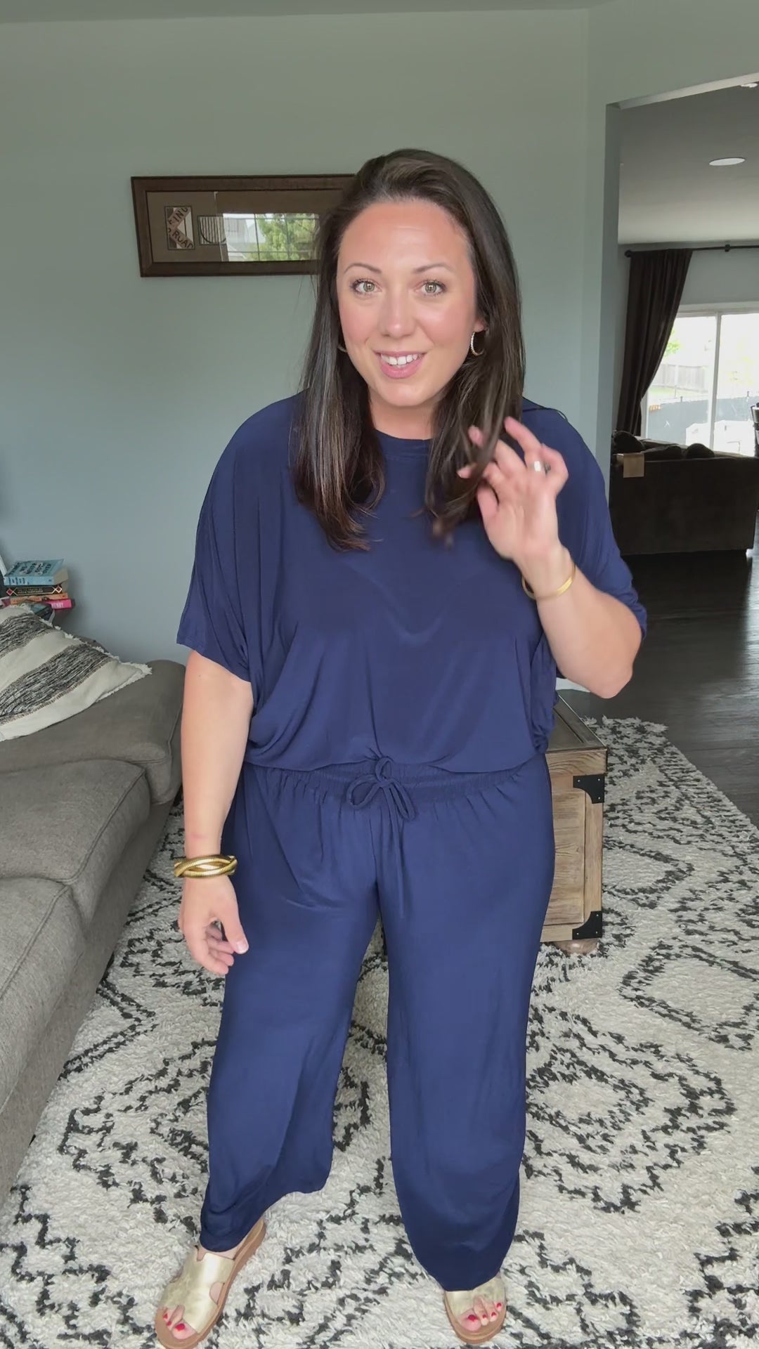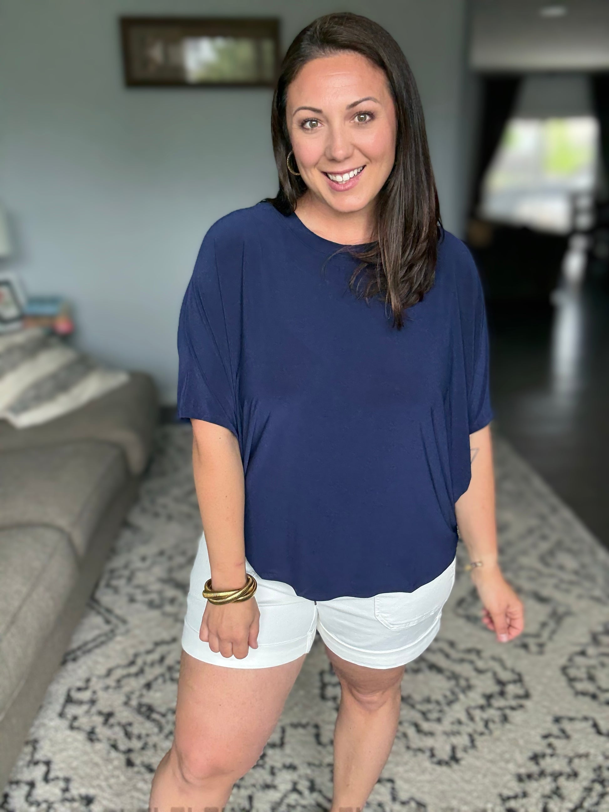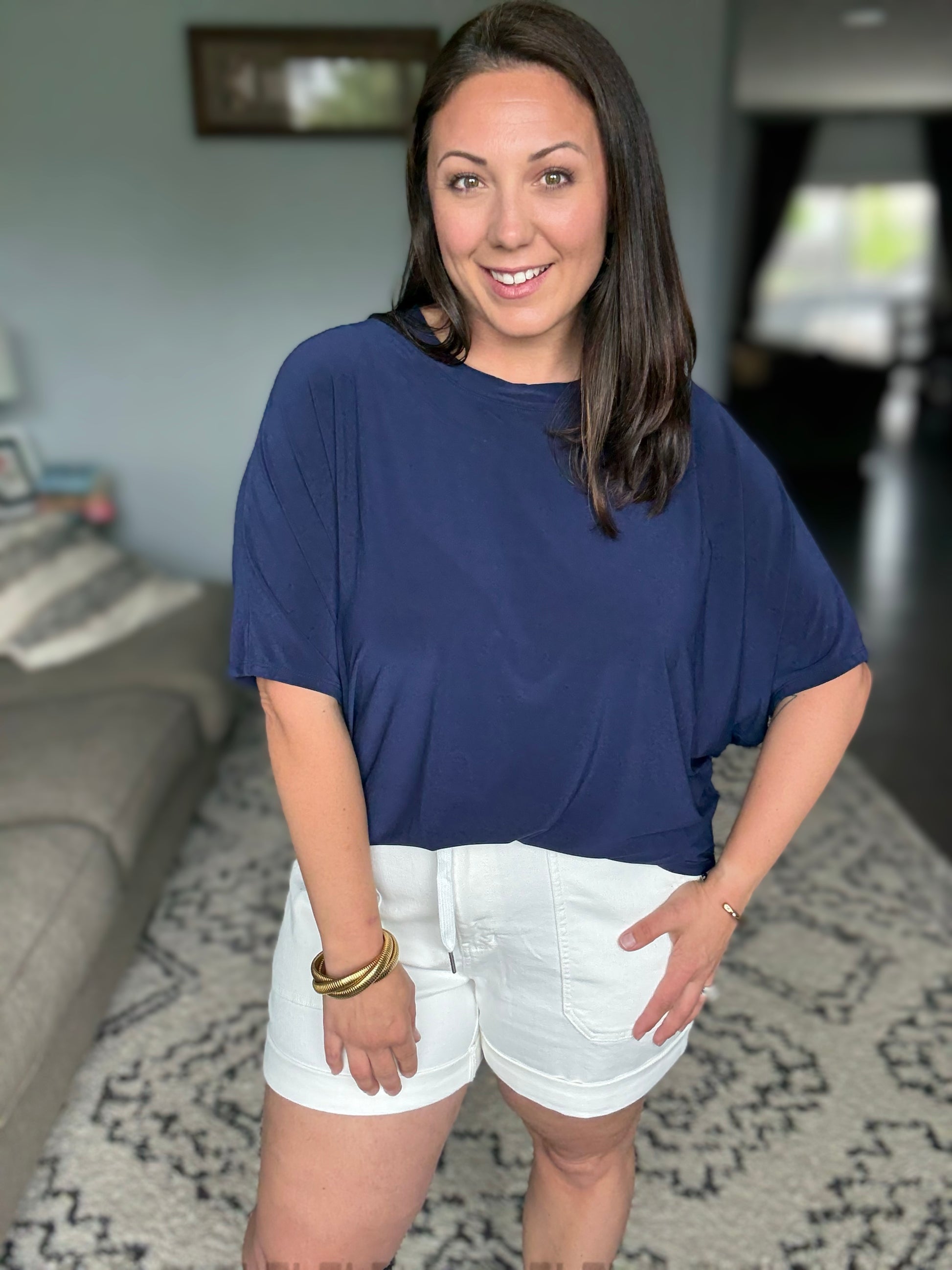 Amanda is wearing a Large in Navy
