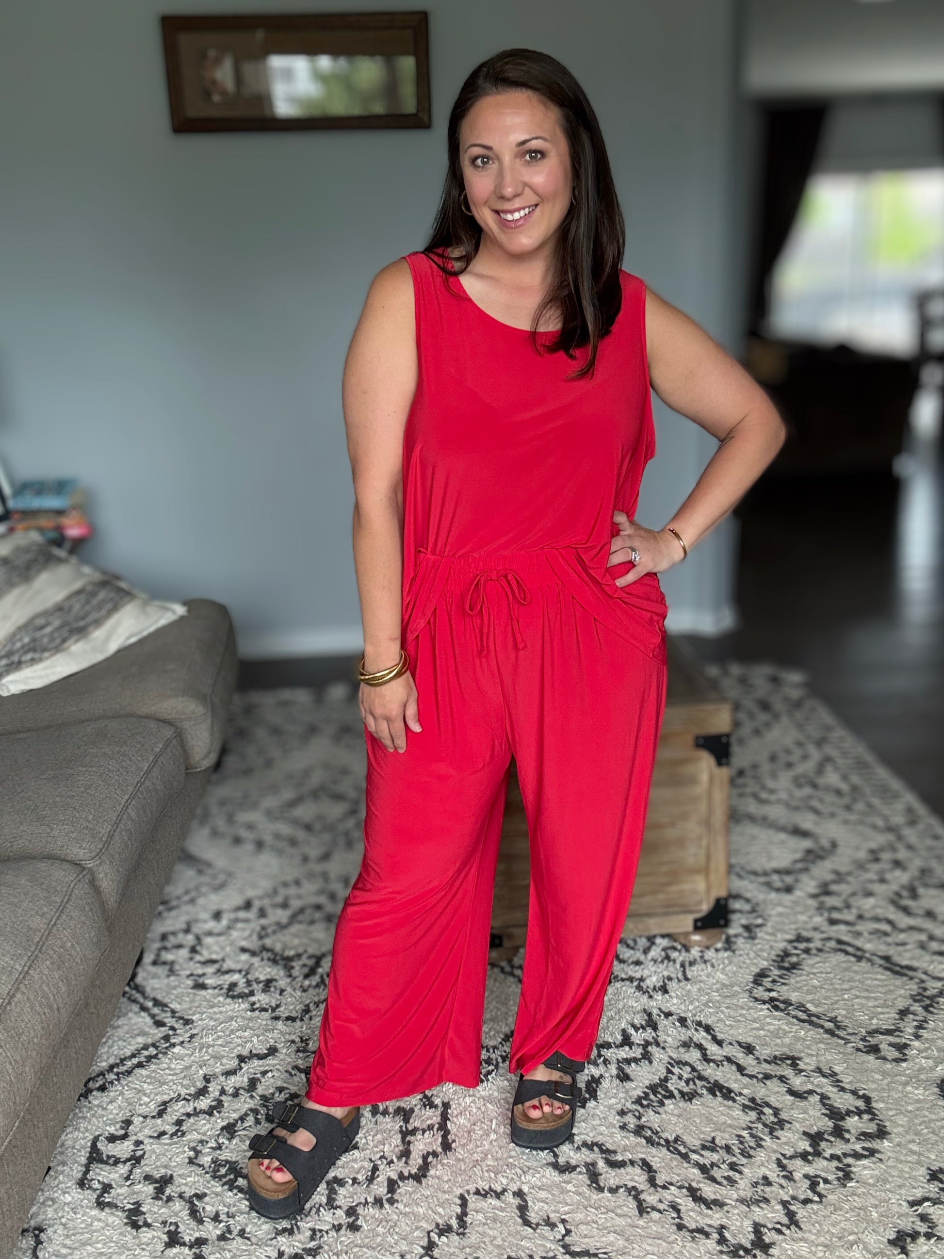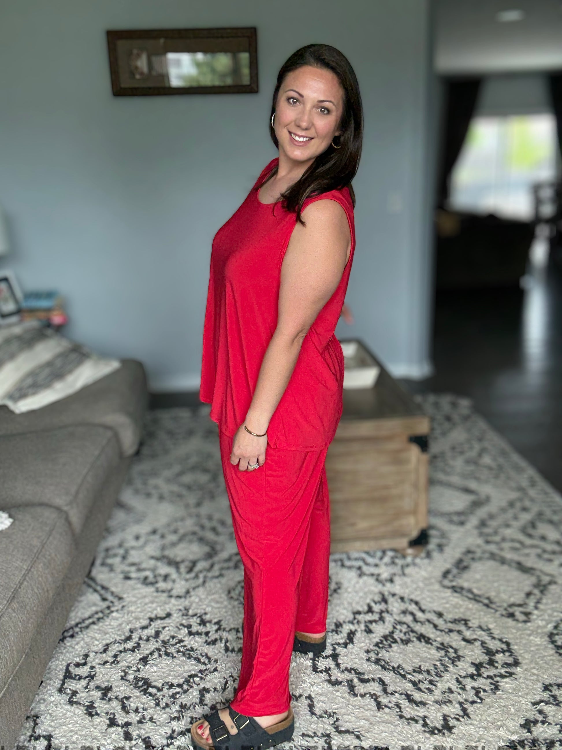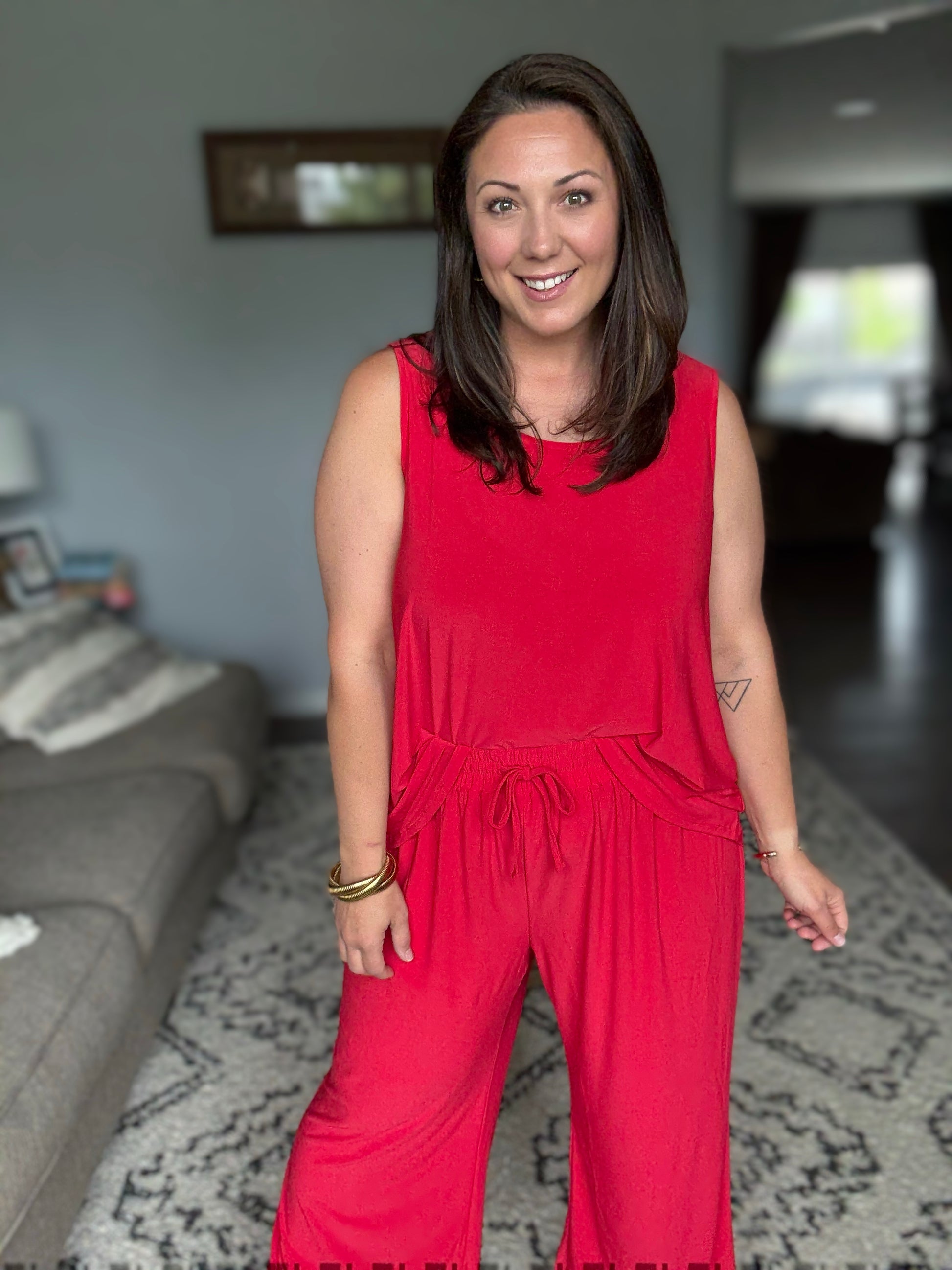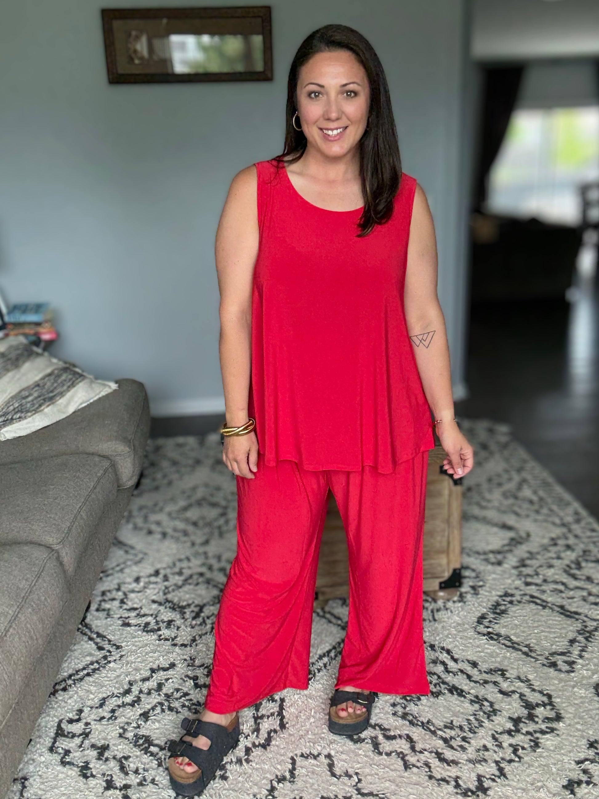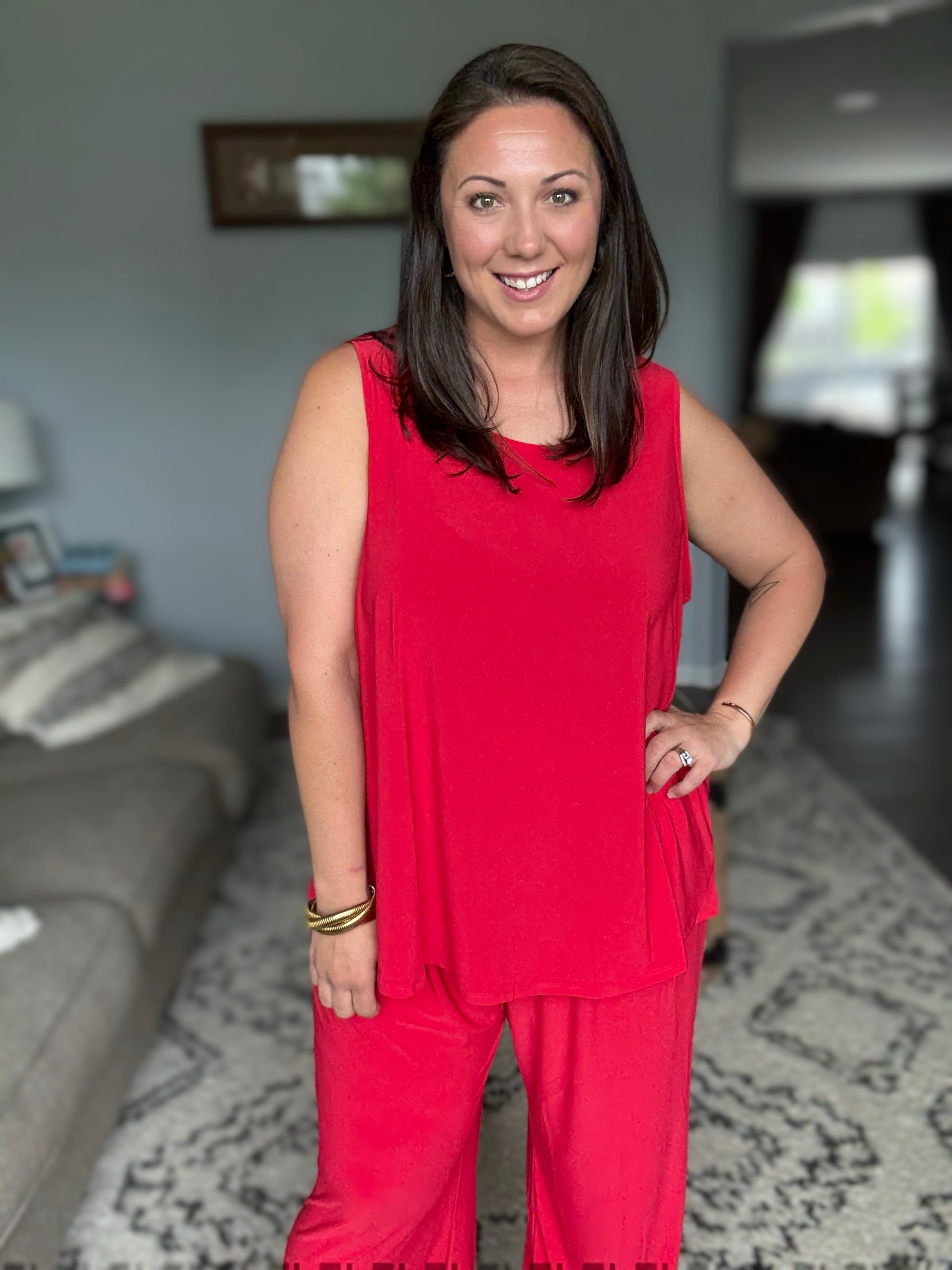 Gorgeous and breezy, gracing your body with a fit that's both flattering and relaxing, this wrinkle-free solid set is the perfect solution for you this spring/summer! We love the sleeveless blouse that prioritizes both comfort and style, which can easily transition from travel to leisure. This set in trendy hues features a loose-fit and an elastic waistline that will keep you cool for the warmer days ahead! Wear together or mix'n'match!