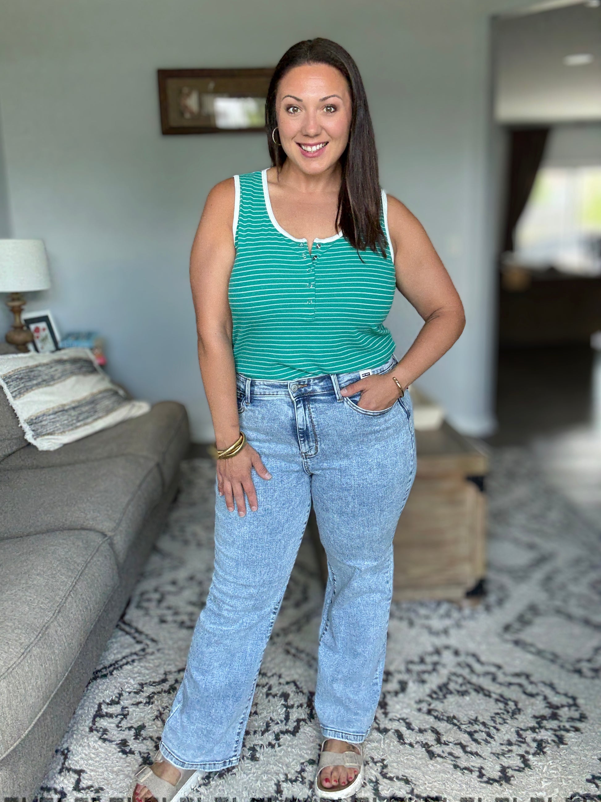Meet your new denim bestie the Debbie High Rise Stone Wash Straight Fit! Debbie jeans bring the fun with a high-rise fit that hugs in all the right places. The classic stone wash gives major cool-girl vibes without any distressing (keeping it classy!). With a zip fly and straight leg silhouette, they're ready for whatever adventures you've got planned. True to Judy Blue sizing, so you can skip the dressing room drama and get straight to showing off your fabulous style!