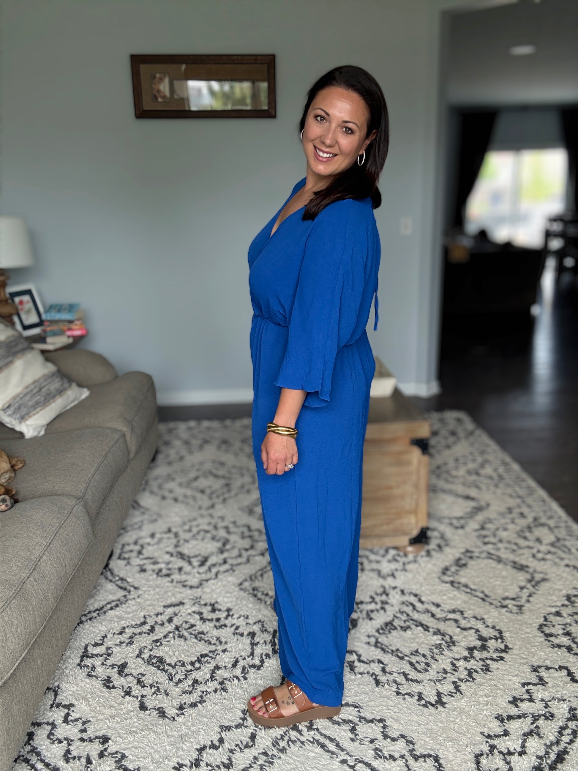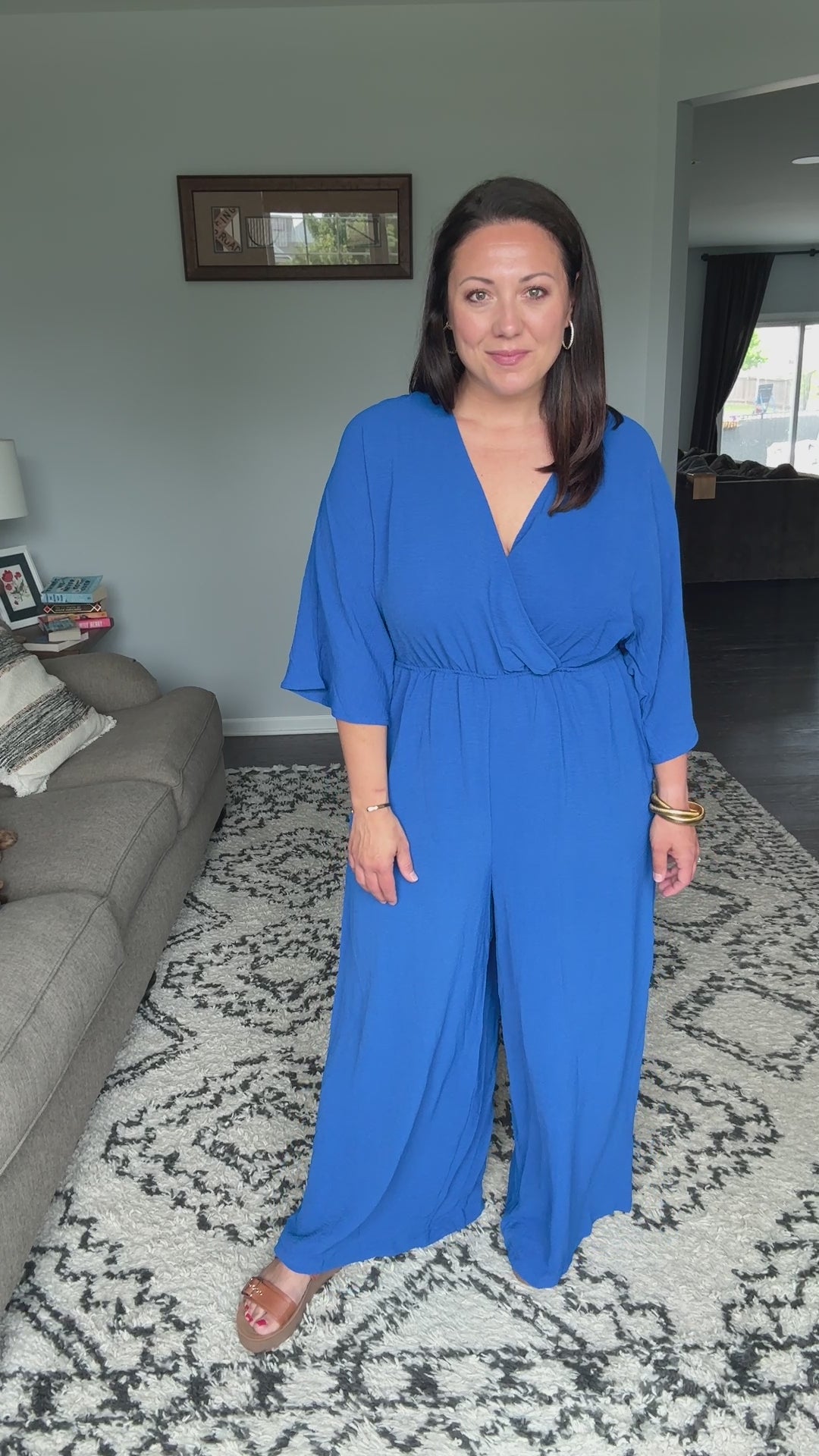 Double Take Surplice Wide Leg Jumpsuit with Pockets in 4 Colors