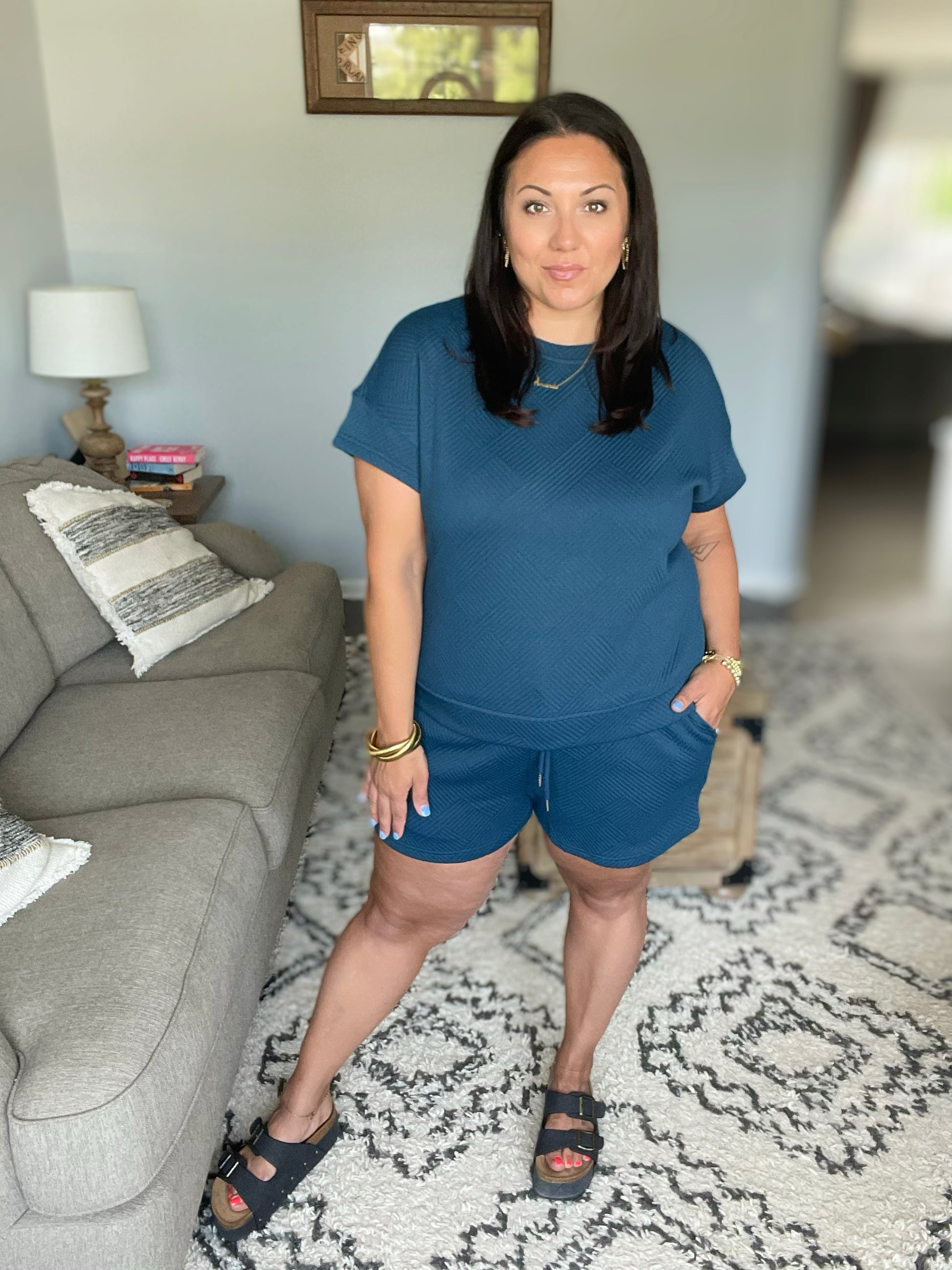Textured Short Sleeve Top and Shorts Set in 11 Colors