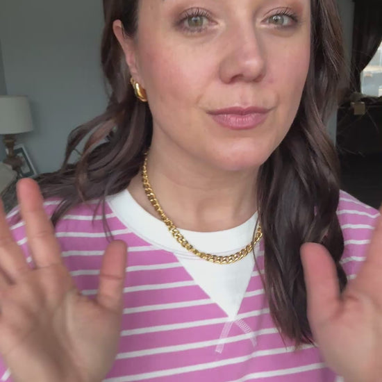 18K gold plated stainless steel means you can wear this piece to the beach, the pool, or even working out without worrying over tarnishing, green marks, or skin irritation.