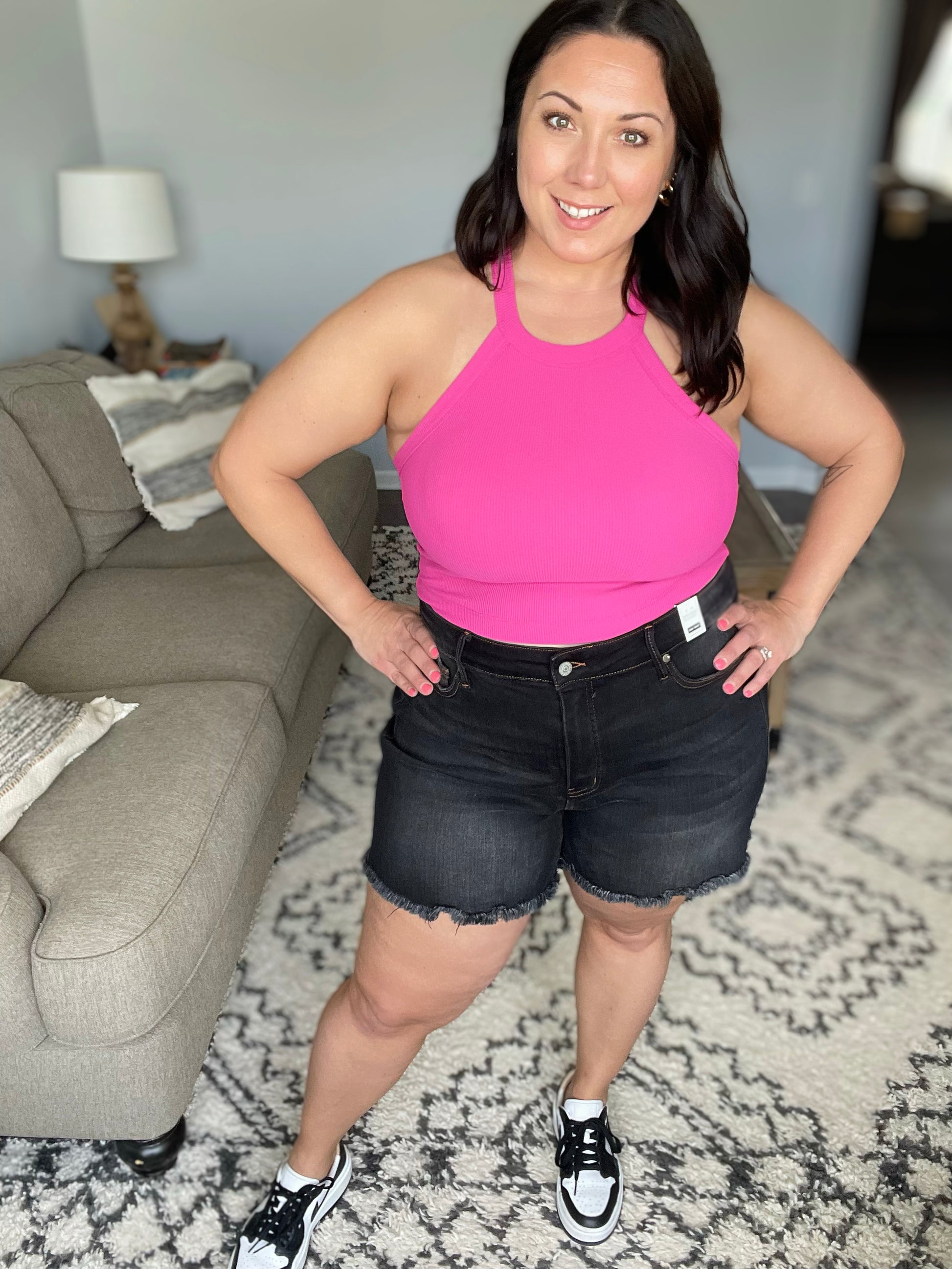 Get ready for some frayed fun with our Ember High Rise Control Top Fray Hem Shorts from Judy Blue! The washed out black adds a touch of cool to any outfit, while the high rise and tummy control tech keep you feeling confident. Perfect for an effortless and relaxed look.