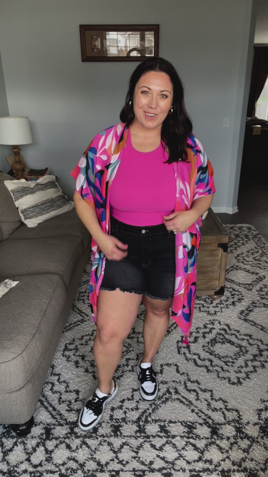 Amanda is wearing 2XL because she likes loose shorts but could have done her normal 1X since they are very stretchy