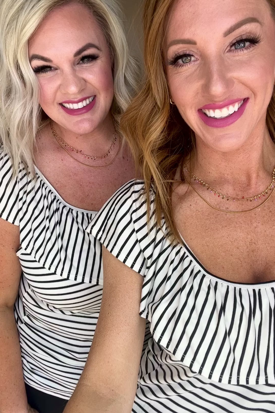 Keep up with the fresh trends in the Extra Time Striped Top! This darling top is composed of a lightweight fabric detailed in a black and white striped print, that makes up a round neckline with ruffle detail, and cap sleeves. Pair with light wash denim, sandals, and sunnies for an on trend look!