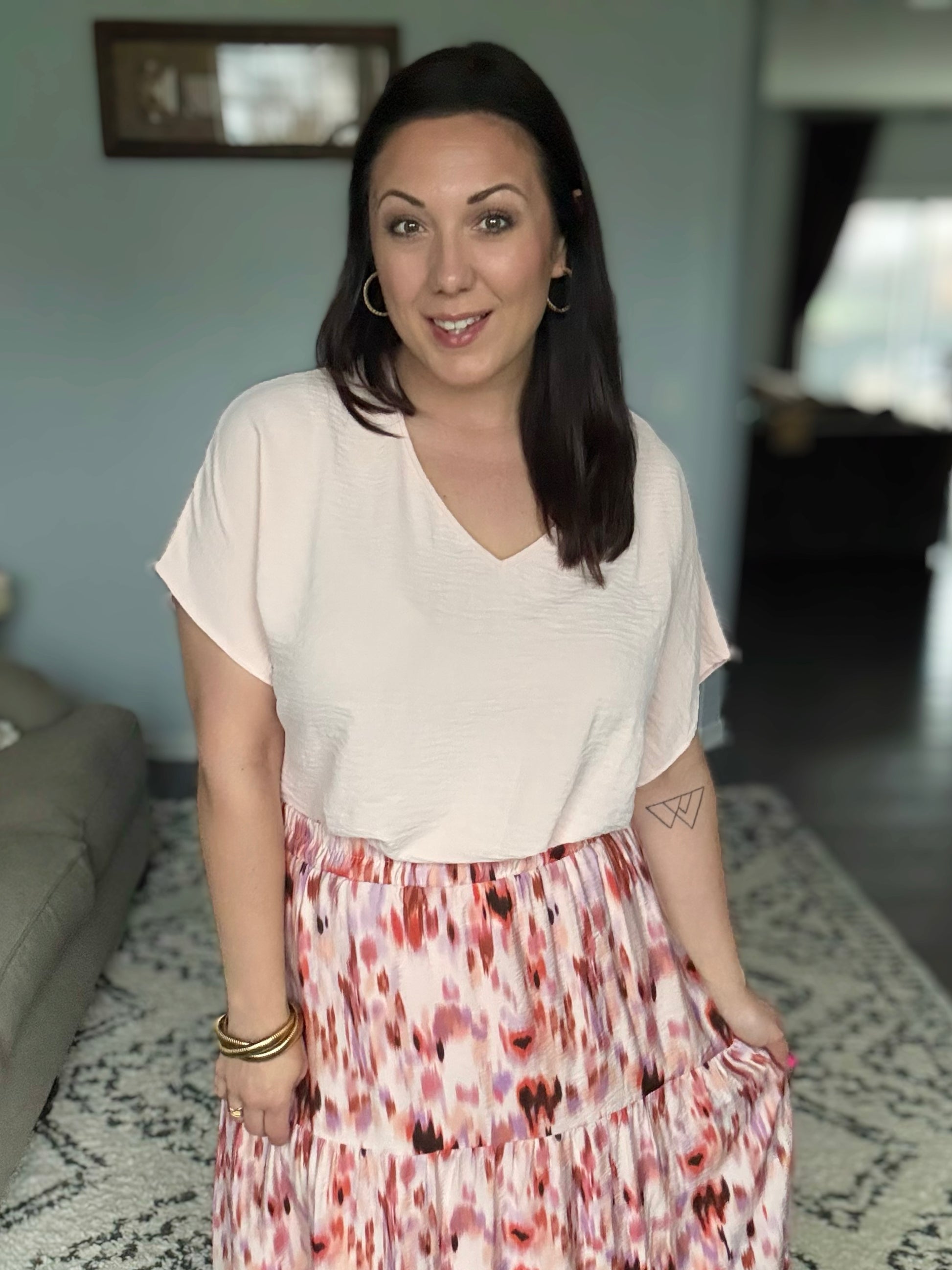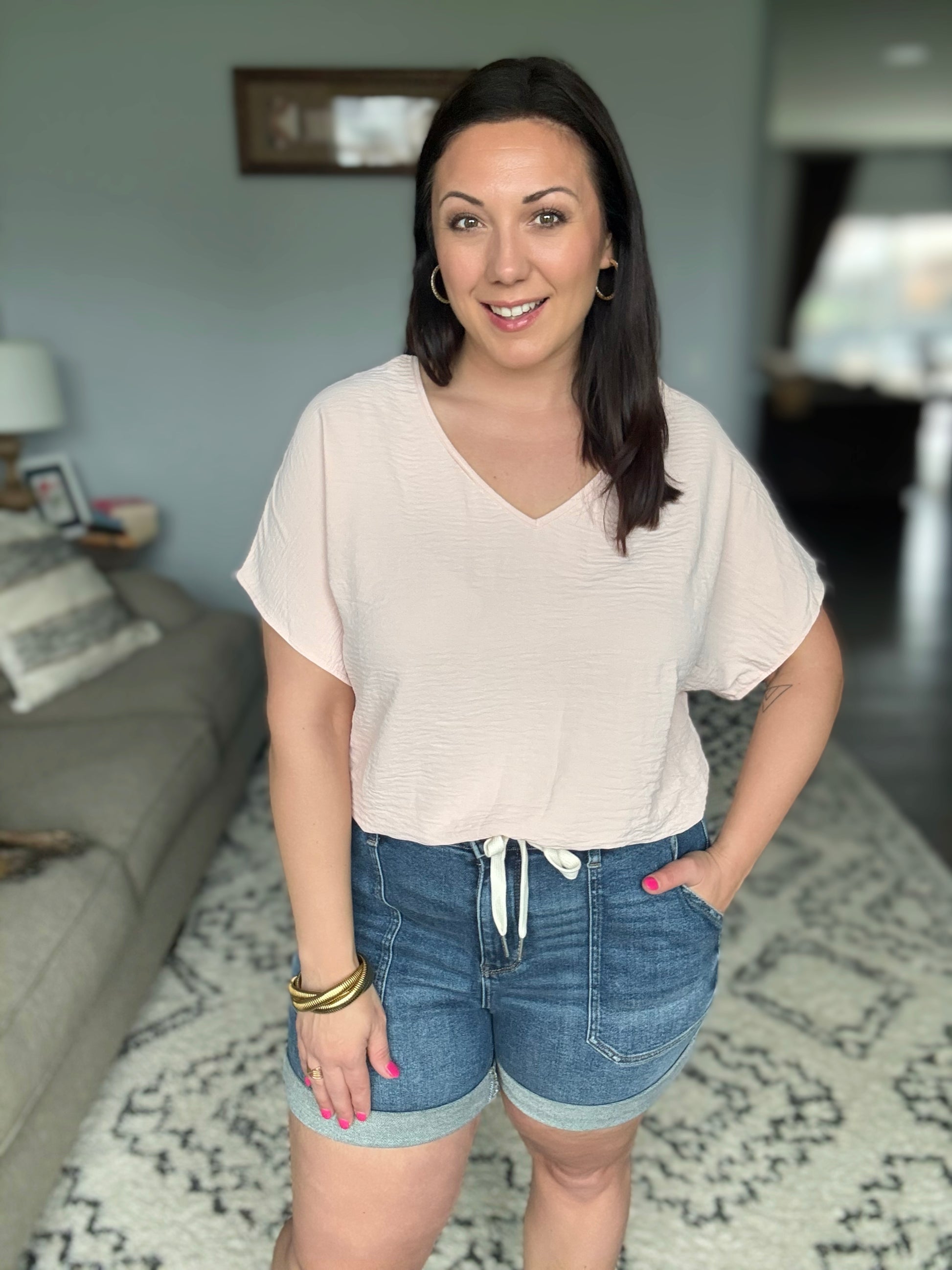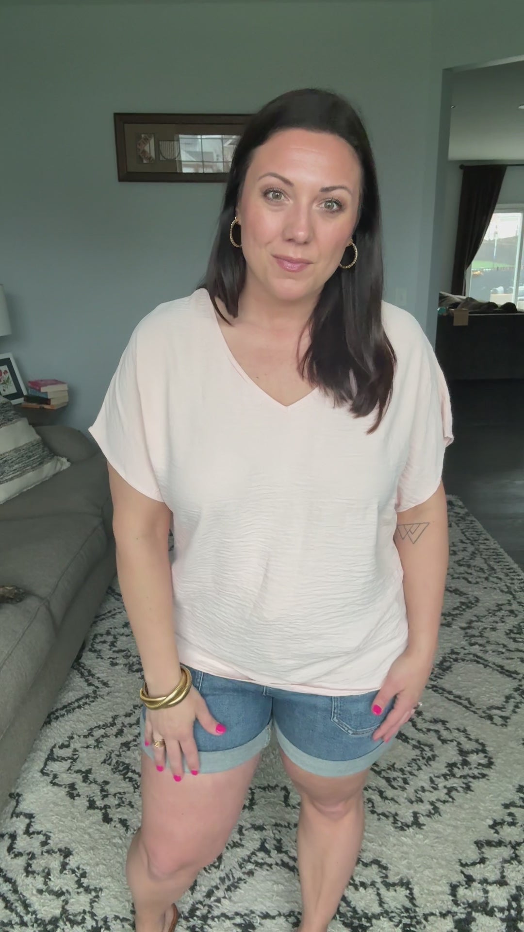 Our Frequently Asked Questions V-Neck Top in blush is the perfect blend of comfort and style. The textured woven fabric allows for airflow, providing ultimate breathability, while the v-neckline and relaxed fit make it flattering for any body type. A great pick for casual everyday wear.