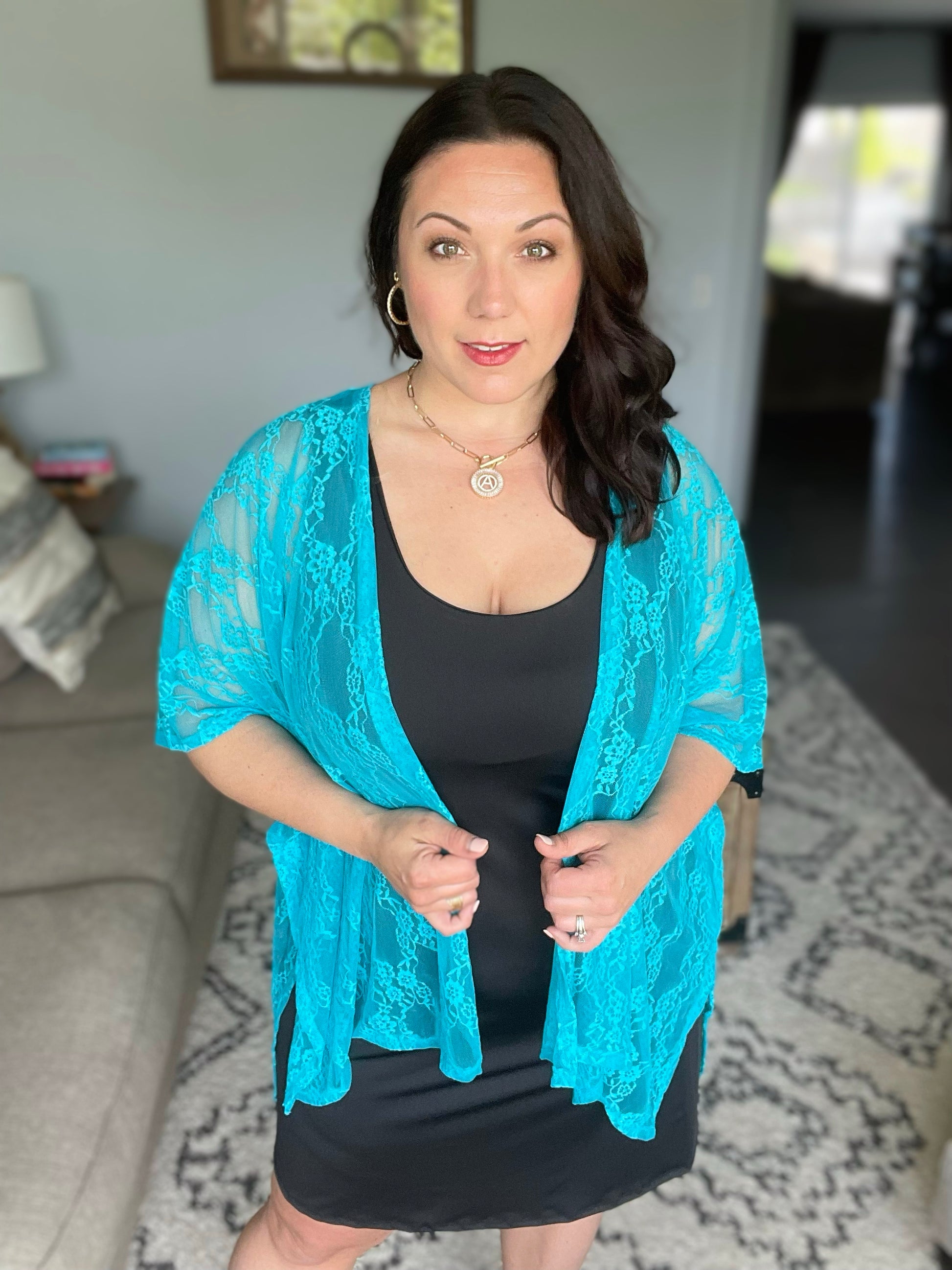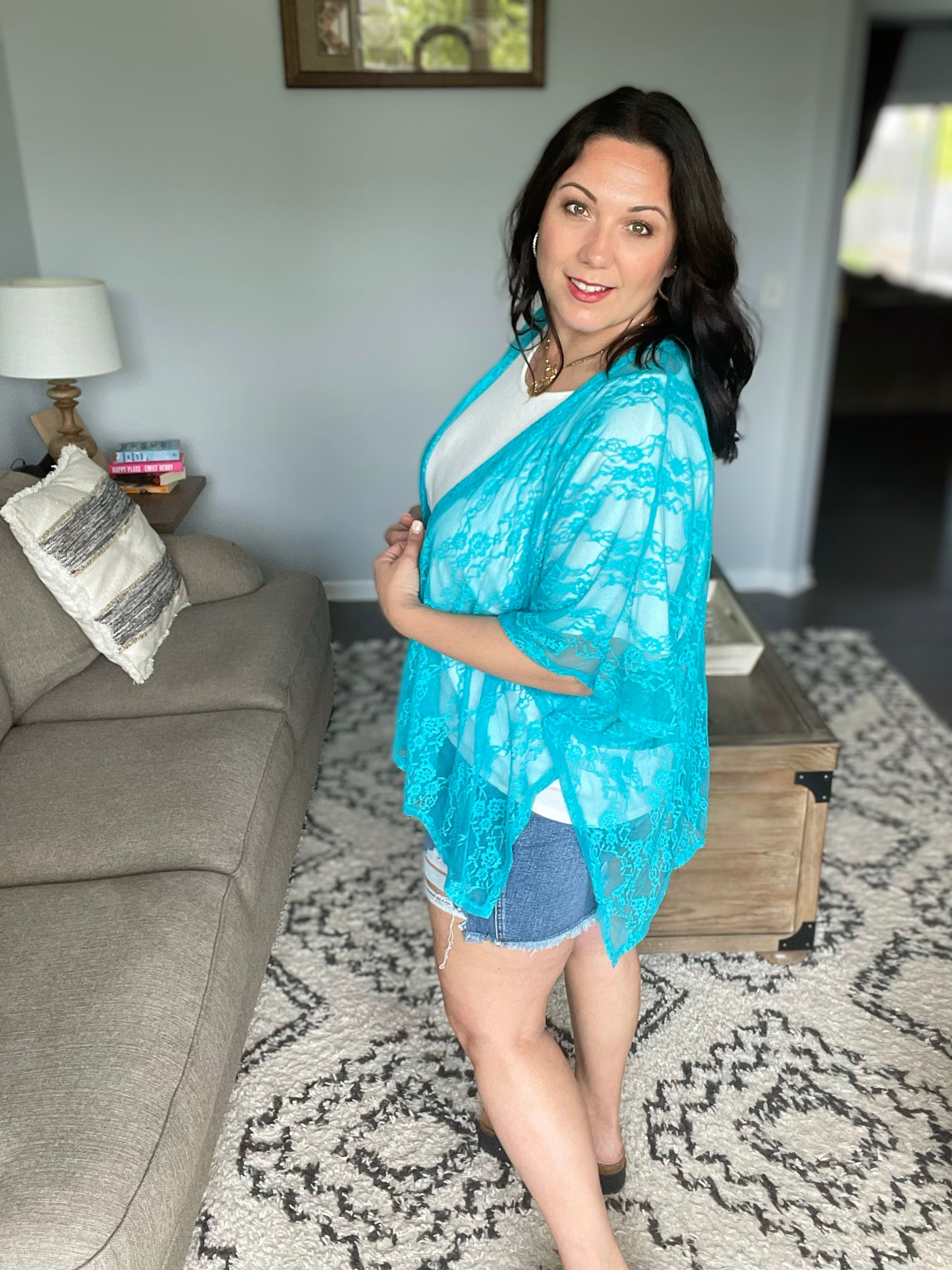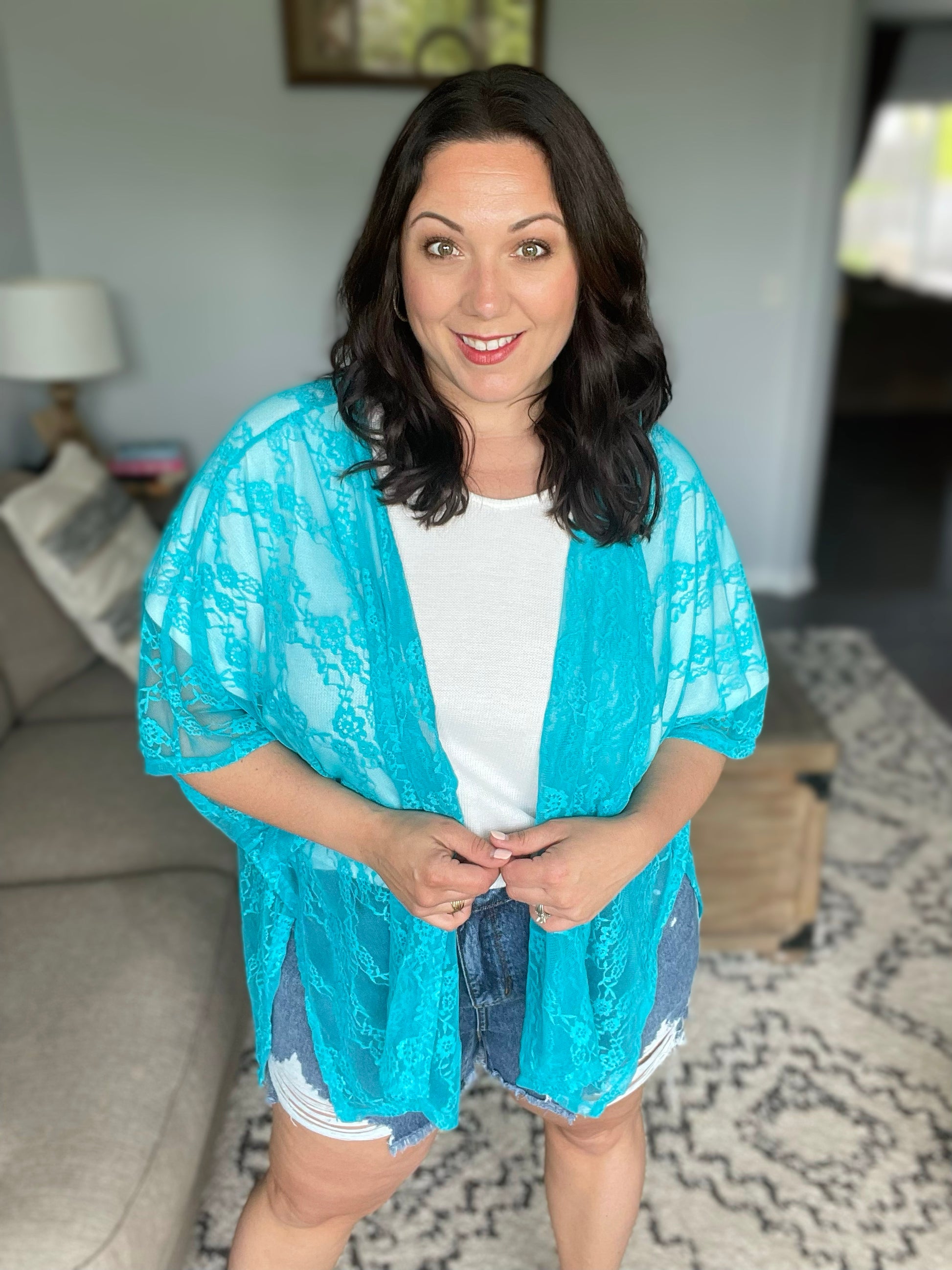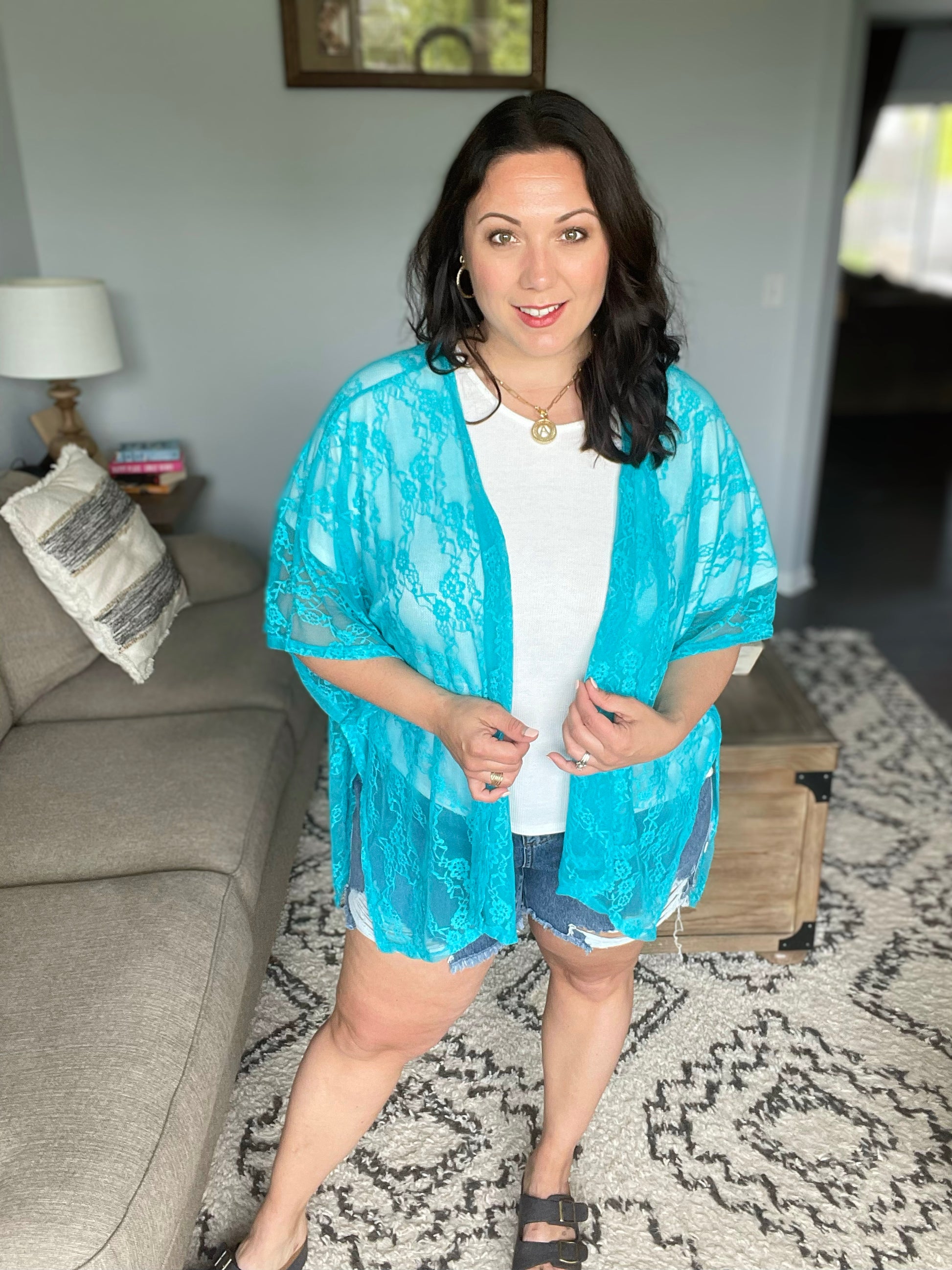 Transform your wardrobe with our Good Days Ahead Lace Kimono! Made with stretch lace, this kimono features an open front, dolman sleeves, and side slits for a trendy and comfortable look. Elevate your style and feel confident every day.