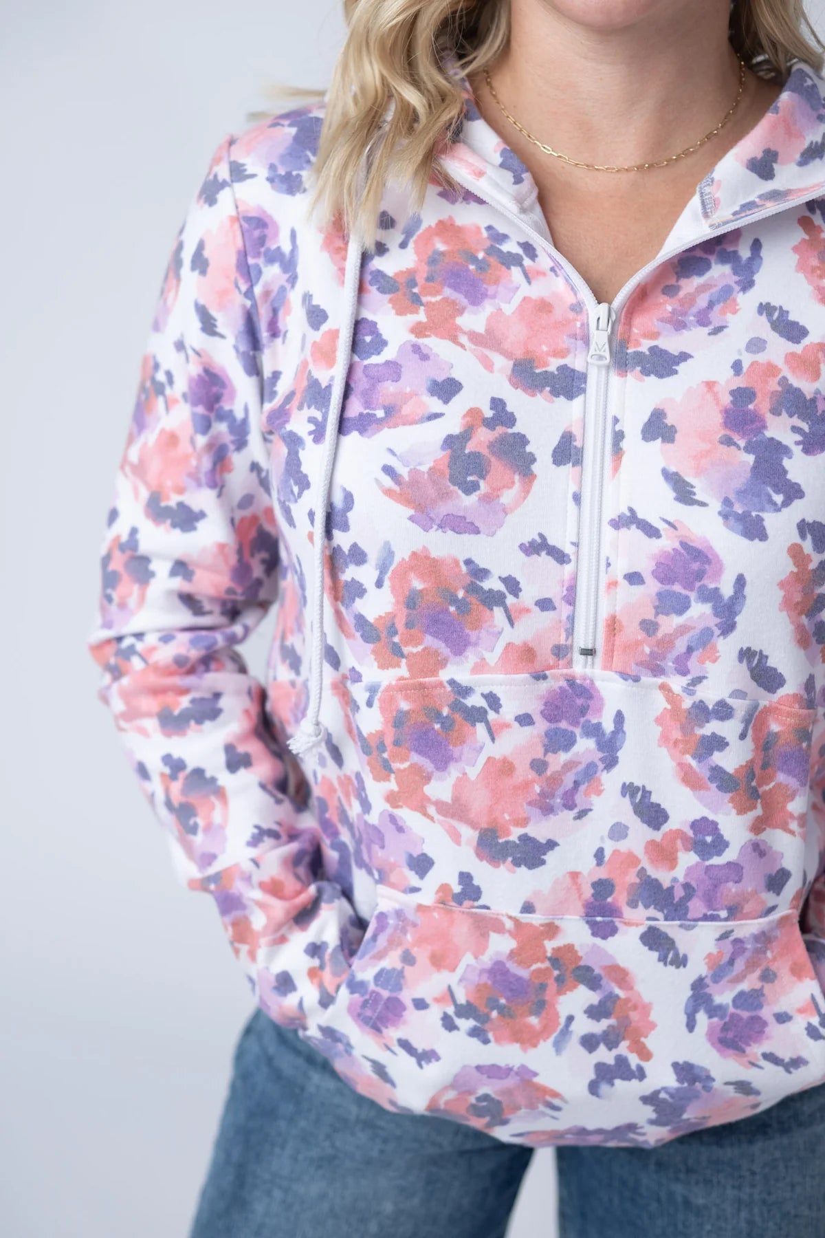 Michelle Mae HalfZip Hoodie - Purple Abstract