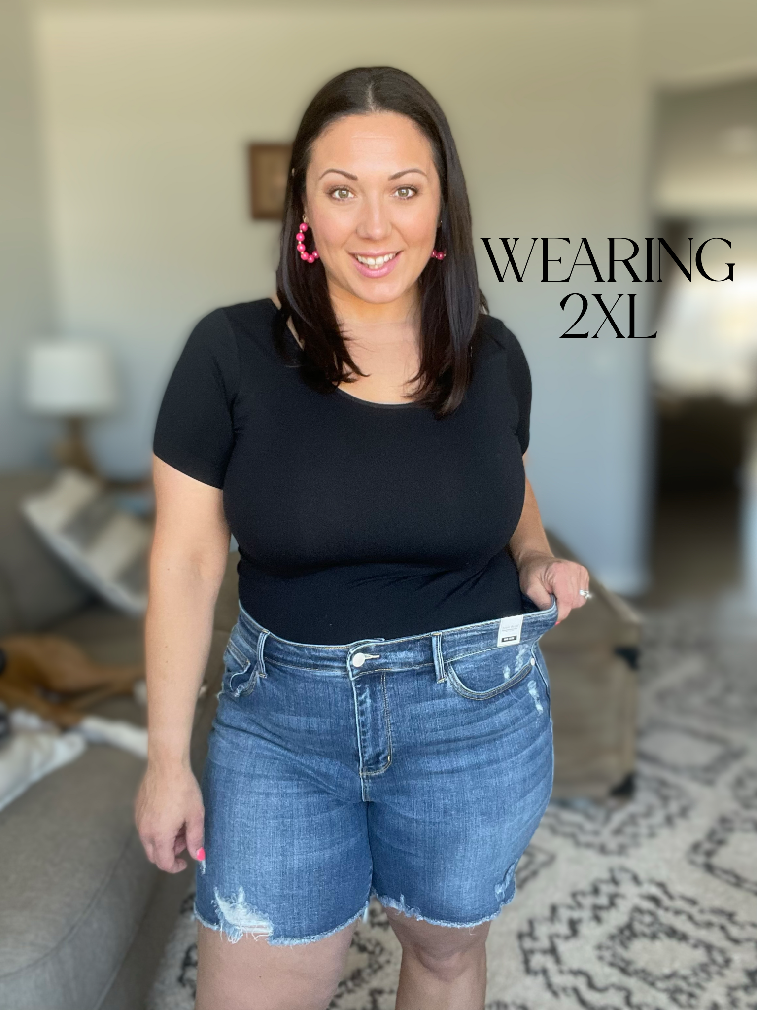 Hallie Hi-Lo Mid-Rise Judy Blue Destroyed Shorts