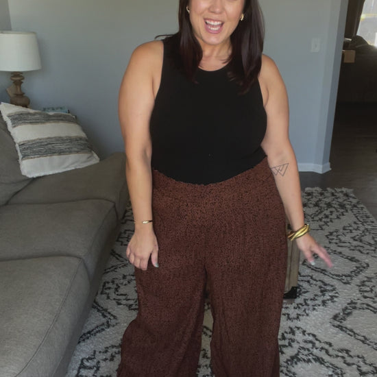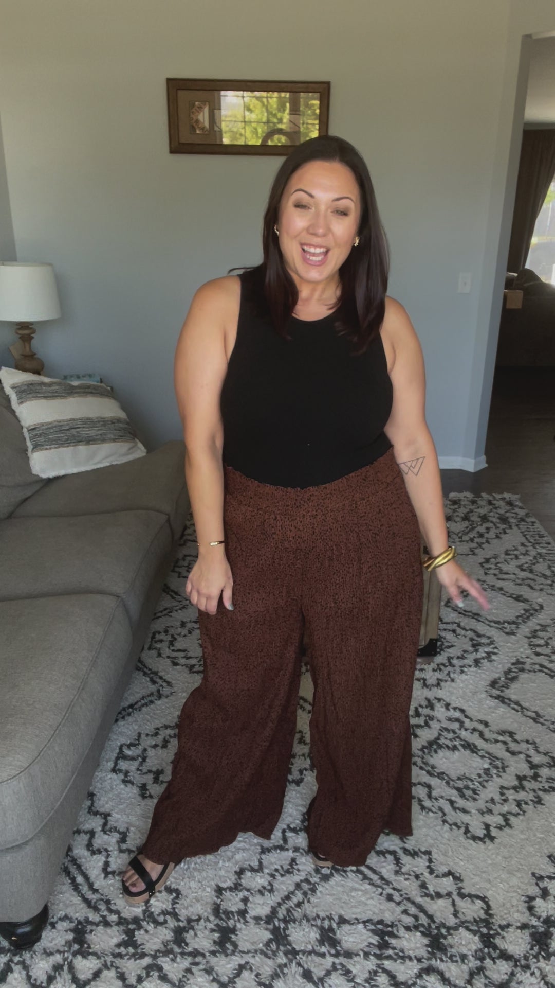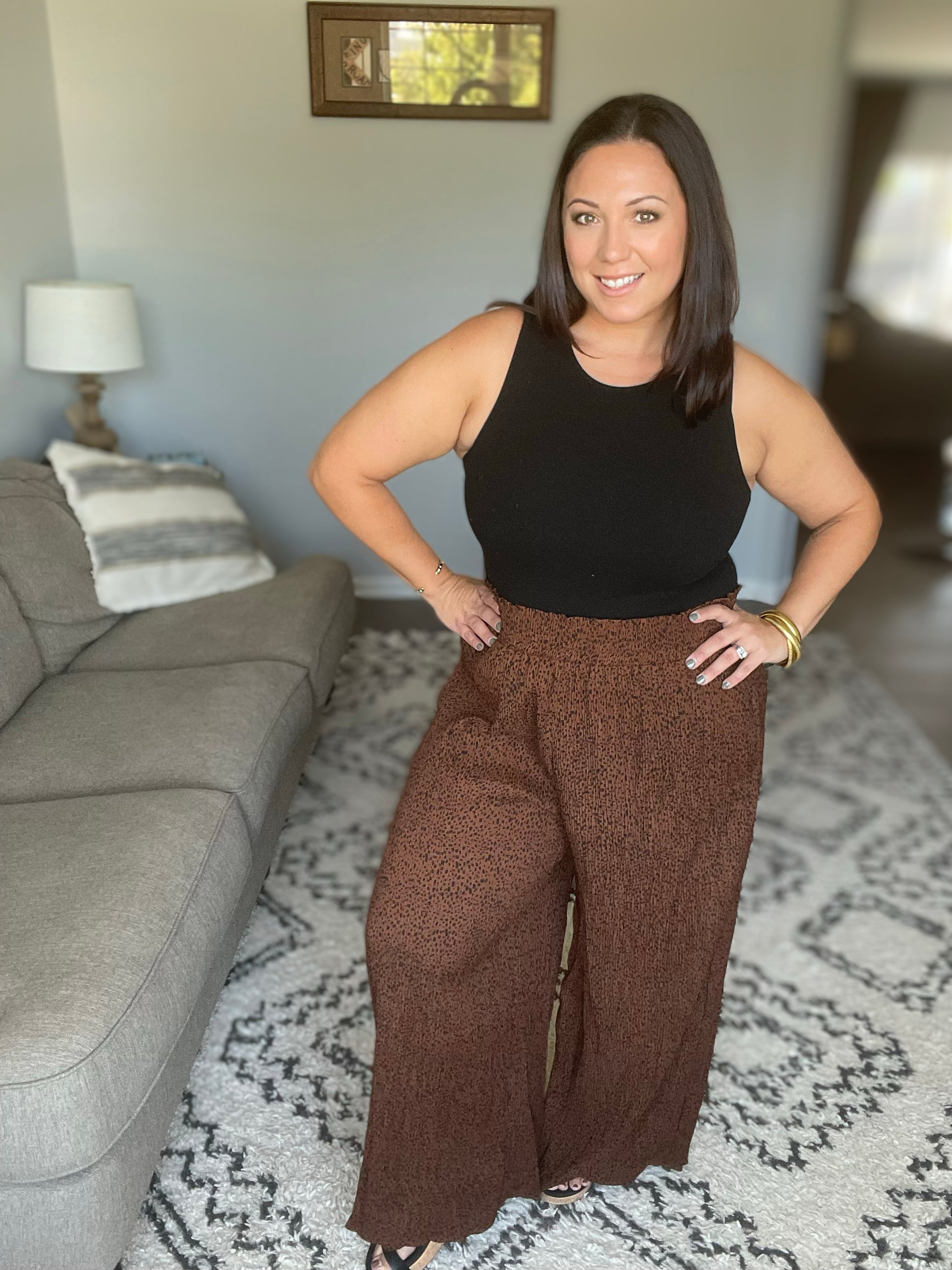 Get ready to make a statement with our Harmony High Rise Wide Leg Pants! Boasting a smocked waistband, textured fabric, and a dramatic wide leg, these iconic pants will make you stand out wherever you go. With a subtle polka dot print, you'll add a touch of glamour to any look.