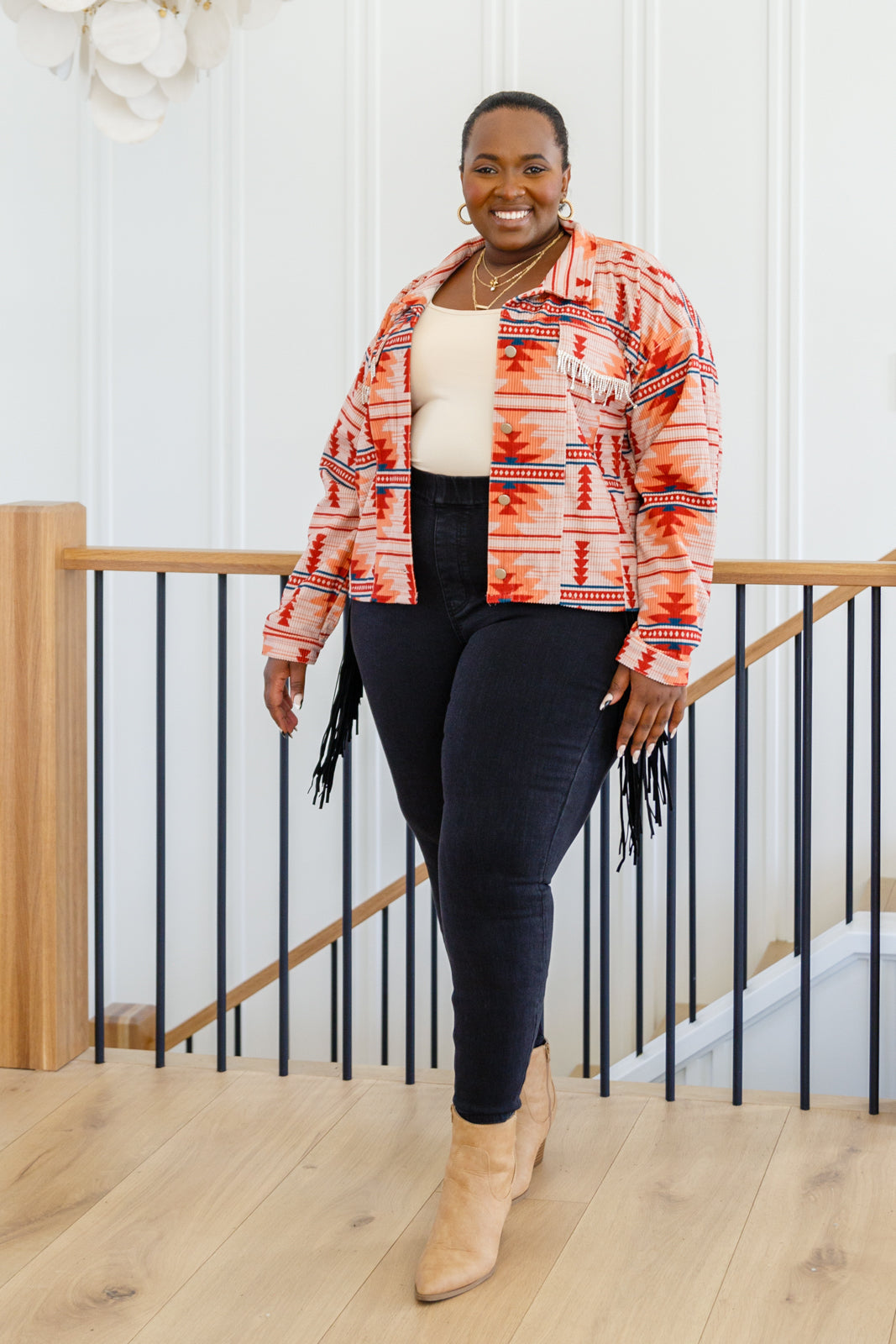 If there's anyone who can totally rock the Hilary Side Fringe Skinny Jegging In Black it's you! These western inspired jeggings feature a mid-rise waist with faux front pockets topping a skinny pant leg. Faux suede fringe decorates either side of these jeans adding a unique and stylish touch. Add cowboy boots and a crop top for a super fun look!