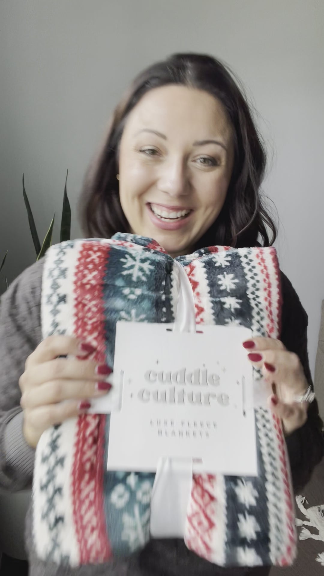 Snuggle up with the coziest fleece blankets from Cuddle Culture. The Holiday Fleece Blanket in Sweater Knit is perfect throw size and available in four adorable holiday prints!