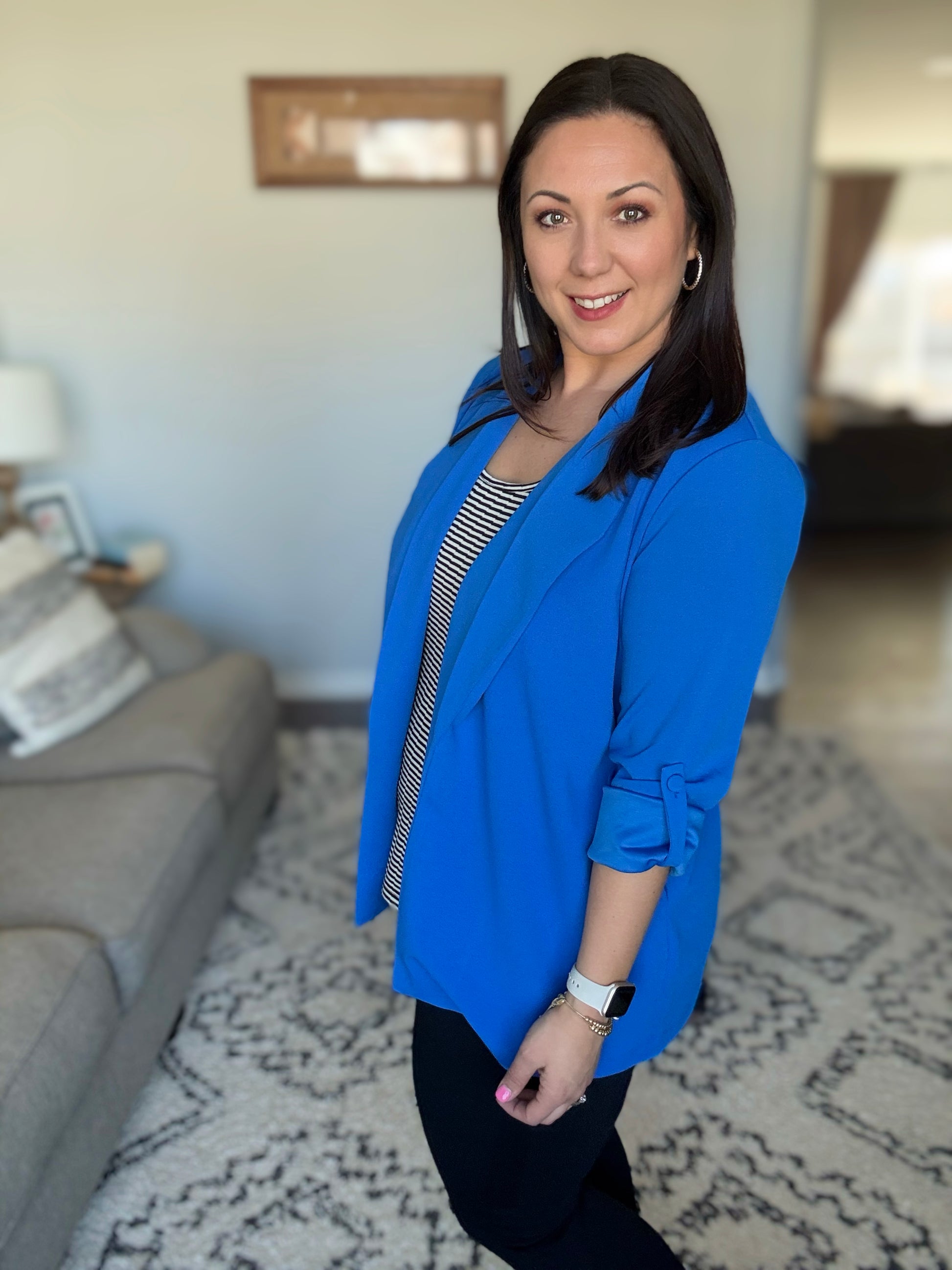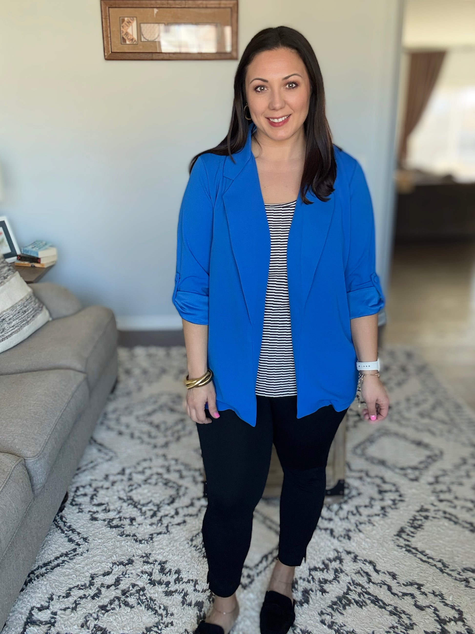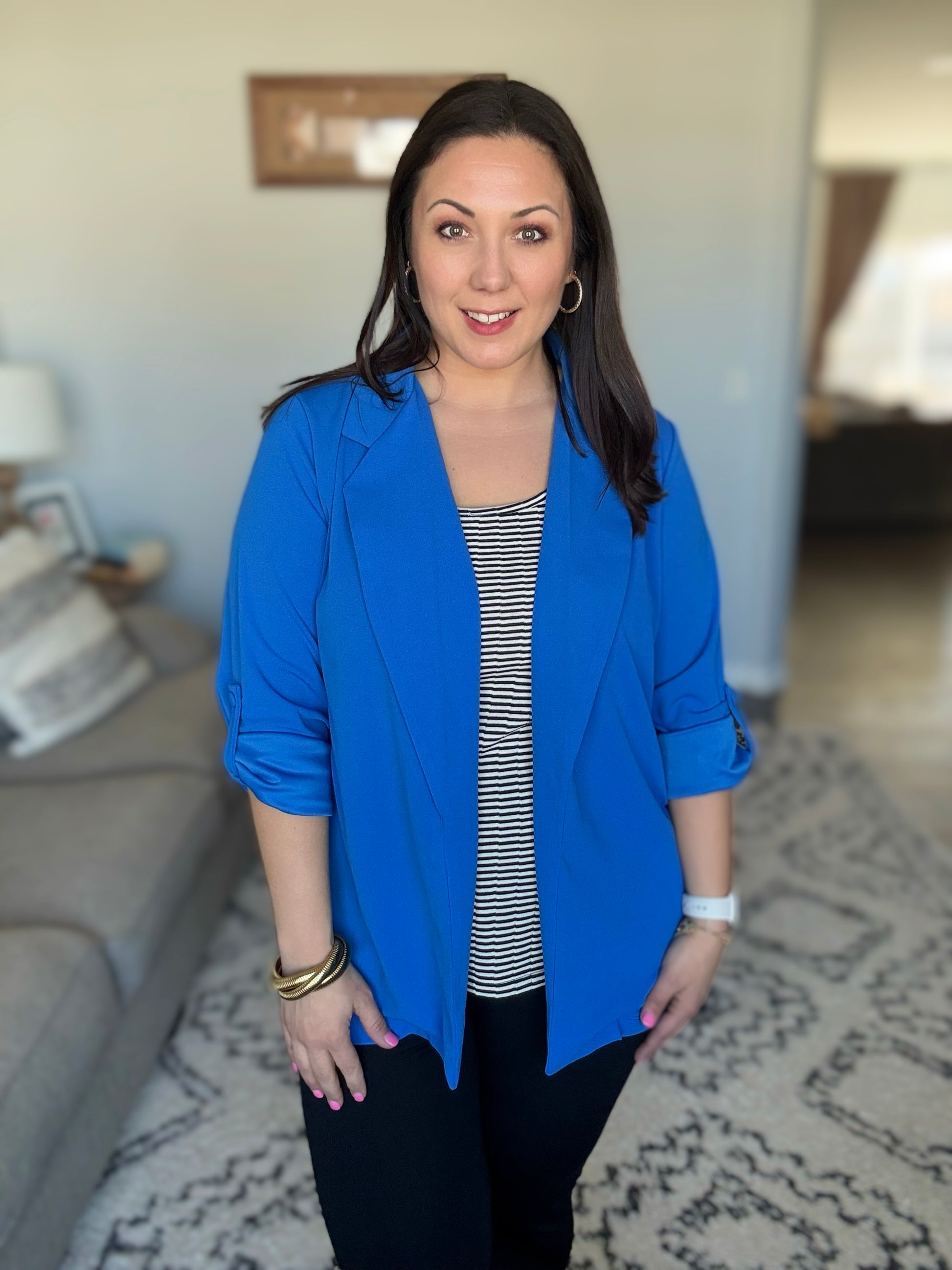 I'm Really That Gal Open Front Blazer in Royal Blue