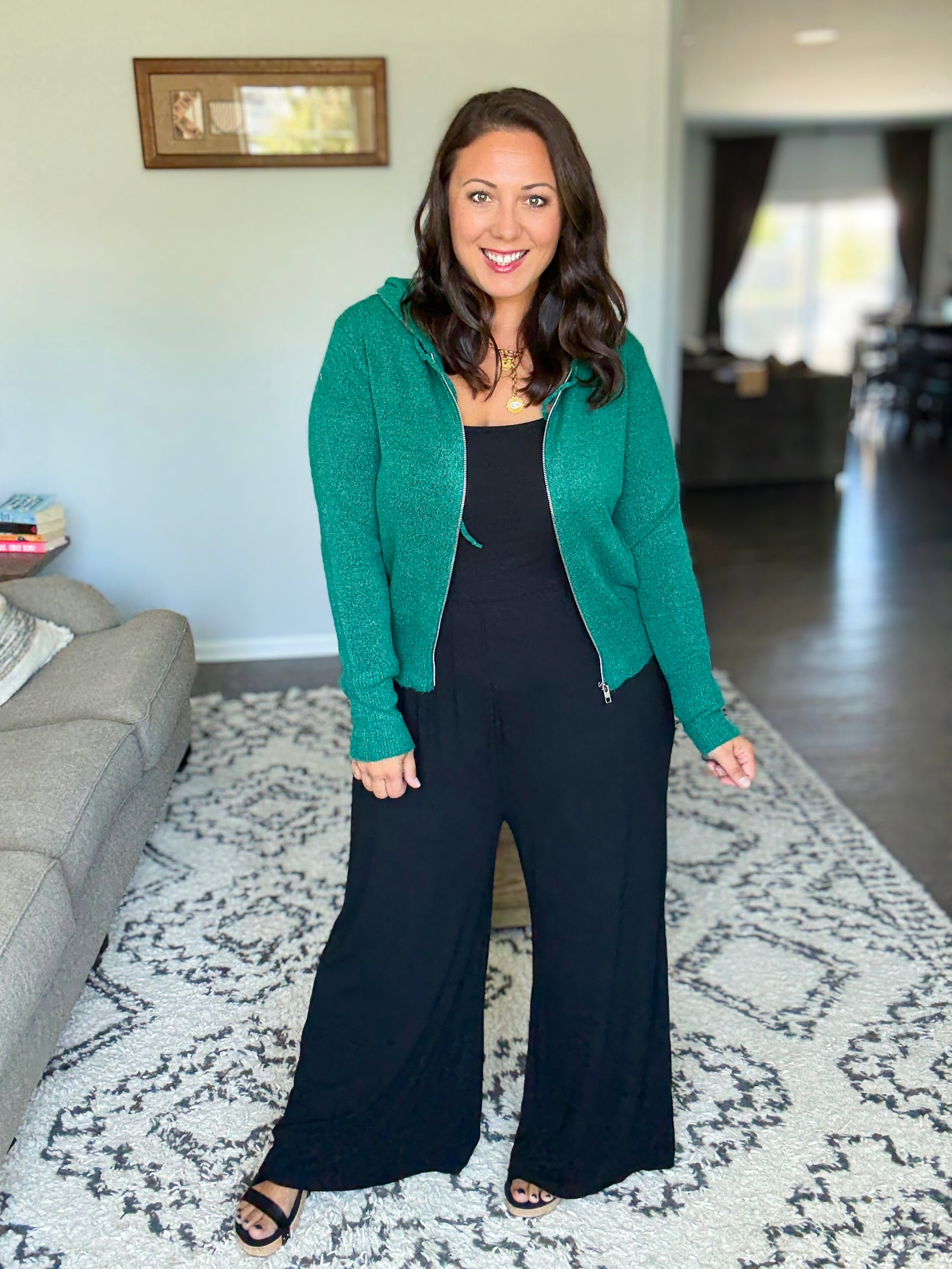 - Model Sizing: Jamie and Catherine are wearing a size small, Amanda is wearing an XL. If pear shaped, can likely go with smaller top sizing as the wide leg silhouette is generous for curvy gals.