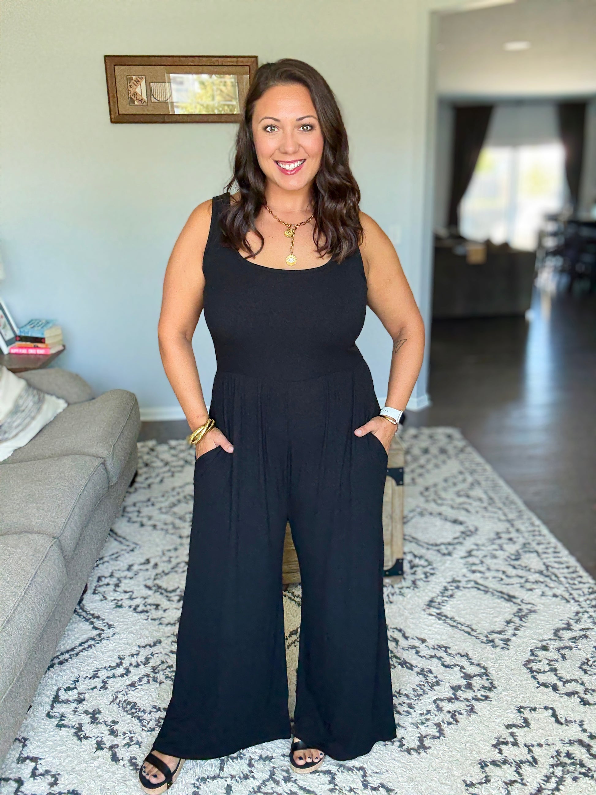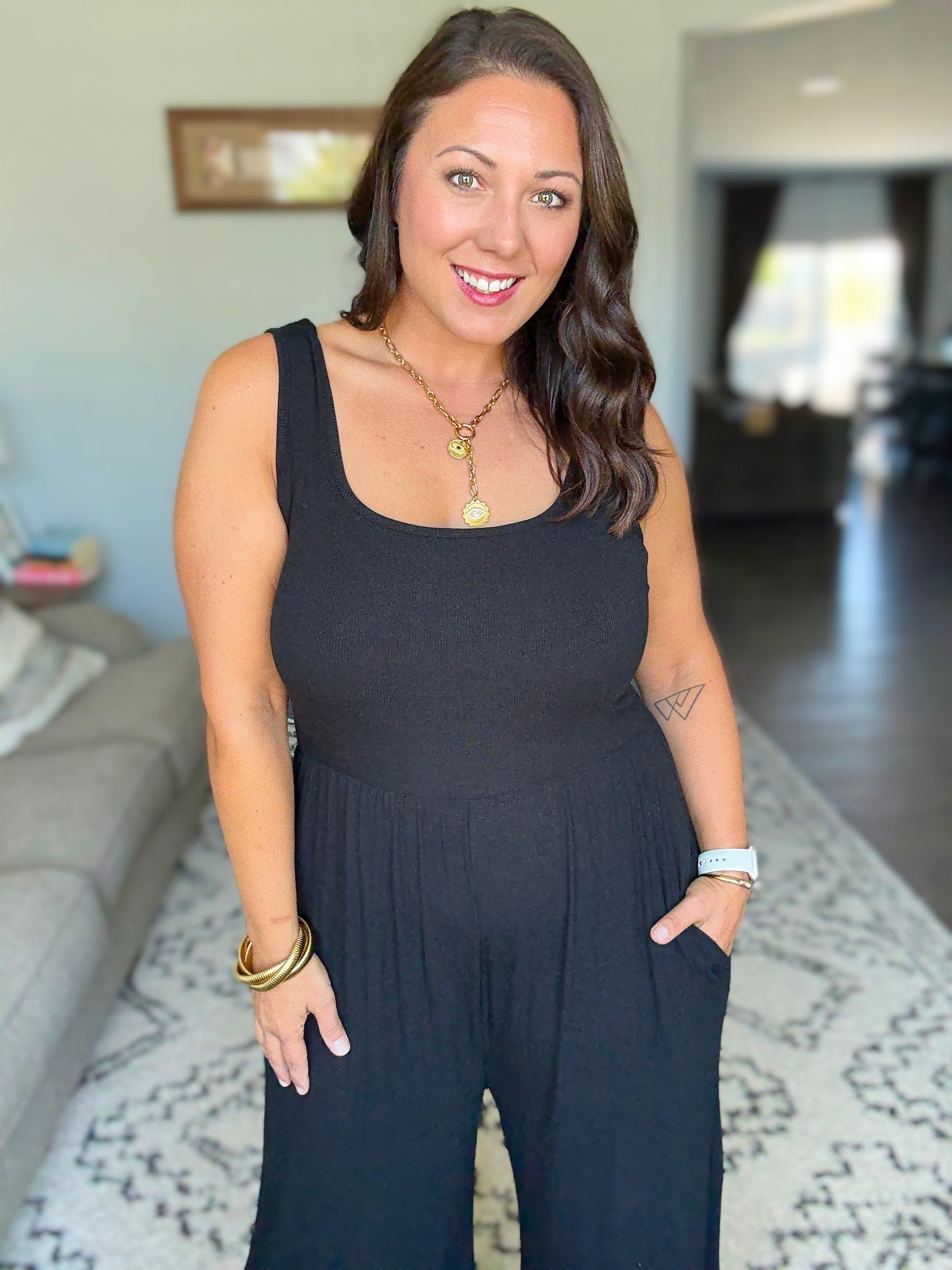 Dominate any event in the daring Paige Jumpsuit! Made in the USA, its soft, micro ribbed fabric provides all-day comfort while the convenient pockets add functionality. Don't just blend in, stand out in this bold and versatile jumpsuit. Pair it with your favorite cozy cardigans, a jean jacket, or a blazer for work!