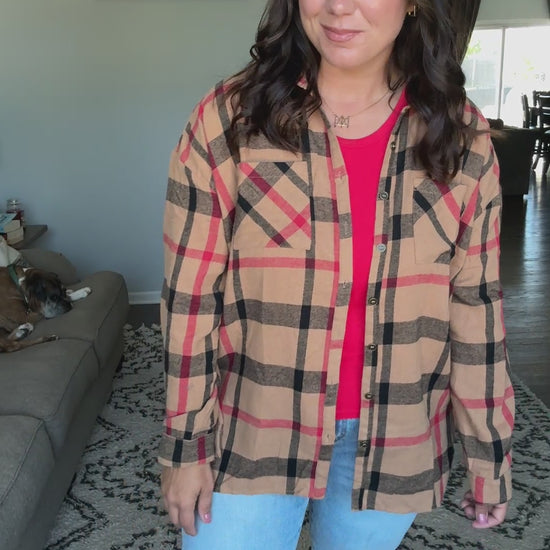 Get ready to rock the updated flannel trend with our Is It Really Oversized Button Up! Made from lightweight flannel, this collared button up features a large scale plaid design and side slits for a flattering fit. Perfect for any casual occasion, it's a must-have for your wardrobe. (You can thank us later.)