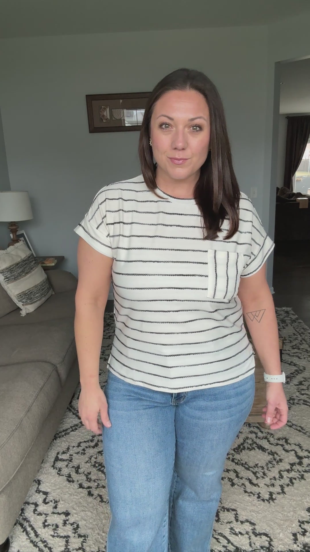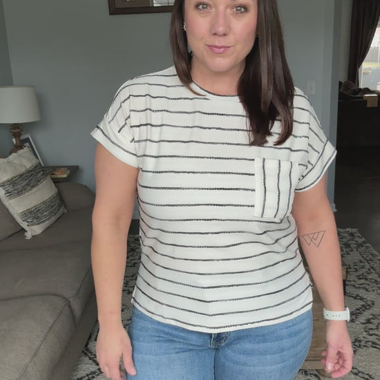 A great striped top is always a wardrobe win. This ribbon knit version adds subtle texture and softness that makes it feel a little more special than your average tee.
