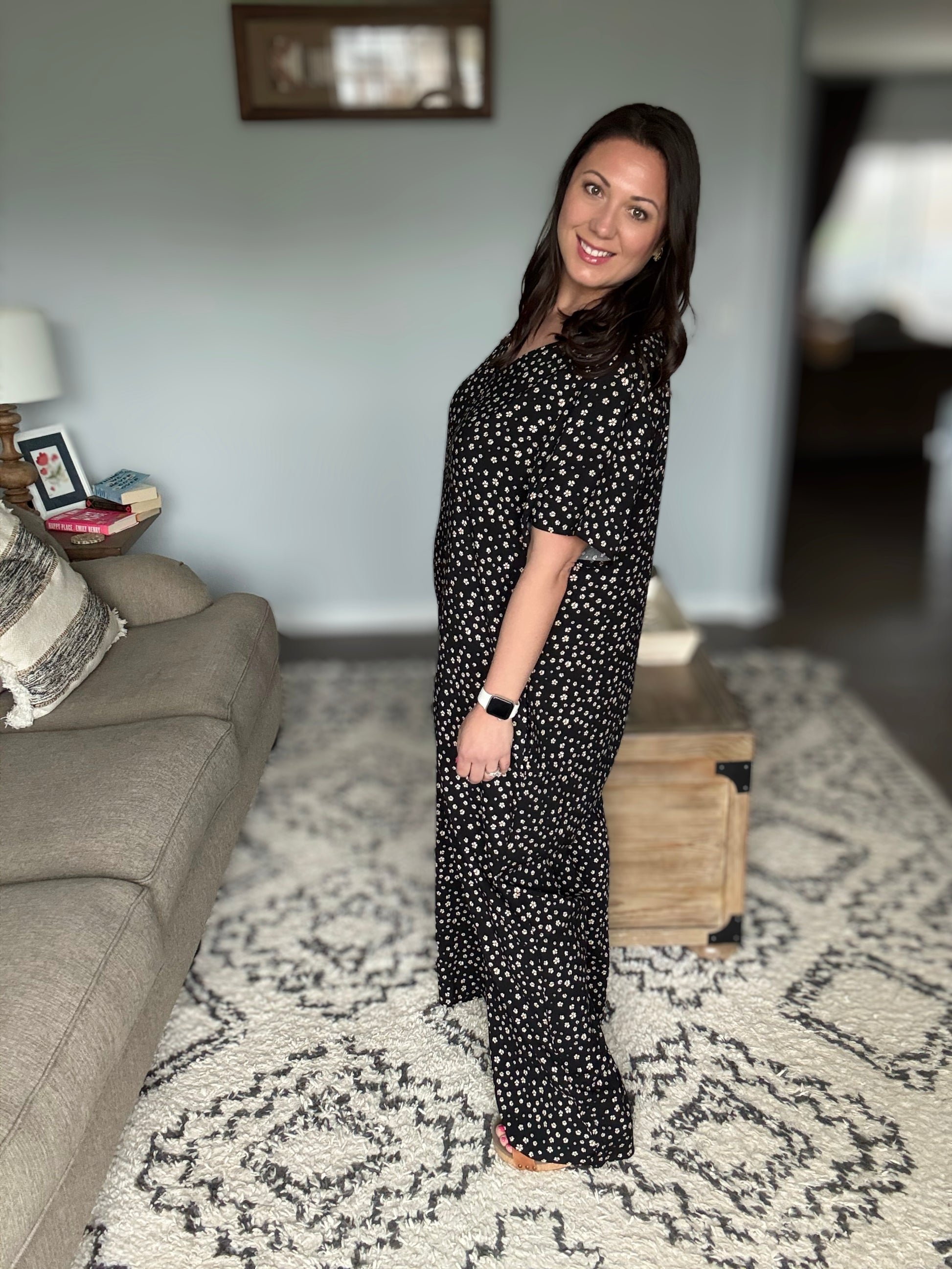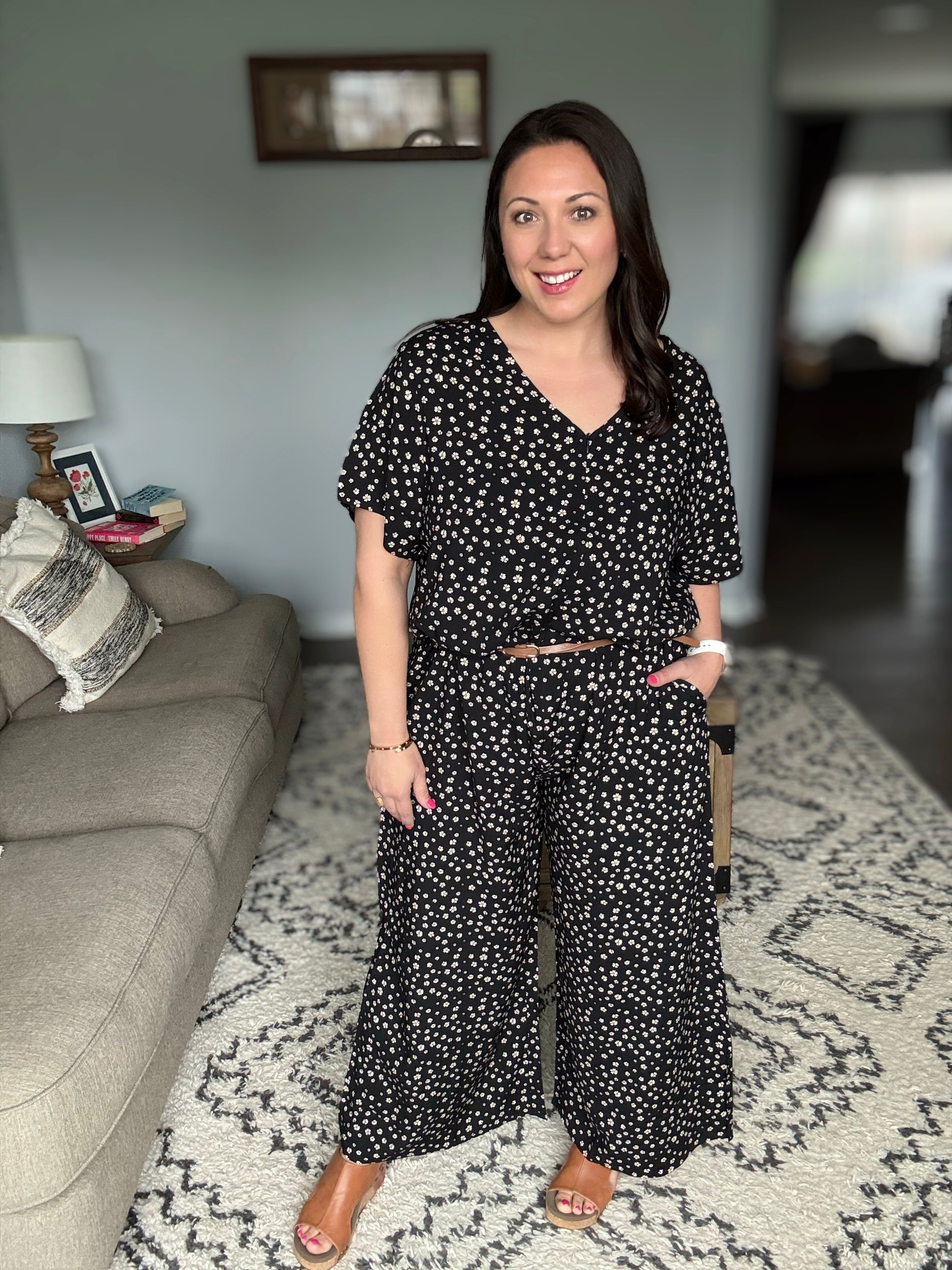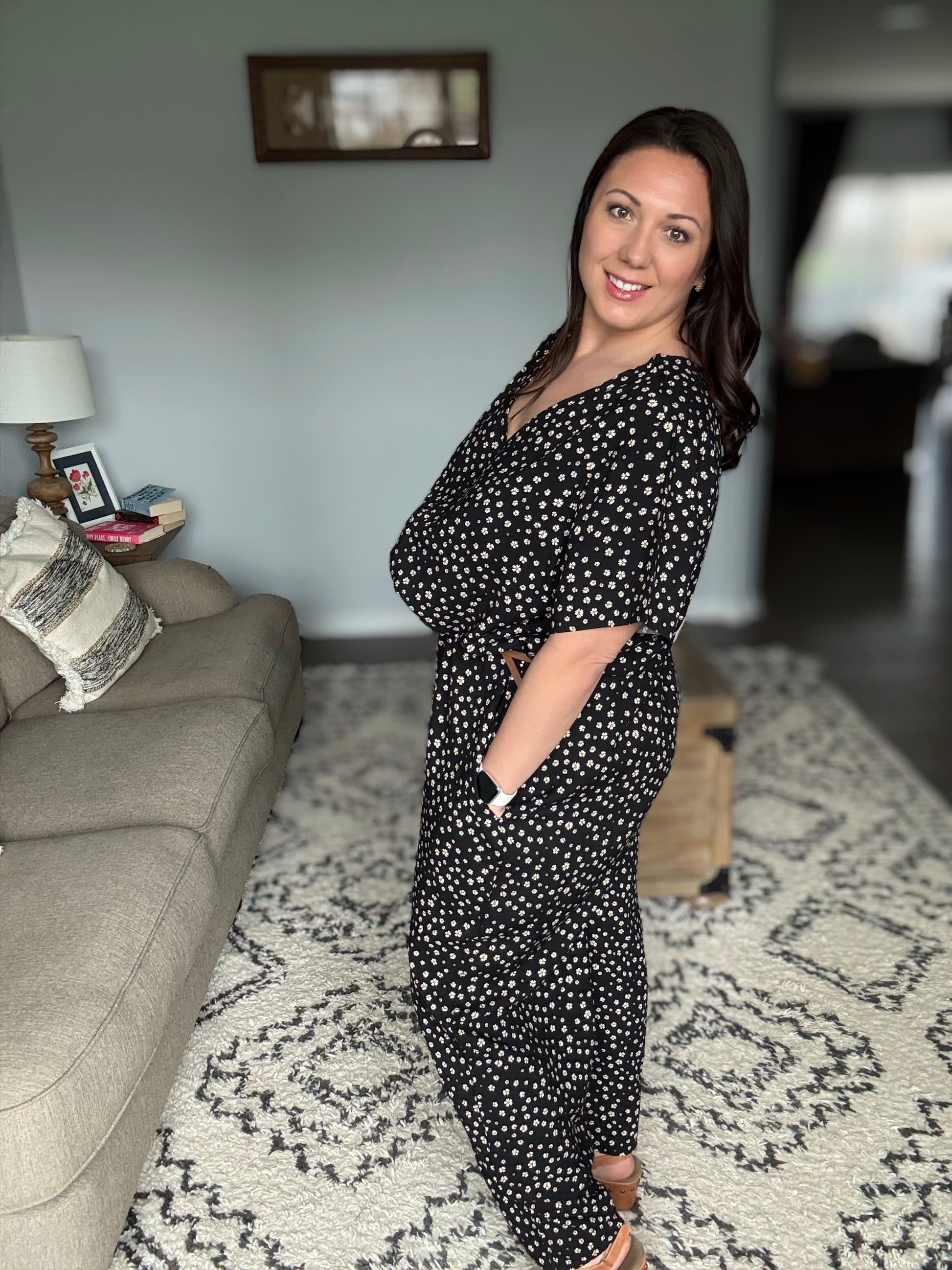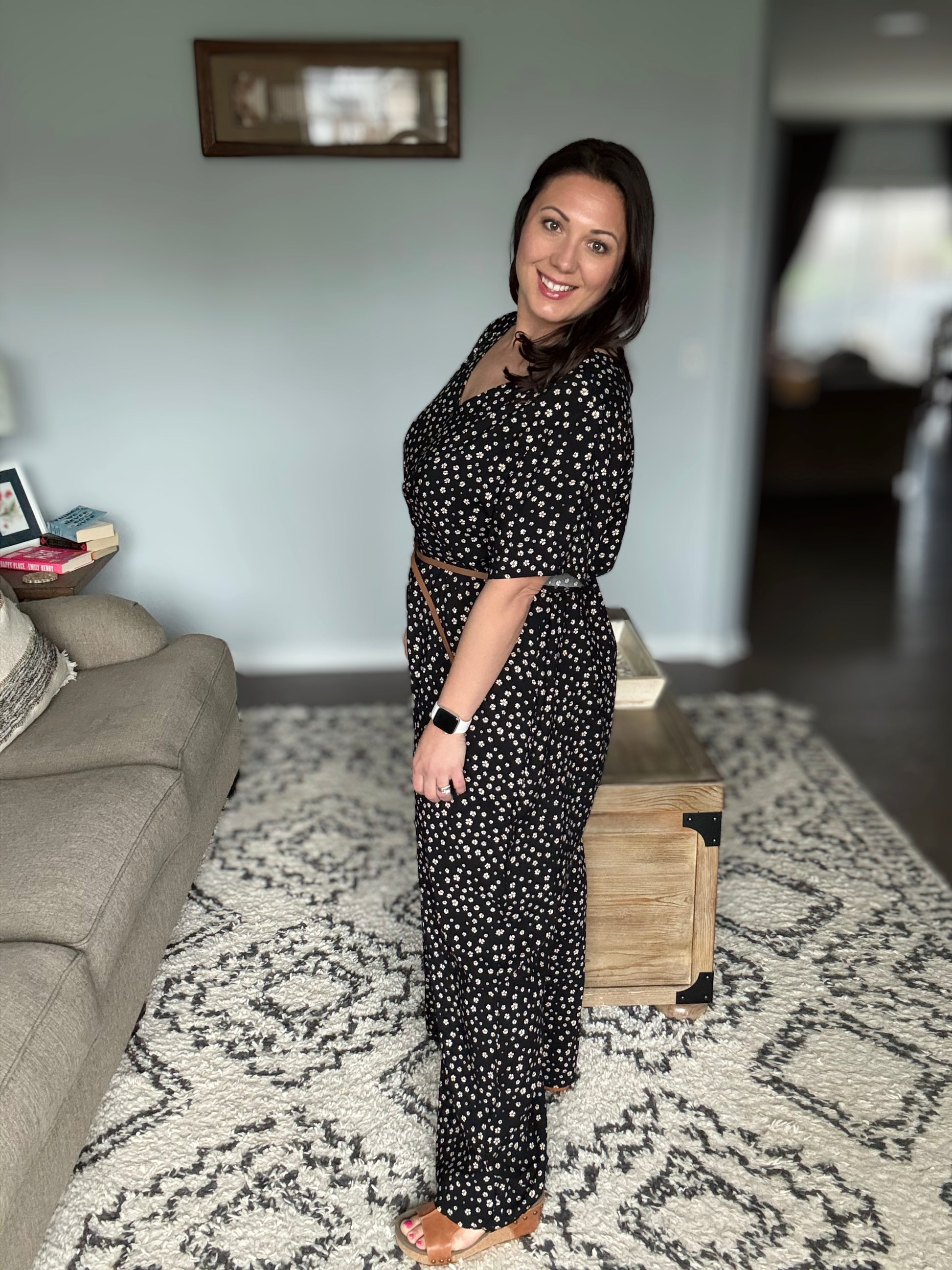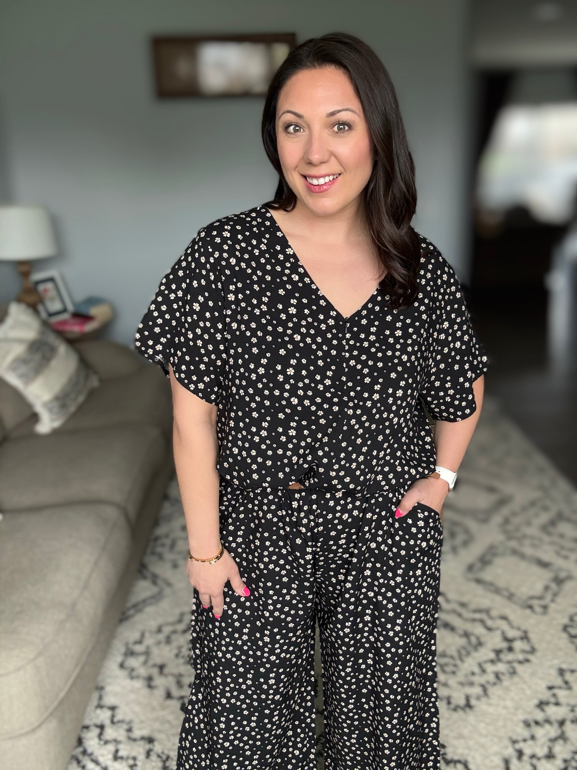 Make a statement in our Jasmine Jumpsuit Blossoms! This woven jumpsuit features a flattering V-neckline, a convenient front zipper closure, and a relaxed fit for maximum comfort. The wide leg adds a chic touch, while the functional side pockets provide practicality. Perfect for any occasion! (Zip into style!)