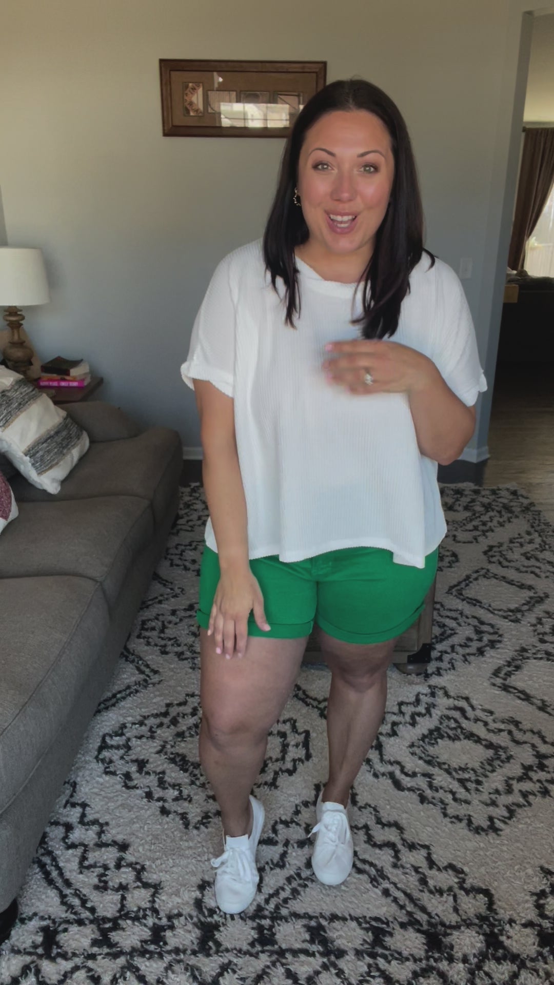 Jenna High Rise Control Top Cuffed Shorts in Green