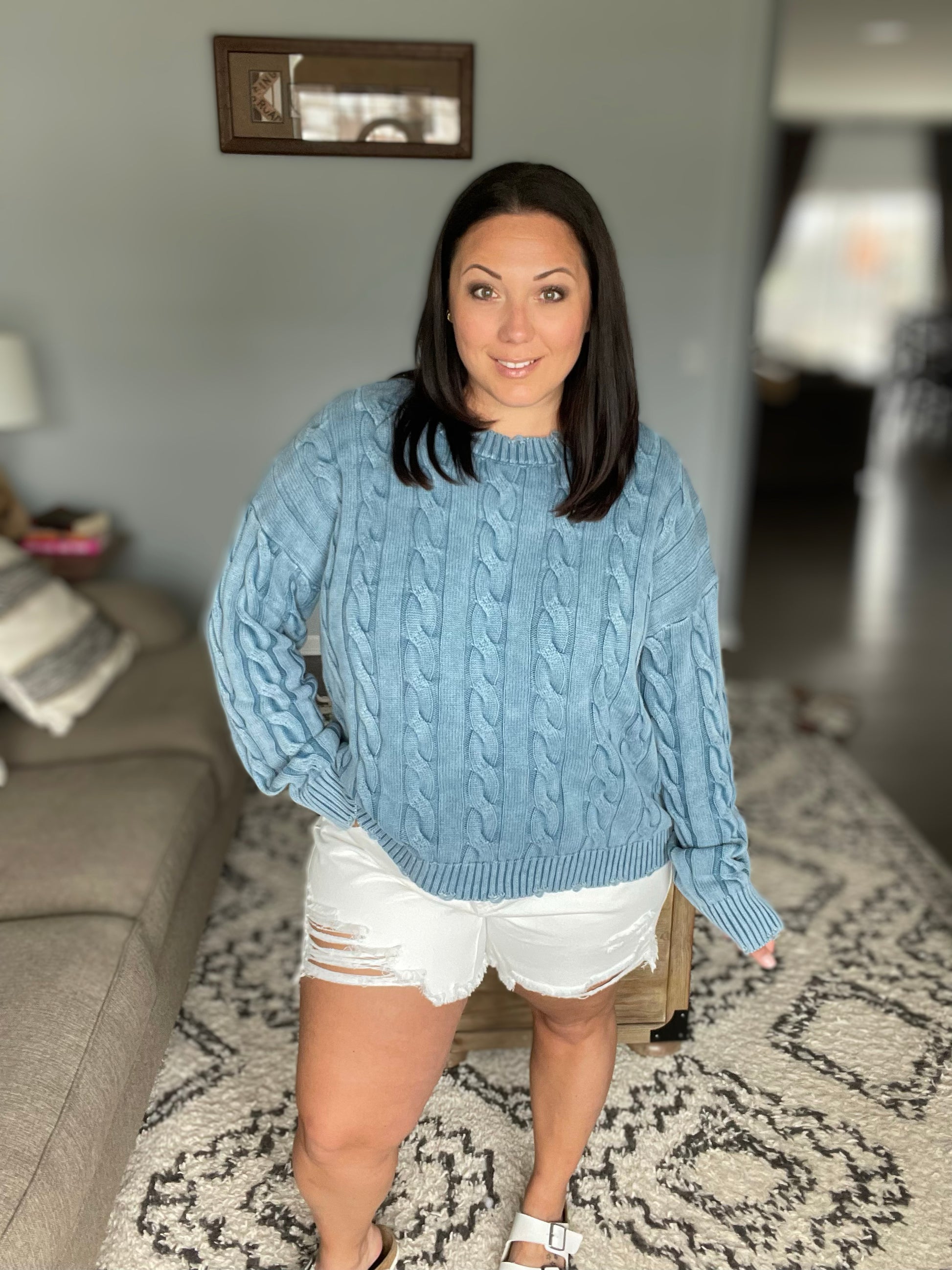 - Cutoff Raw Hem with Stay Stitch