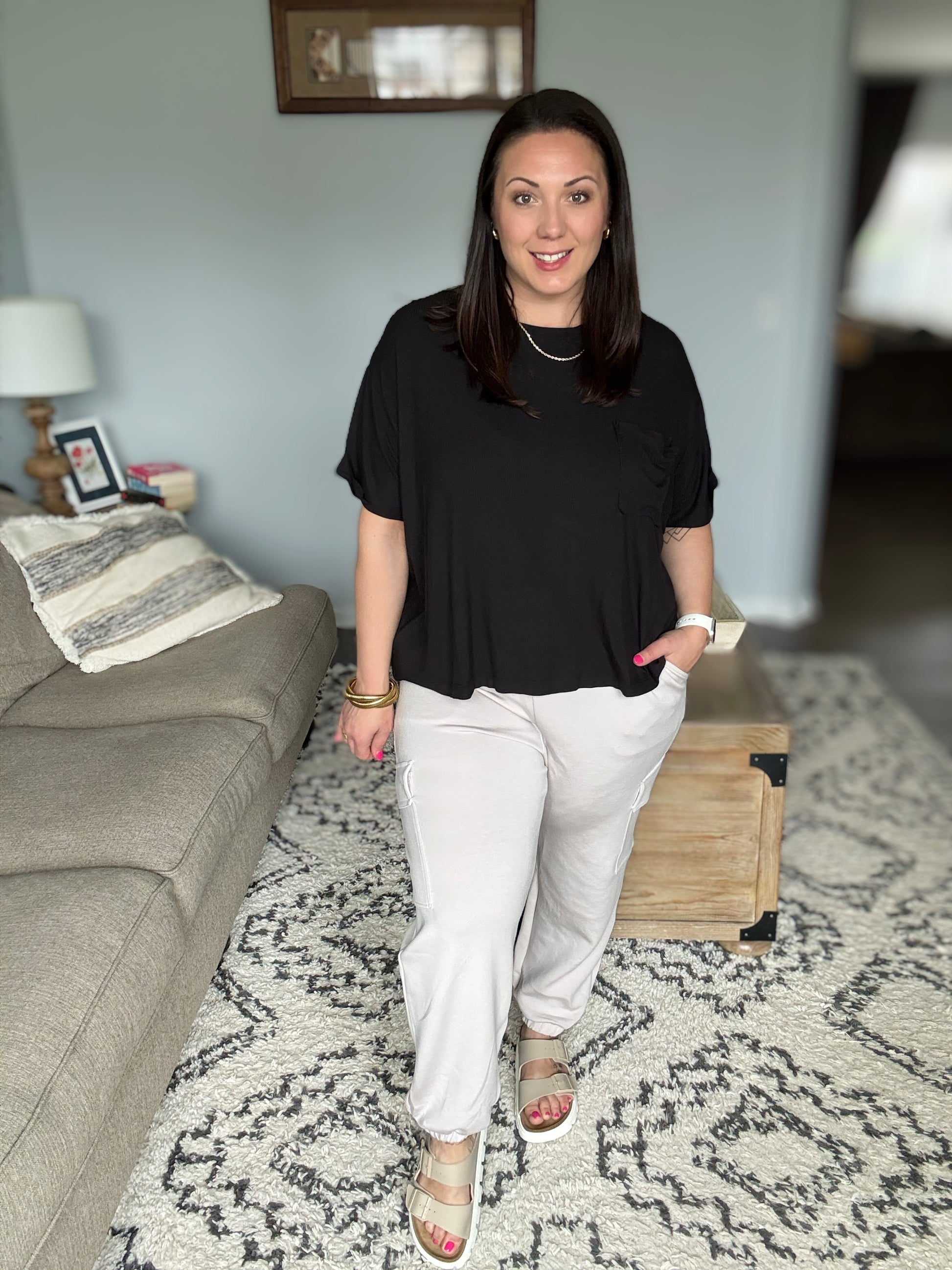 The Jog and Snog Joggers in Black are the ultimate blend of comfort and function. Made from ultra-soft modal fabric, these joggers offer a breathable and lightweight feel perfect for all-day wear. Finished with a cased elastic hem for a trendy fit, they’re perfect for lounging, running errands, or casual outings. They have a "cool to the touch" feel.