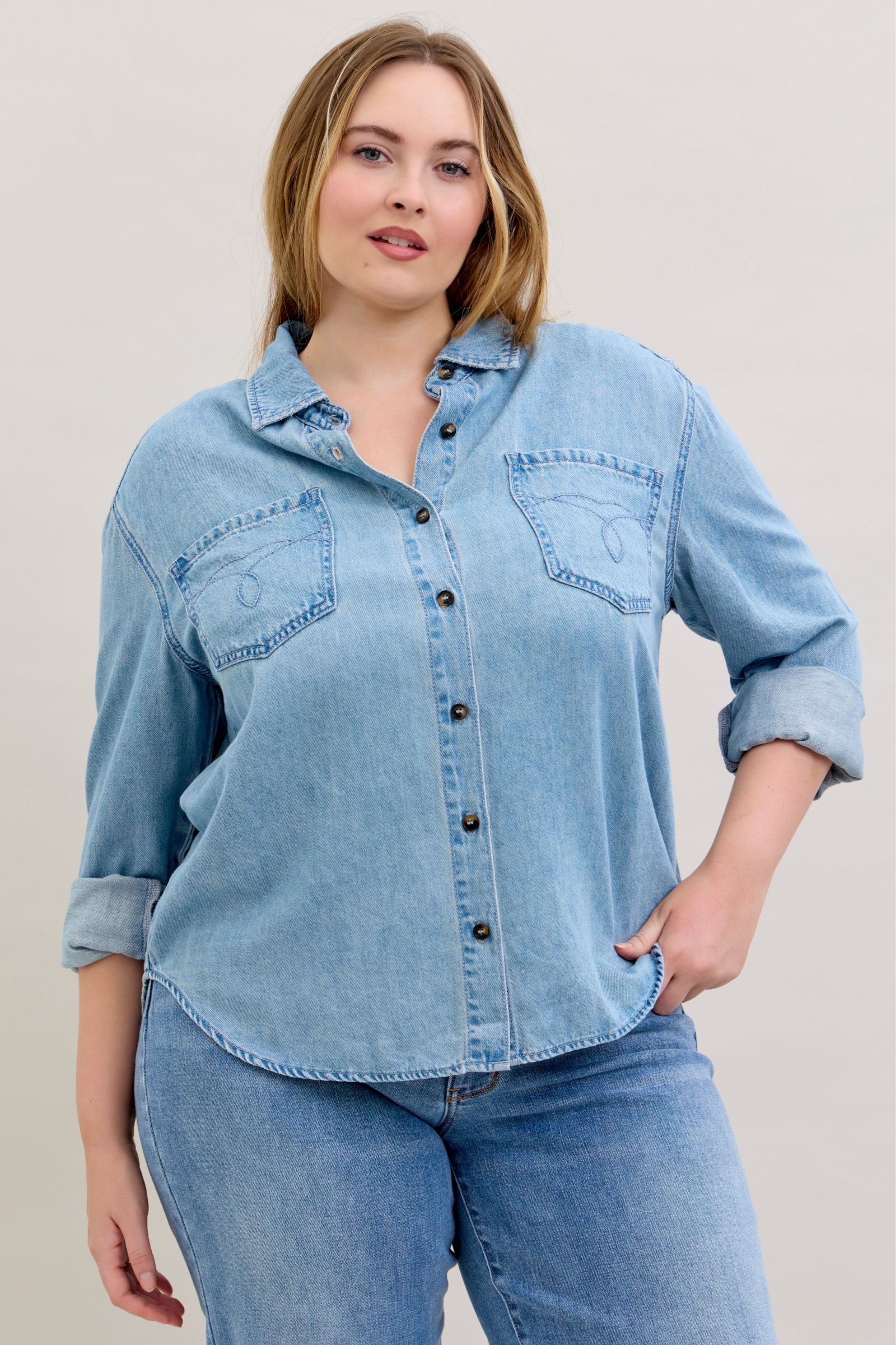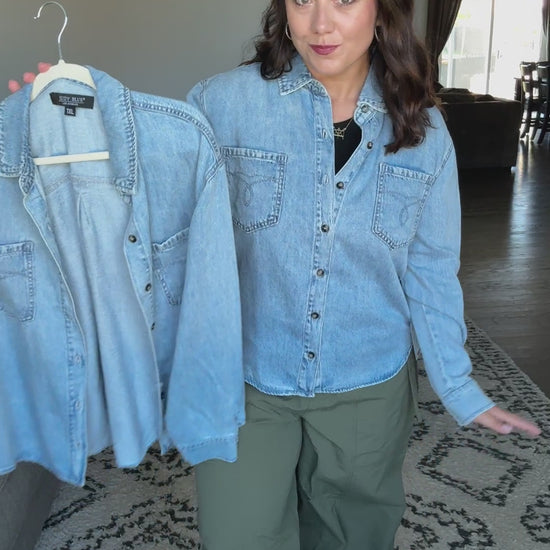 A timeless classic with a modern twist — this Judy Blue denim shirt combines embroidery stitch details with the softness and quality Judy Blue is known for. Designed to be your go-to layering piece, it is polished enough to dress up, casual enough to throw on over leggings, and timeless enough to wear year after year.