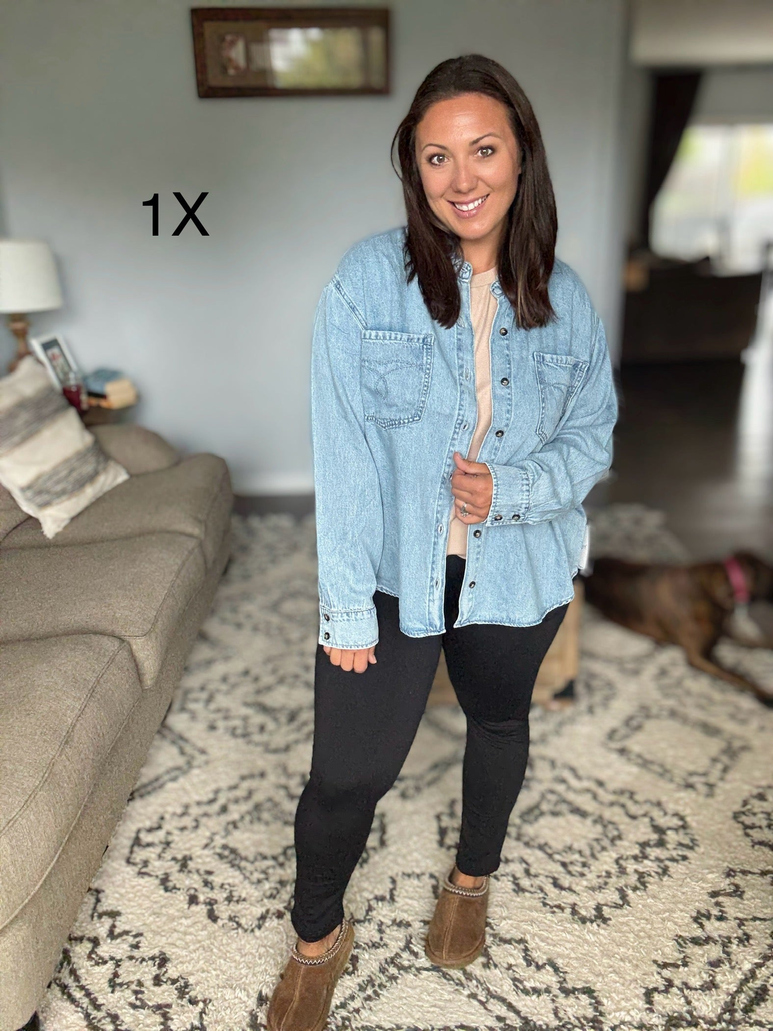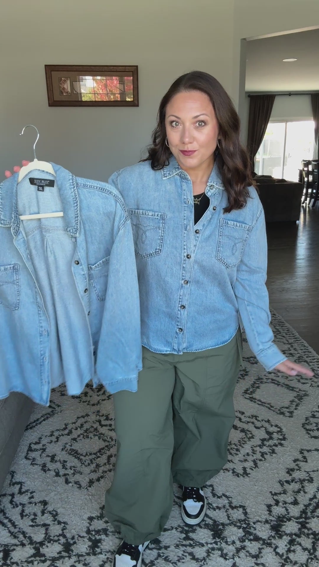 Amanda tries on both Large and 1X.