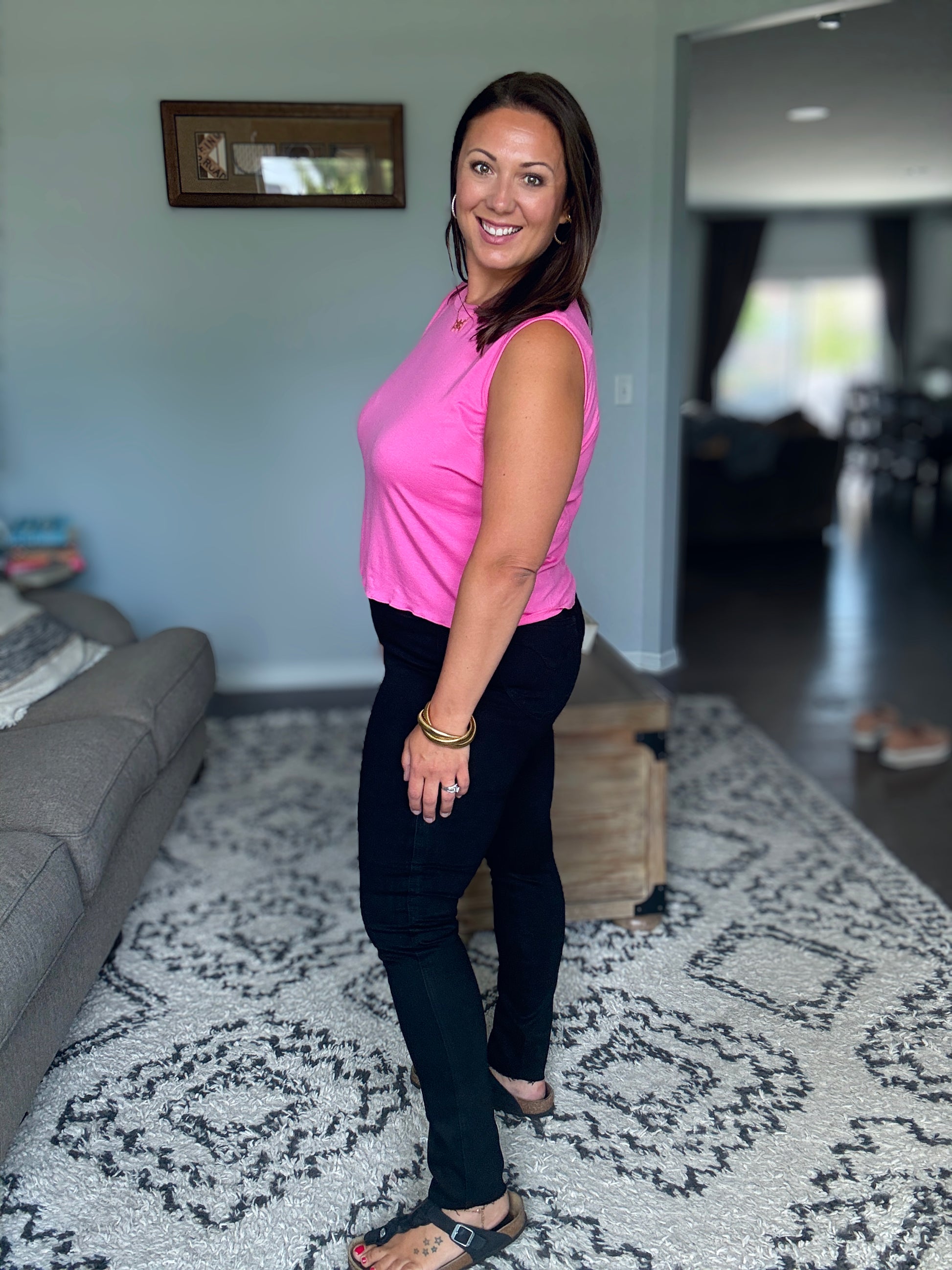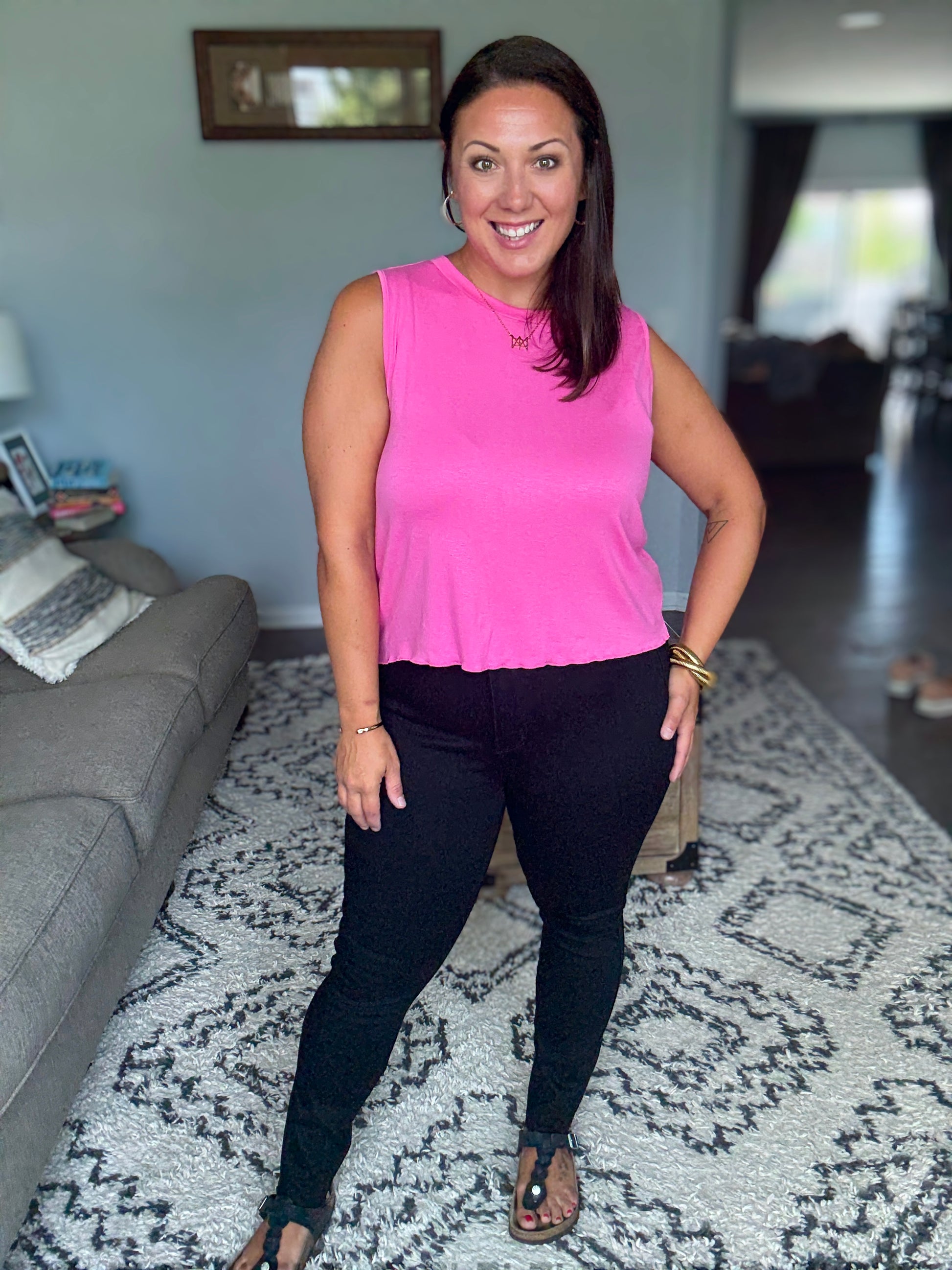 A restock of one of our most popular and most flattering styles! Experience an immediate confidence boost when you slip on the Nicole Tummy Control Skinny Jeans from Judy Blue! A black wash stretch denim shapes an ultra-flattering high waist jean with extra reinforcement creating fan fave tummy control! A zipper fly tops the skinny leg silhouette that features a traditional five pocket cut with decorative stitching on the back shield-shaped pockets. Shield shape pockets =butt lifting ….if you have a pancake butt they magically give a little lift and impression like you have a nice round booty!