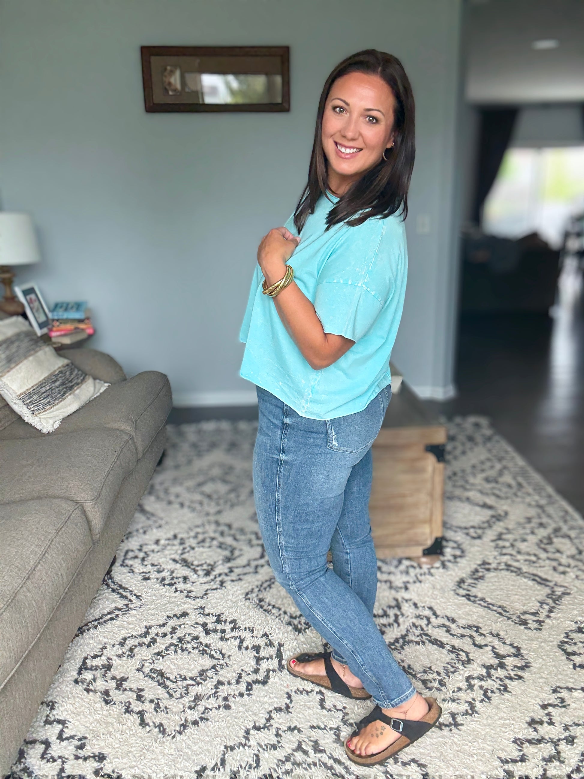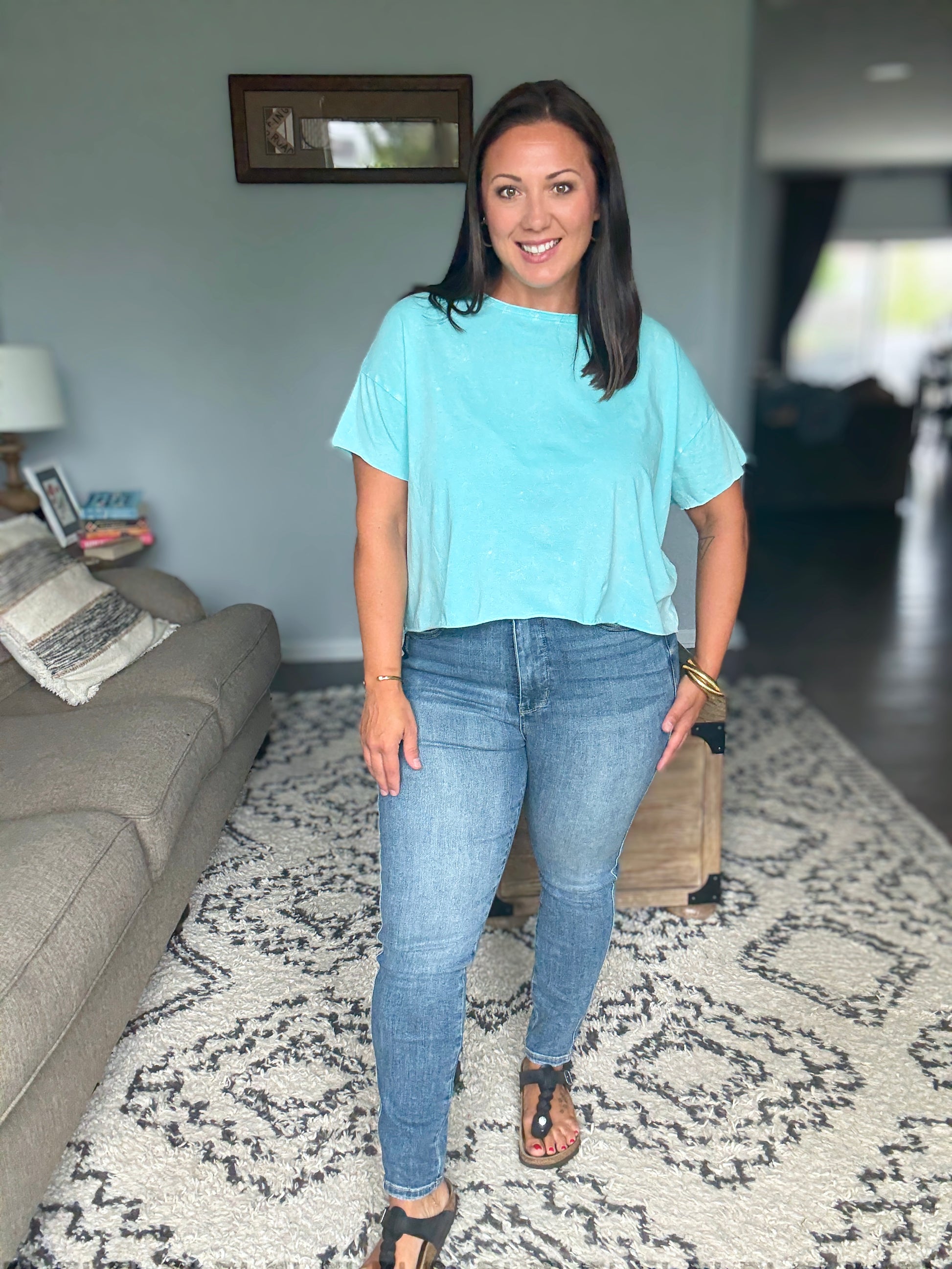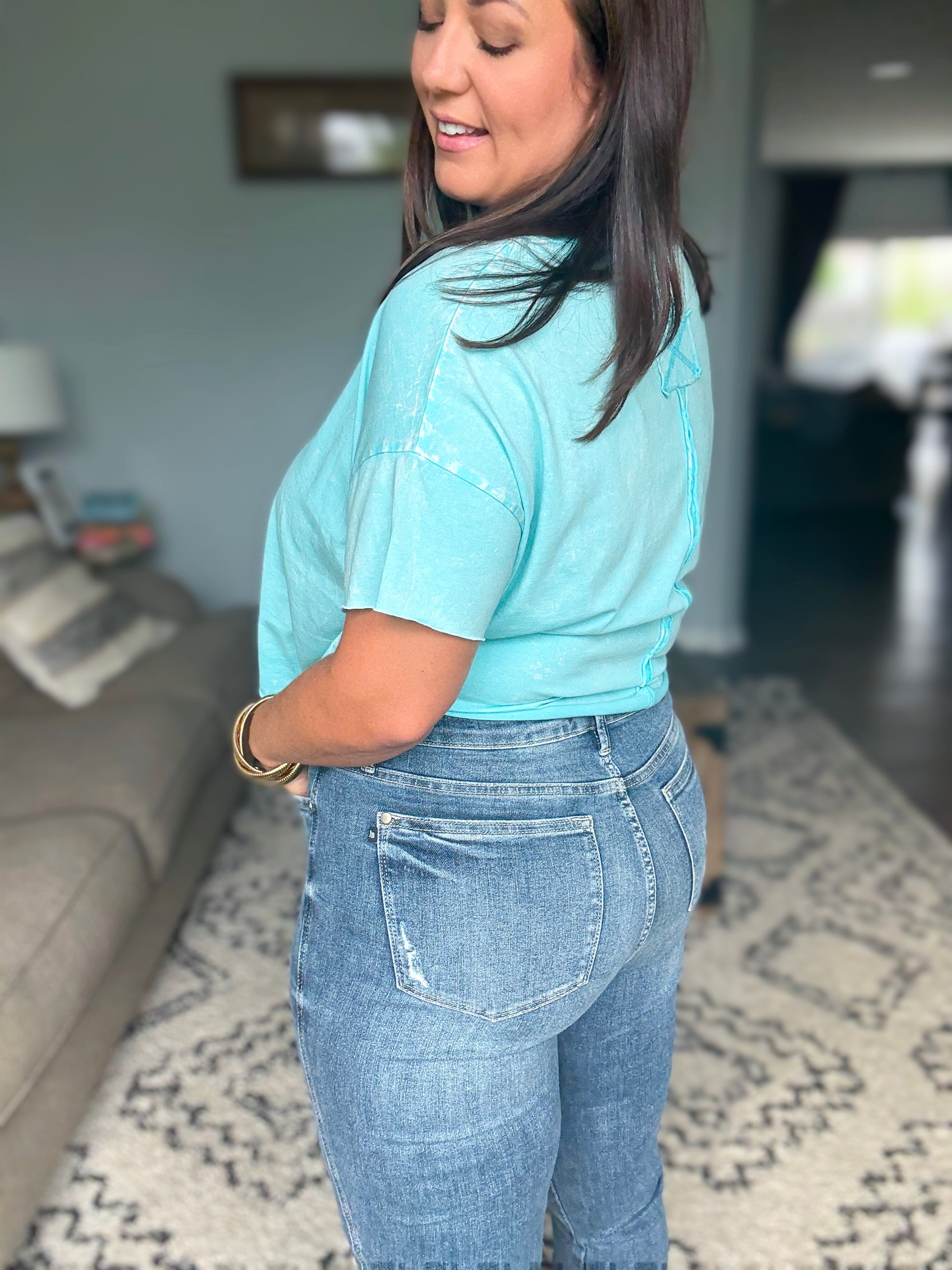 - Fit: True to Judy Blue size. Those with small waists and slim hips who want a locked and loaded fit may size down 1.