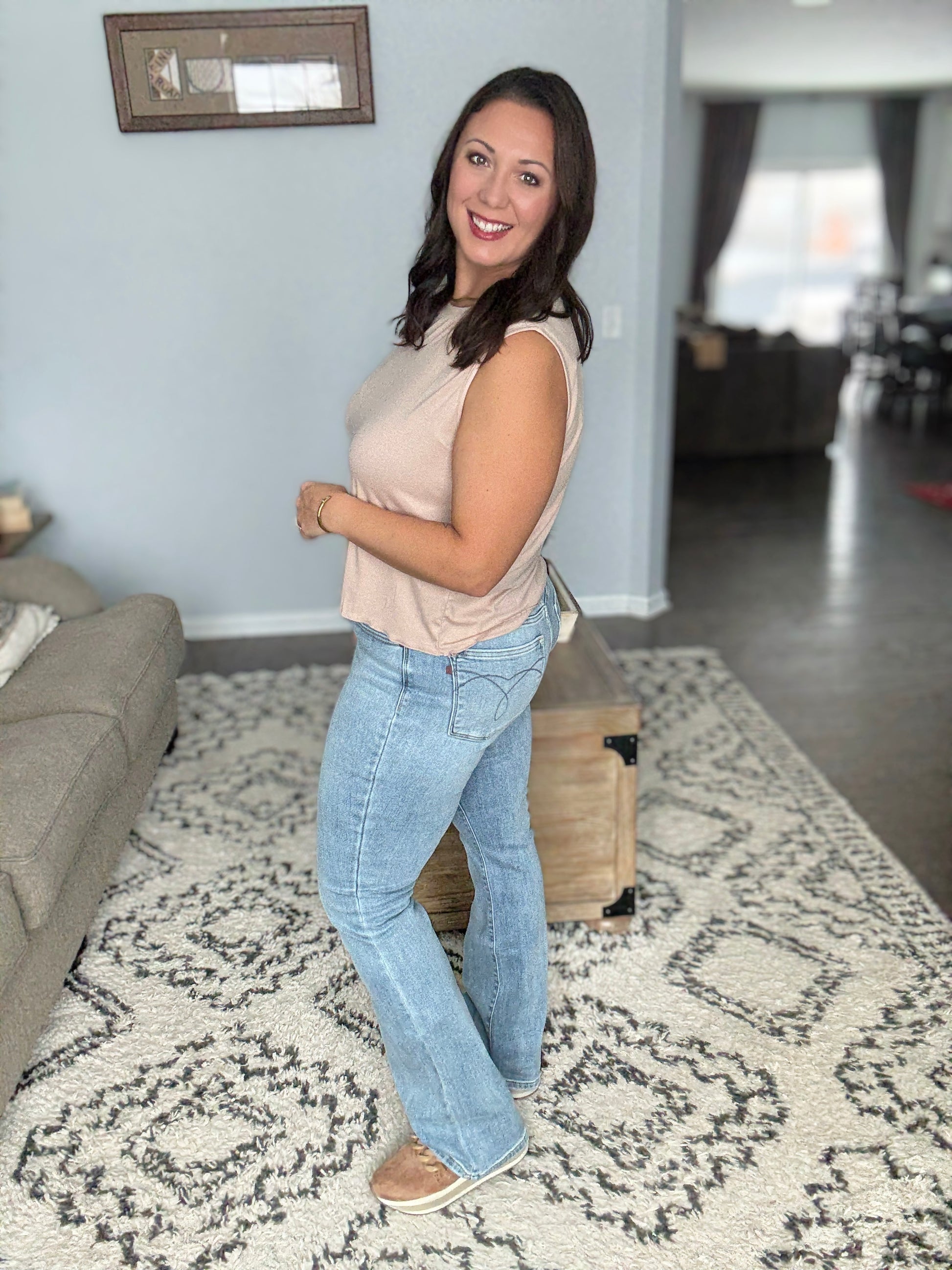The light wash brings an easy, everyday vibe, while the mid-rise fit sits comfortably at the hips for a flattering, stay-put feel. The subtle bootcut leg elongates your shape and pairs effortlessly with boots, sneakers, or your coziest winter layers.