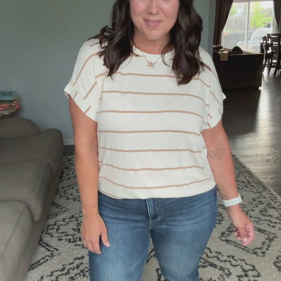 Brighten your day with the Jump Into It Textured Knit Top. This lightweight woven top offers high stretch for all-day comfort, featuring a playful banded round neckline and relaxed dolman sleeves. The cuffed and tacked sleeve cuffs add a fun detail, while the scooped hem gives a flirty finish perfect for pairing with your favorite jeans or skirts.