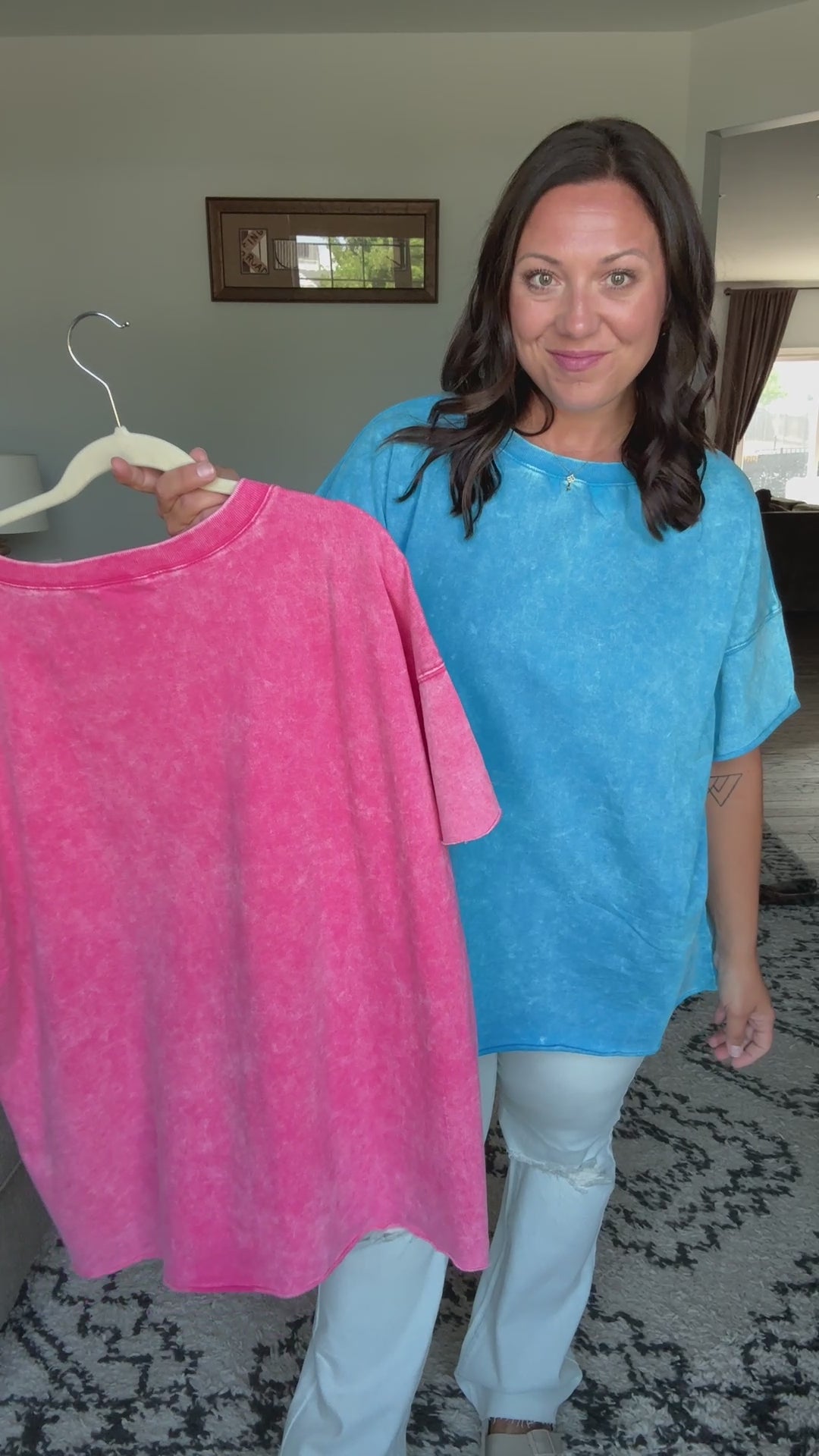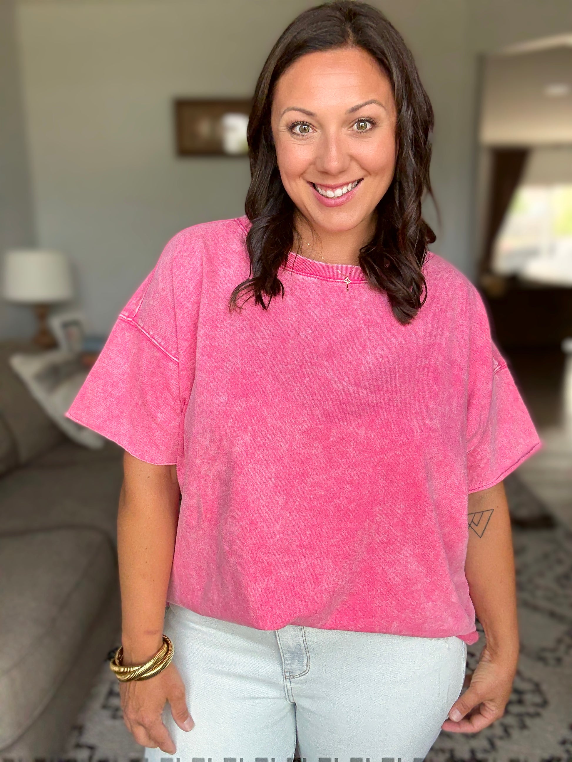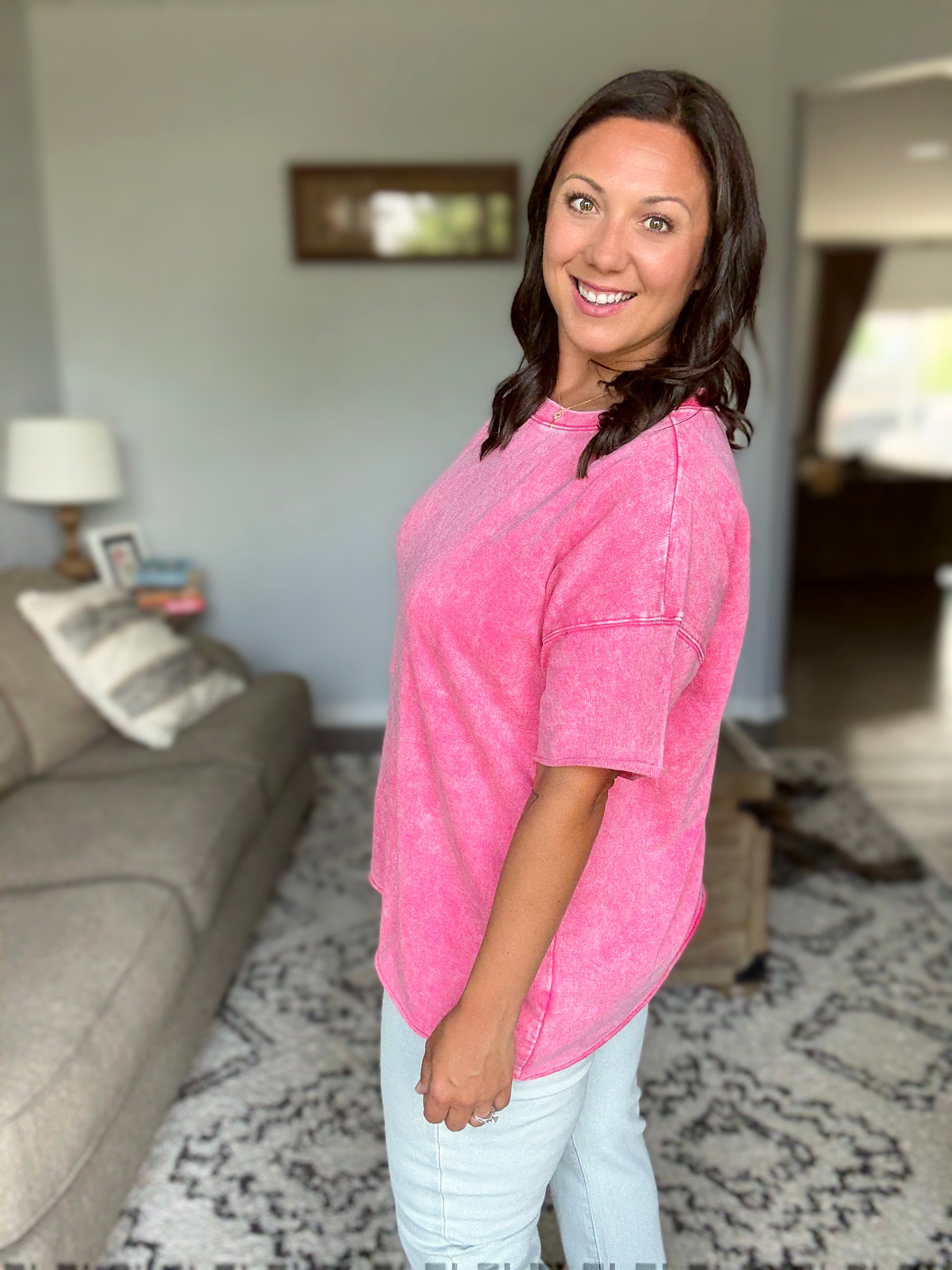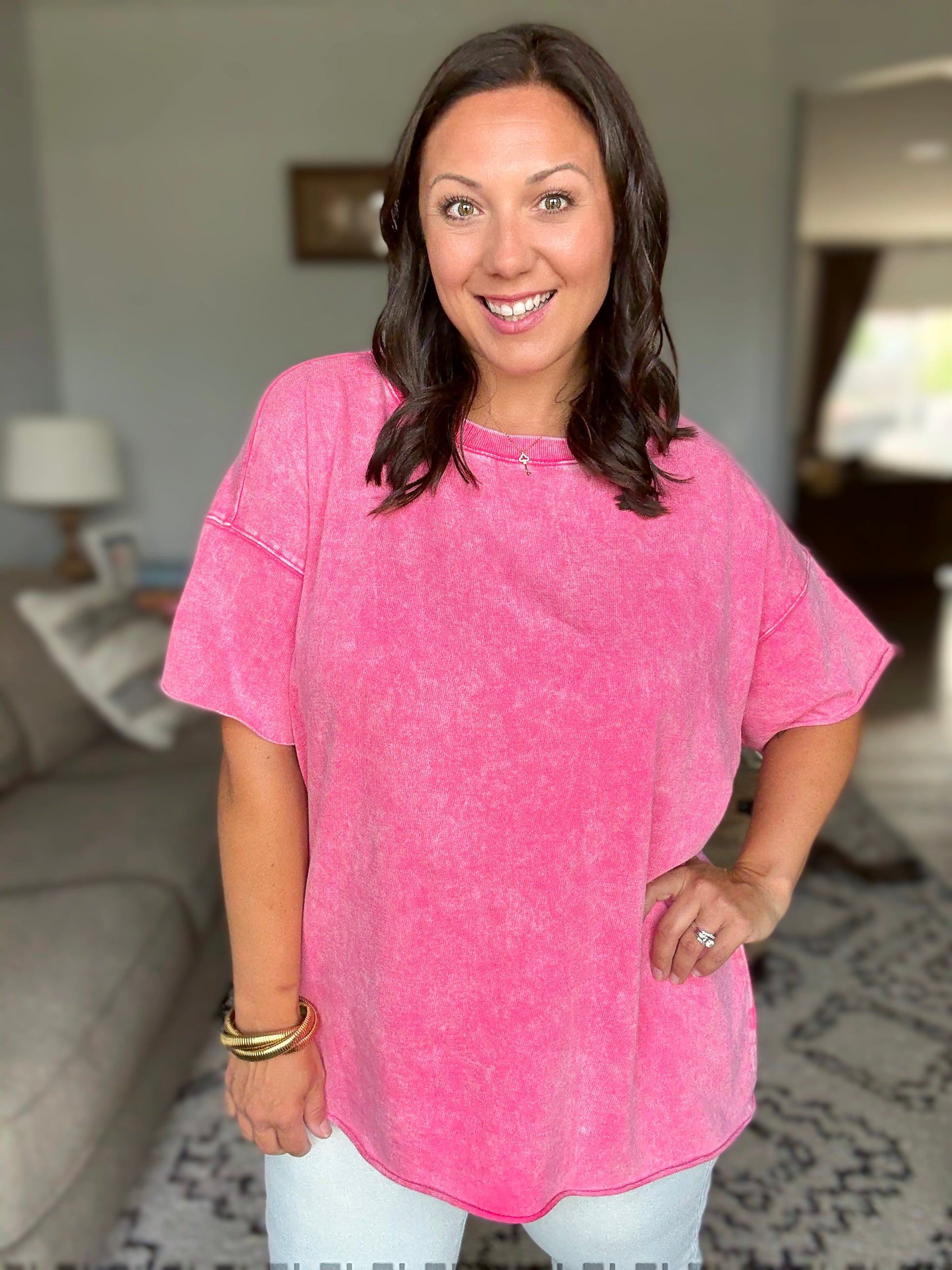 Just My Type Mineral Wash Relaxed Top in Fuchsia