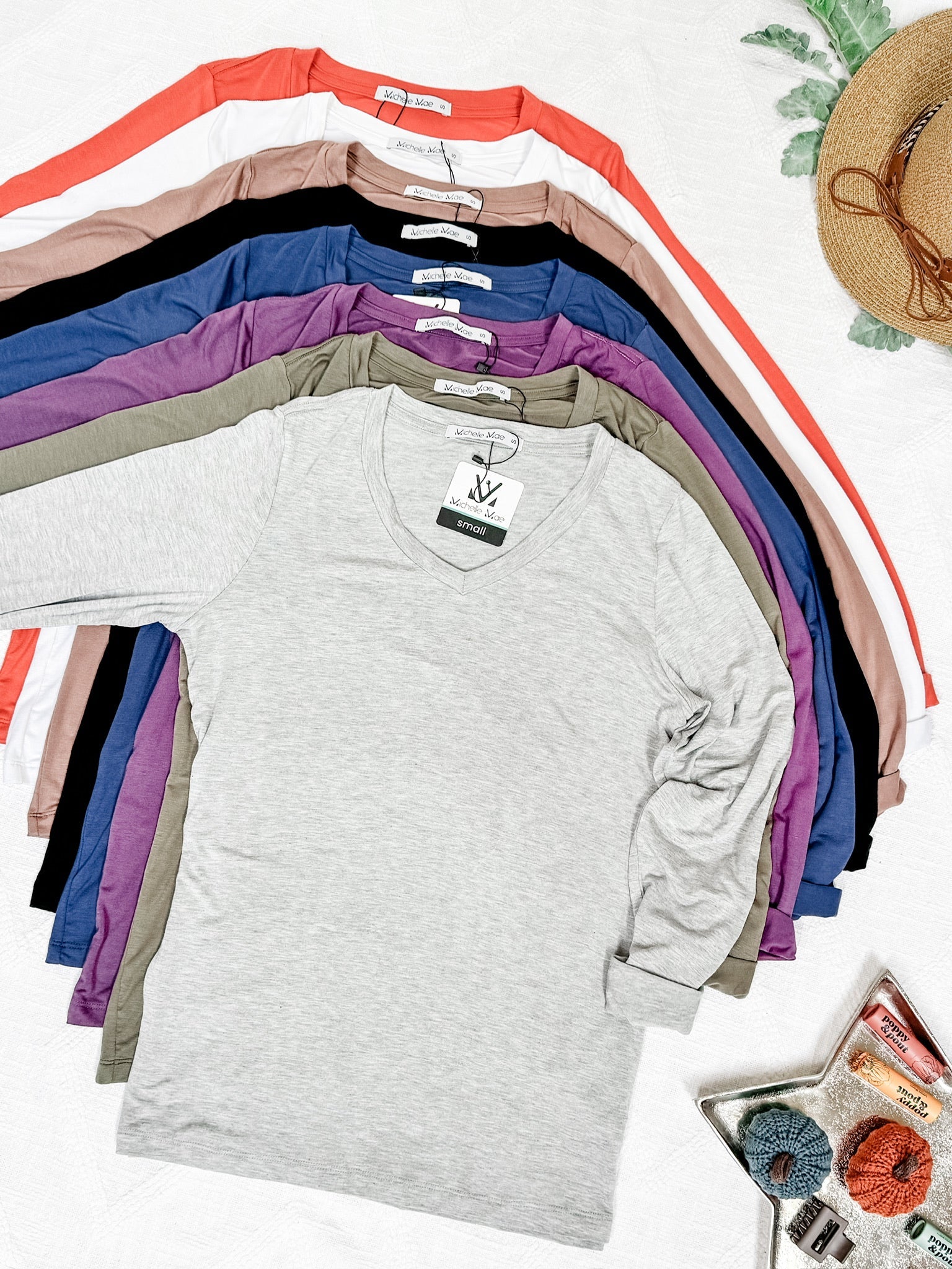 Meet the Larissa Long Sleeve Top in classic black. A staple V-neck that combines all-day comfort with versatile style, allowing you to effortlessly transition from a casual daytime look to an elevated evening ensemble.