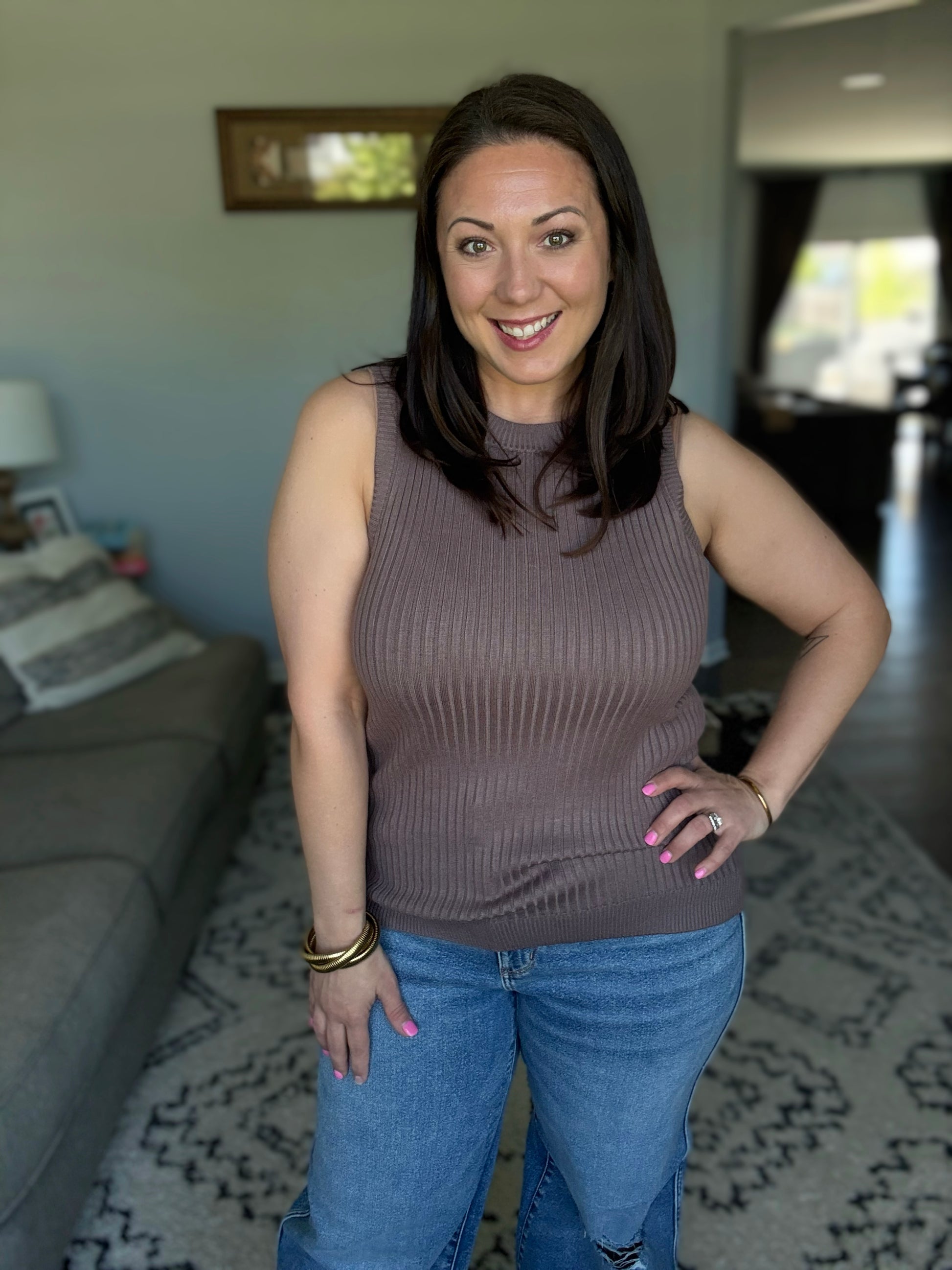 Experience comfort and style in our Let Me Hear it Ribbed Sweater Tank! The midweight ribbed knit provides a flattering fit and the banded round neckline, sleeve cuff, and hem add a touch of sophistication. Made from a soft sweater knit with lots of stretch, this tank offers all-day comfort and style.
