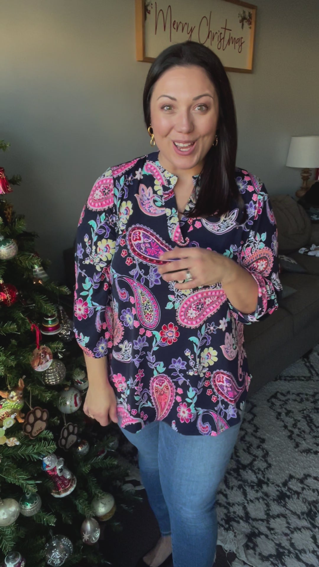 Look sophisticated and effortless in this Little Lovely Blouse and its bulgari knit fabric. Featuring a v-neckline and 3/4 length tabbed sleeves, this blouse will have you looking endlessly chic. With a scooped hem, this piece is perfect for any day spent in elegance. Embrace effortless style and grace today!