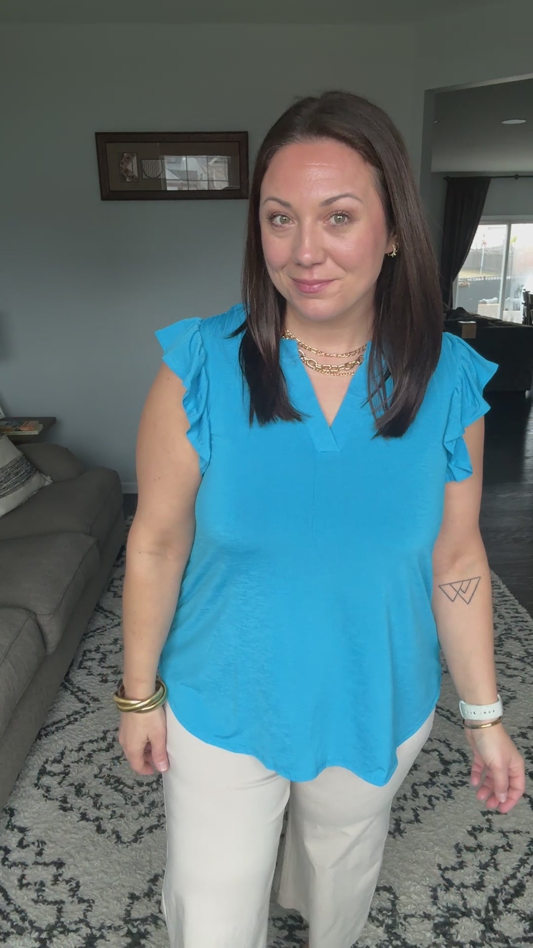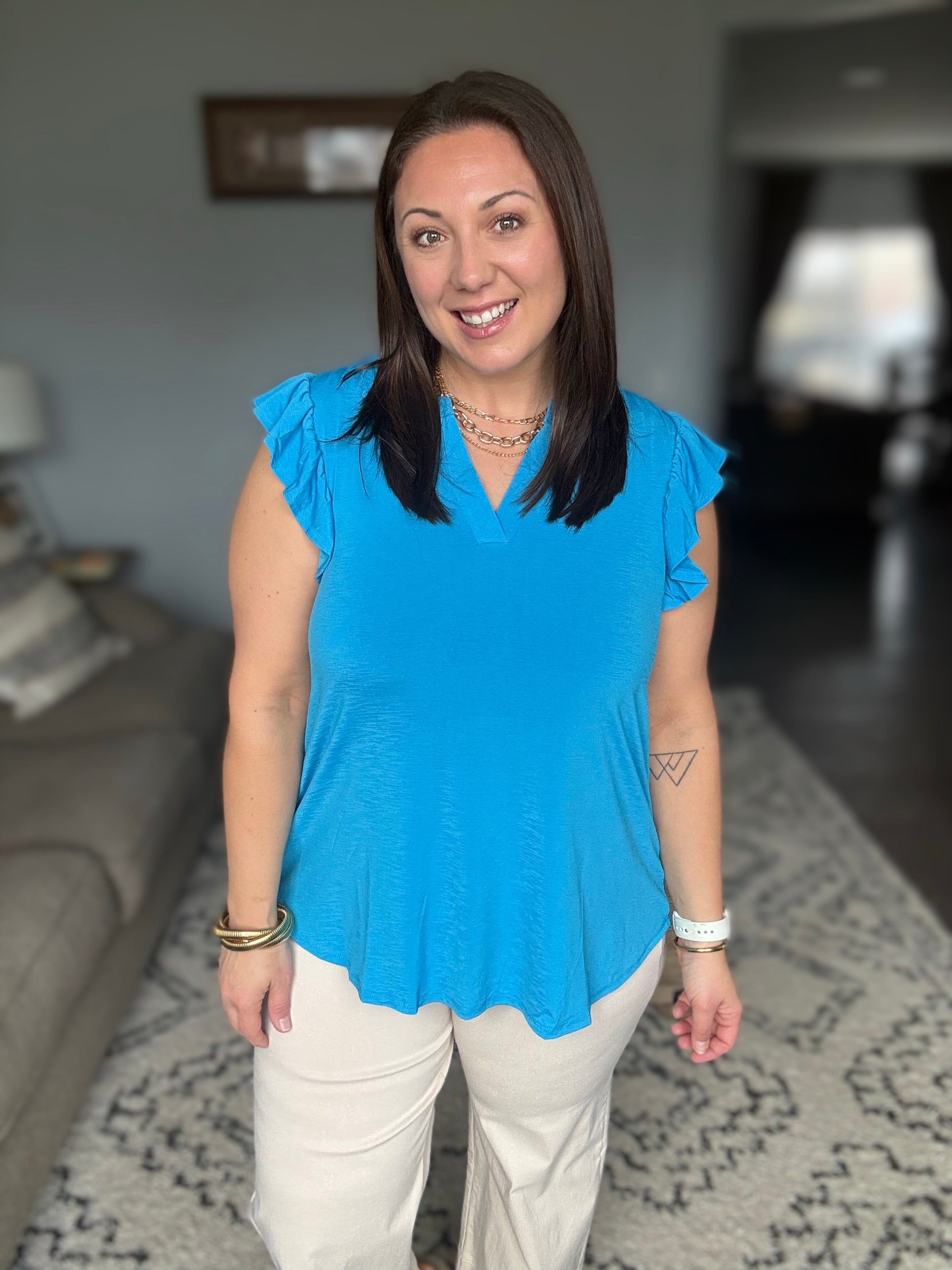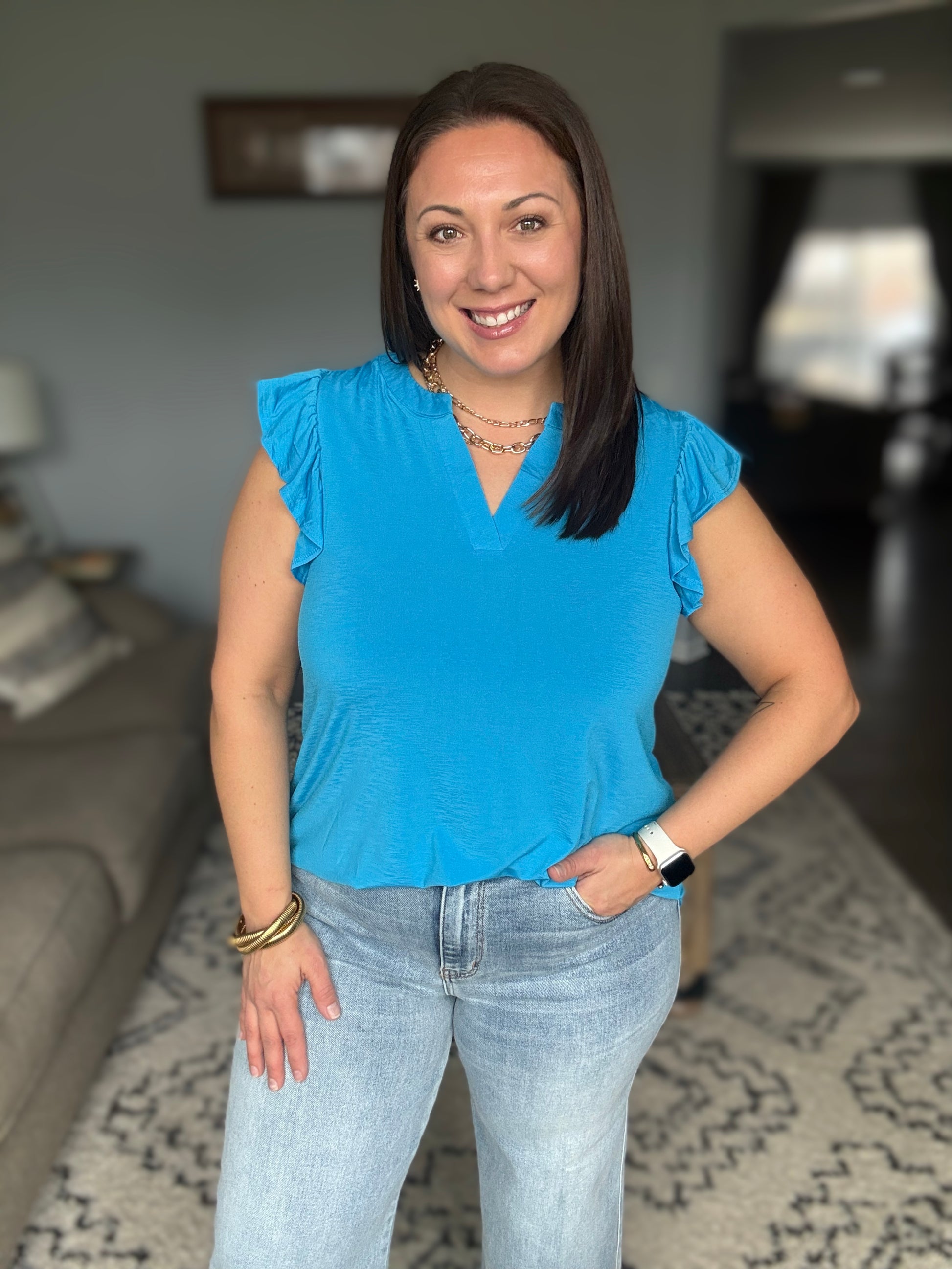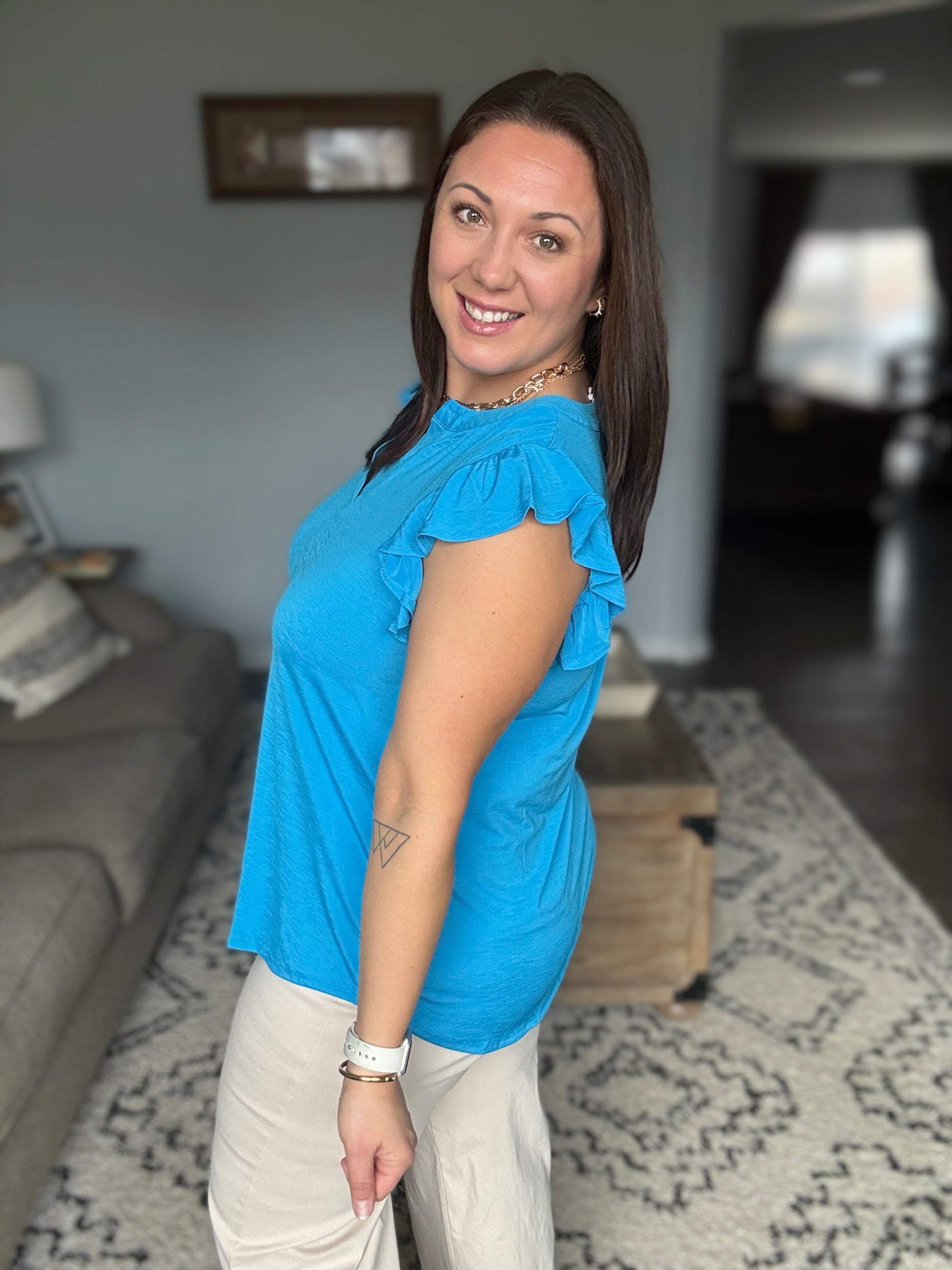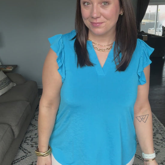 Lizzy Flutter Sleeve V-Neck Blouse in in Aqua
