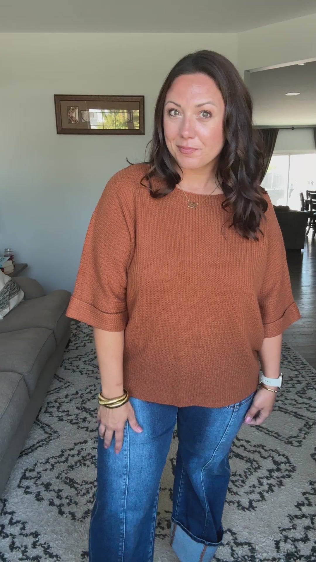 Feel the warmth of fall with this beautiful Lotta Love Knitted Sweater Top. With a sweater knit and tacked sleeve cuff, this cozy piece will keep you cozy all day long. Feel confident and stylish in the boat neckline and dolman sleeves. Ready to love? Get it now!