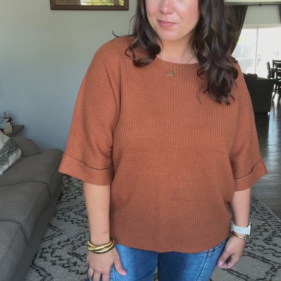 Lotta Love Knitted Sweater Top in Rust