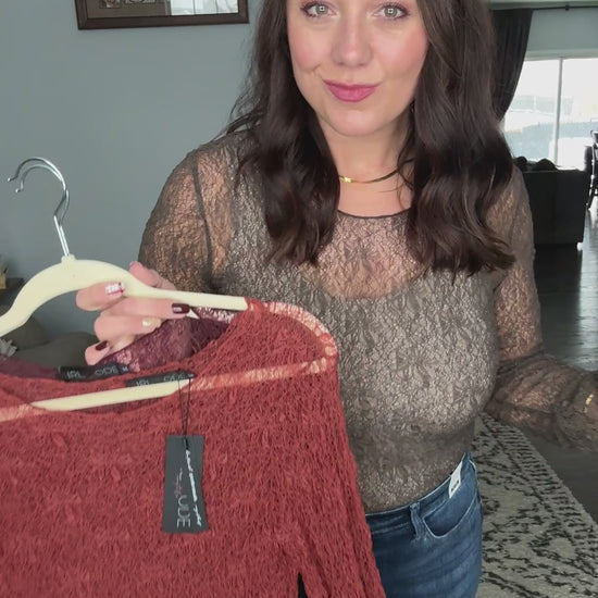 Meet the luxe lace top! Designed with ultra-stretchy, buttery-soft lace that hugs every curve just right, this top combines elegance and edge. The scalloped hems, floral-textured fabric, and subtle sheer finish make it an instant favorite - whether you dress it up or keep it casual. This lace beauty flatters every shape thanks to hourglass-enhancing side ruching that smooths and snatches in all the right places.